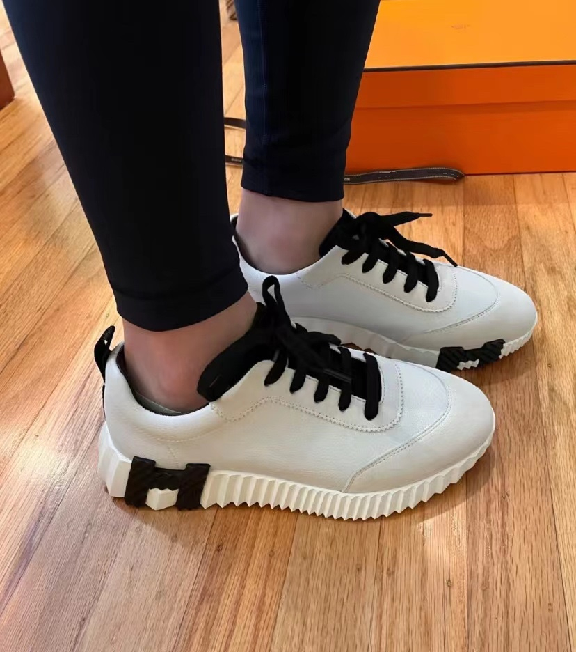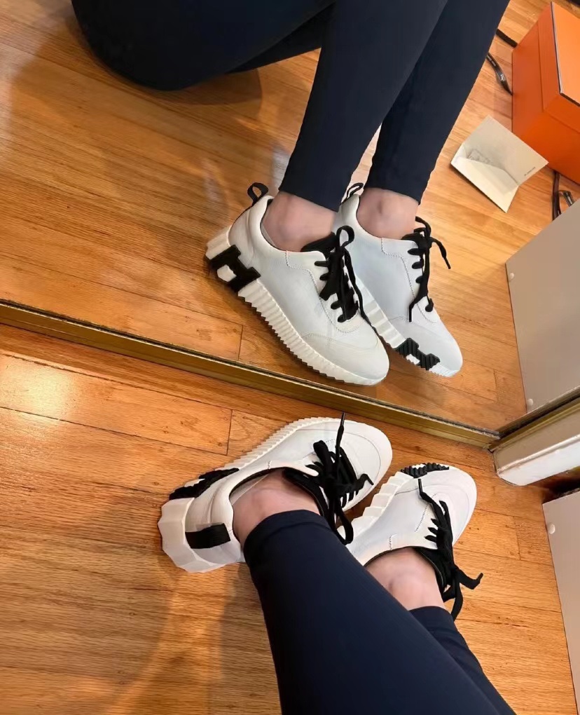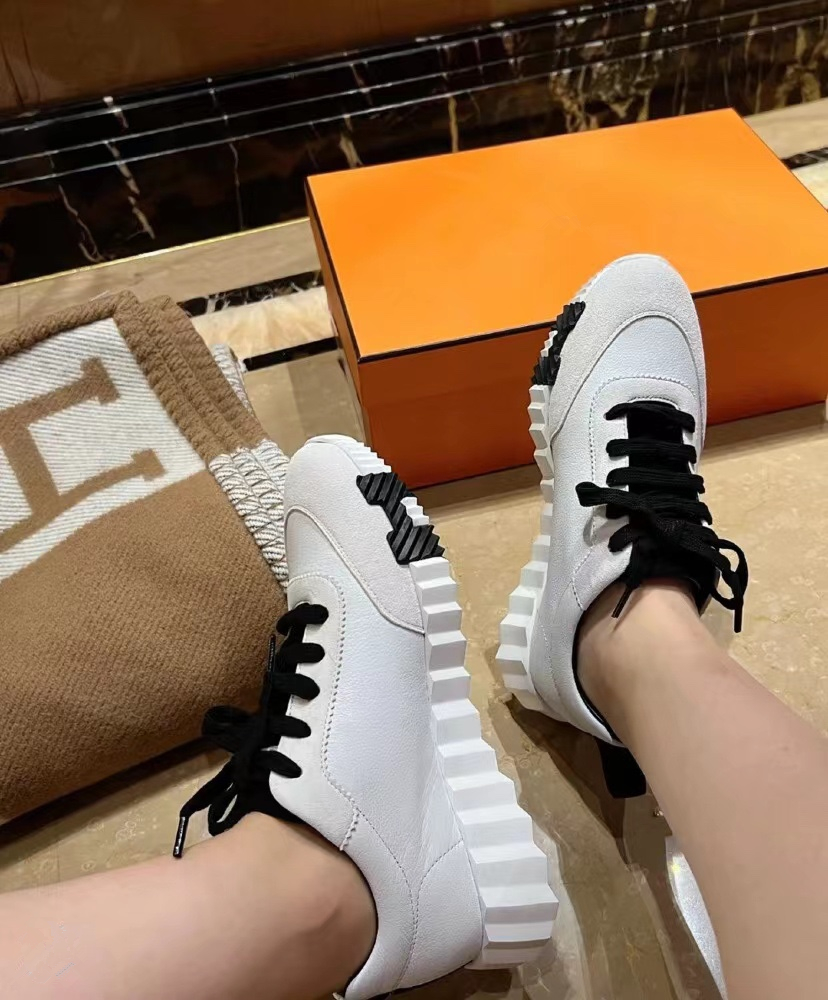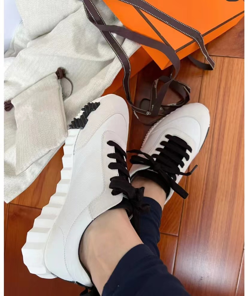 New H Brand Casual Sneakers for Women, Genuine Leather White Shoes, Thick-Soled Couple Panda Shoes, Flat Breathable H Running Shoes for Men