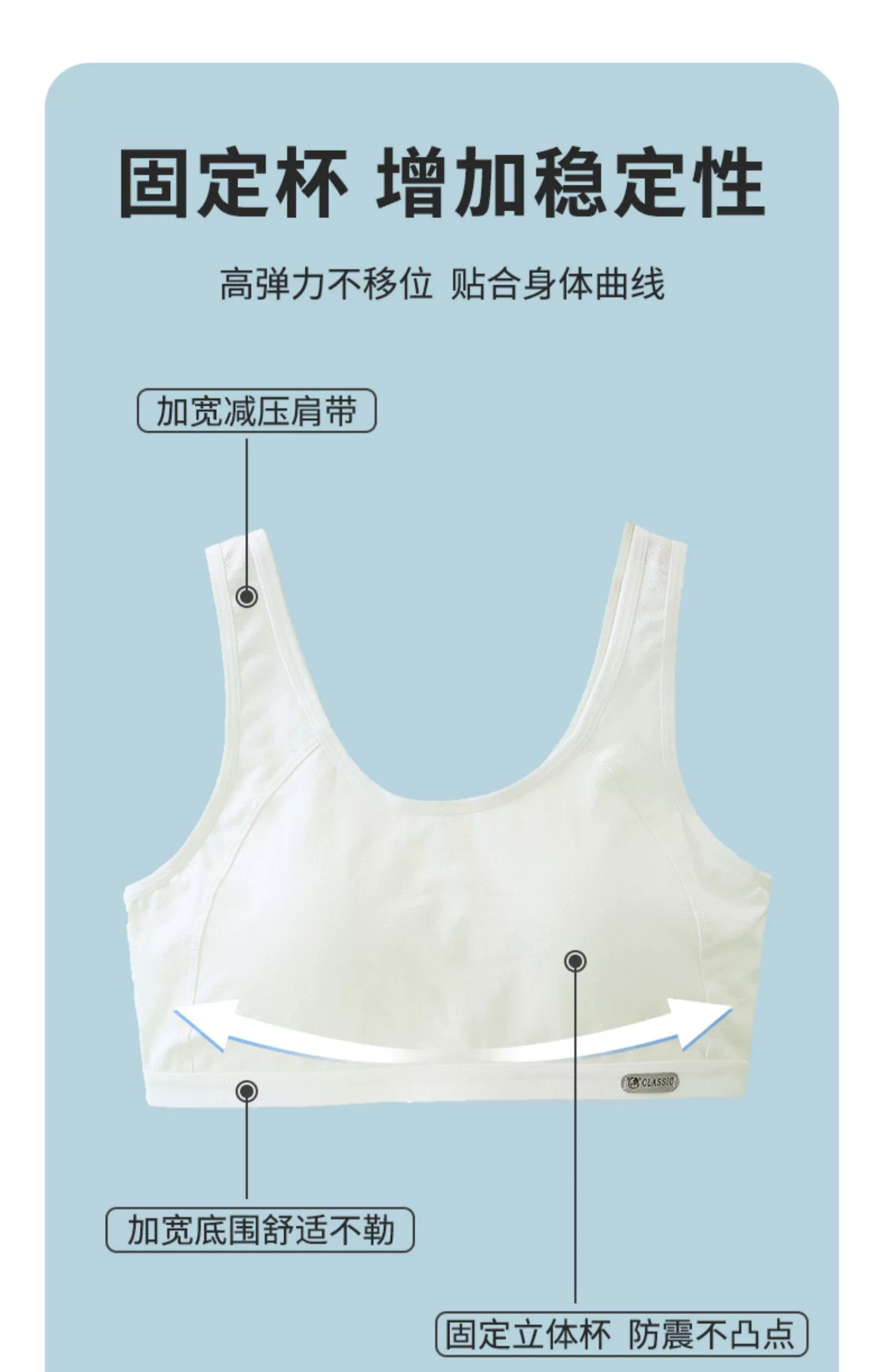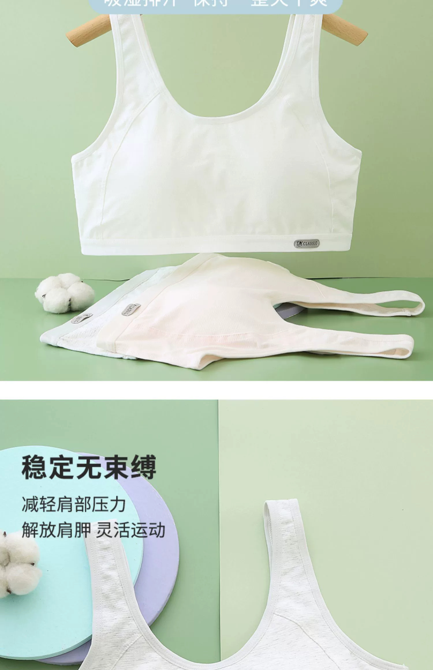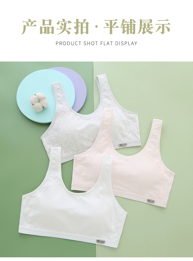 Girls' Bra Vest for Junior High and High School Students in the Adolescent Development Period, Sports Shock-Proof Running Pure Cotton Girls' Underwear