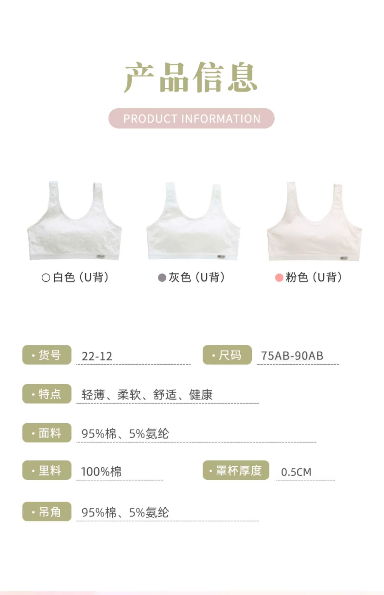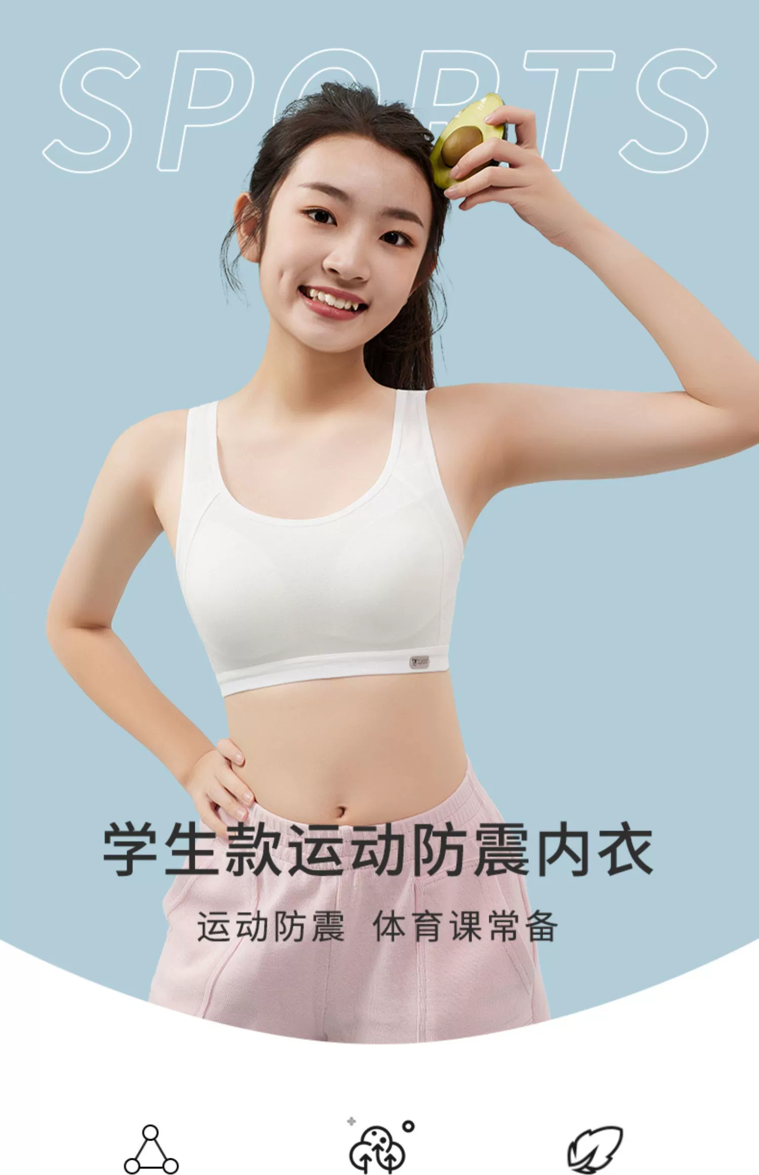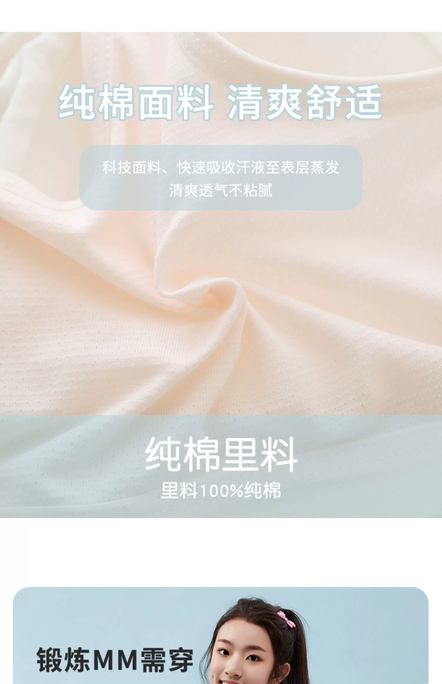 Girls' Bra Vest for Junior High and High School Students in the Adolescent Development Period, Sports Shock-Proof Running Pure Cotton Girls' Underwear