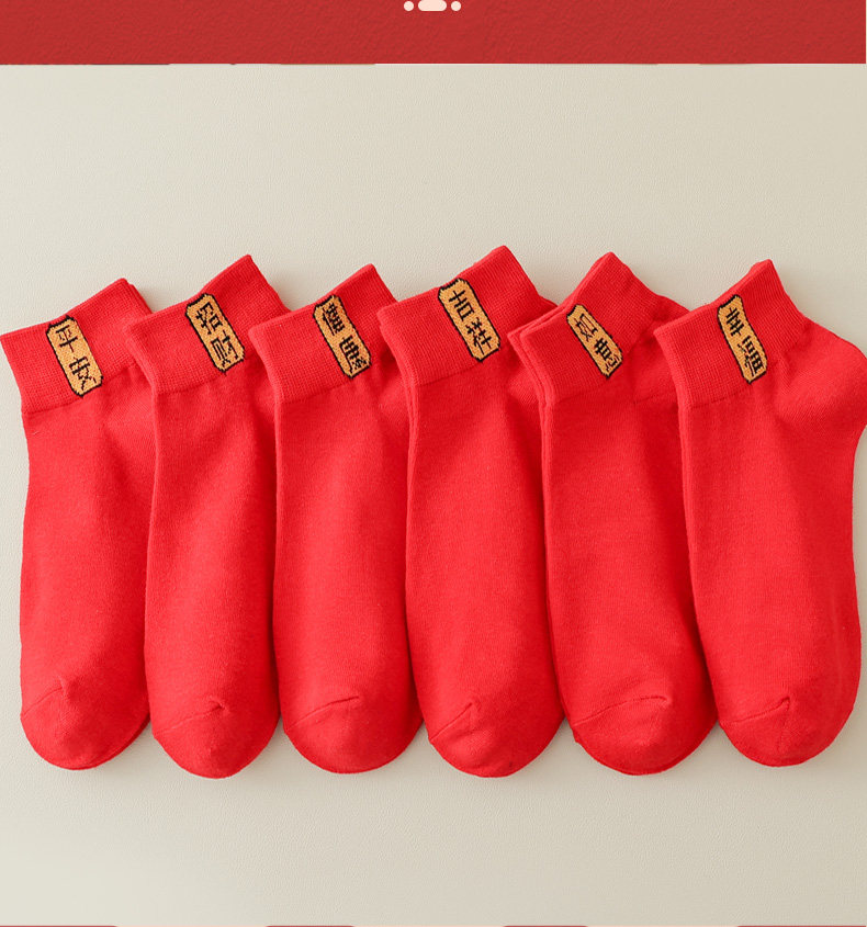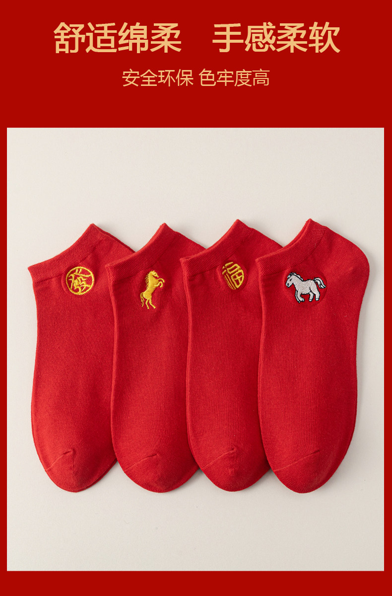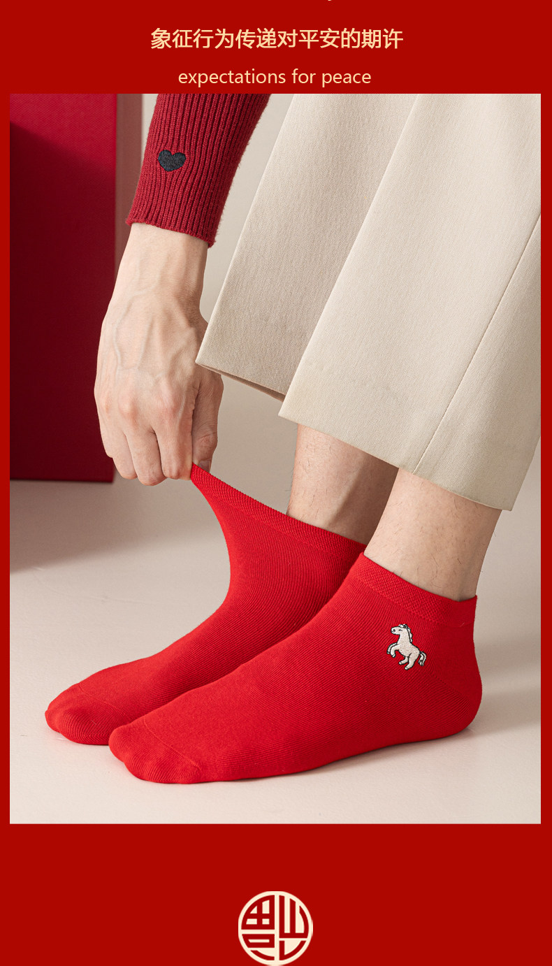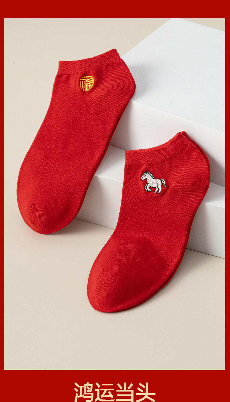 Bright Red Socks for Men and Women, Festive Socks for the Year of Birth, Couple Socks, Zodiac Horse, Summer Thin Short Socks, Wedding Mid-Calf Socks