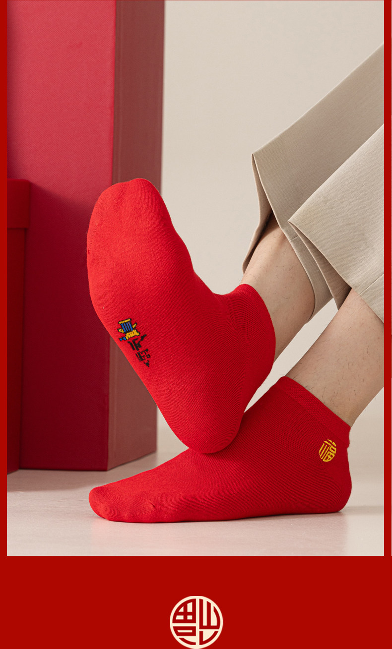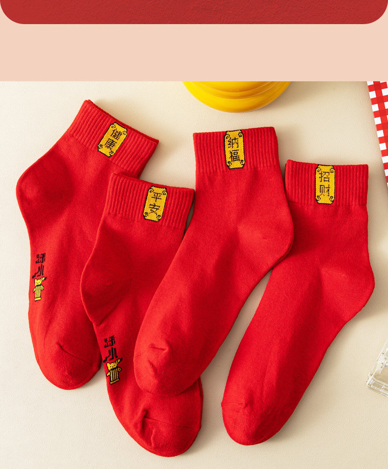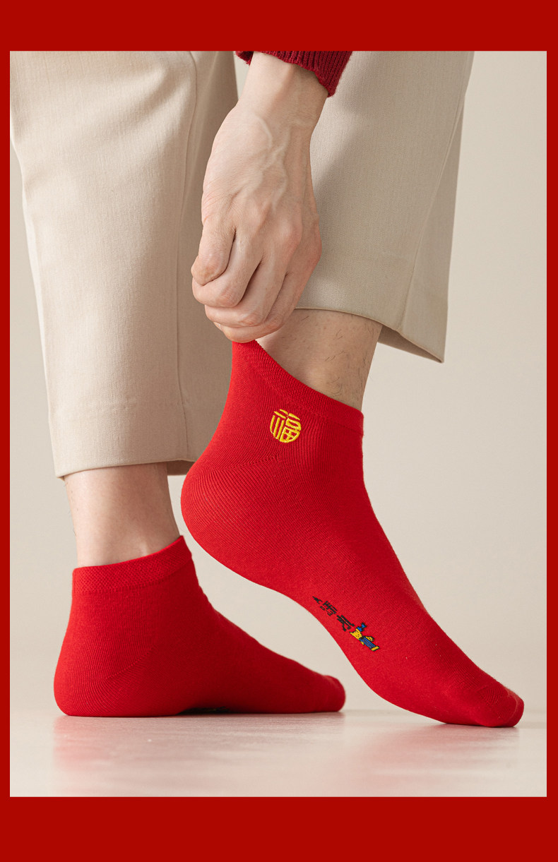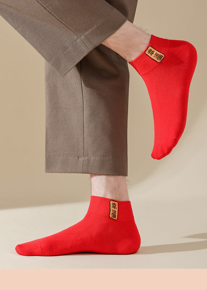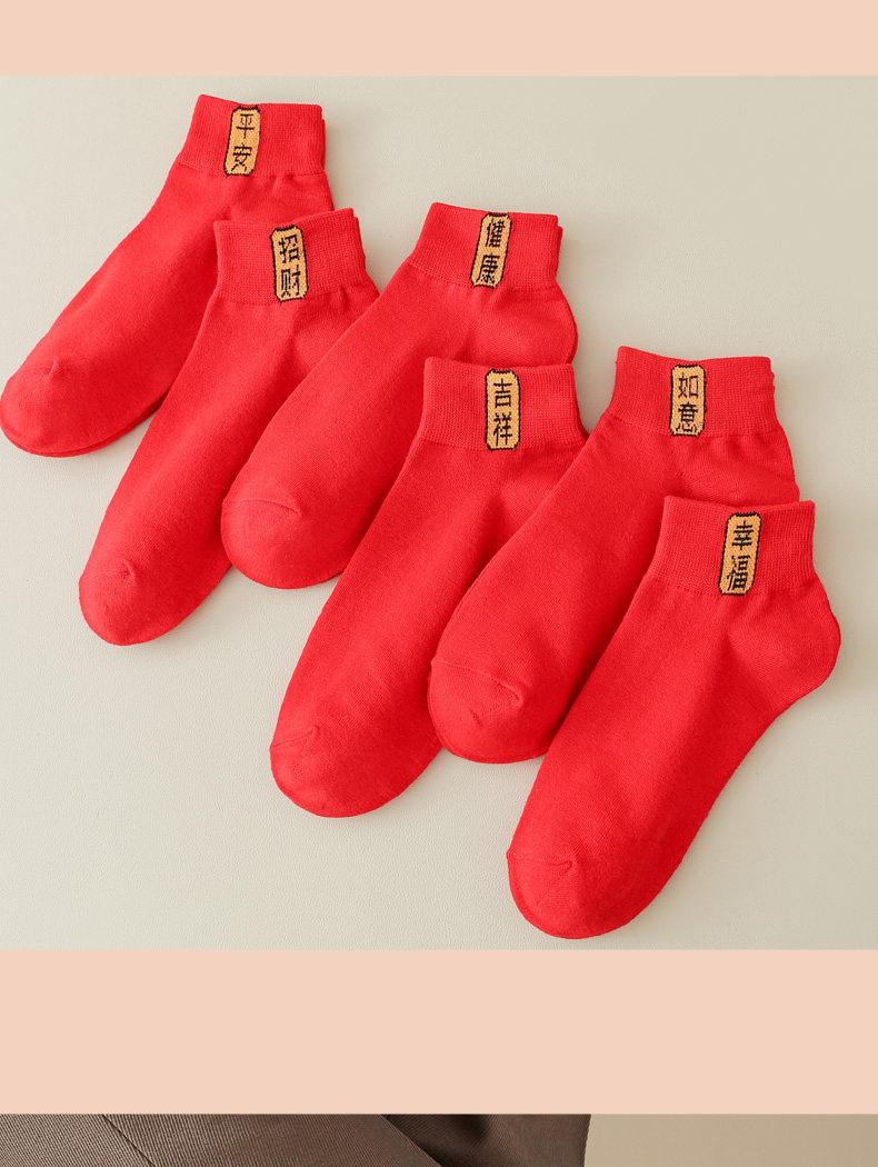 Bright Red Socks for Men and Women, Festive Socks for the Year of Birth, Couple Socks, Zodiac Horse, Summer Thin Short Socks, Wedding Mid-Calf Socks