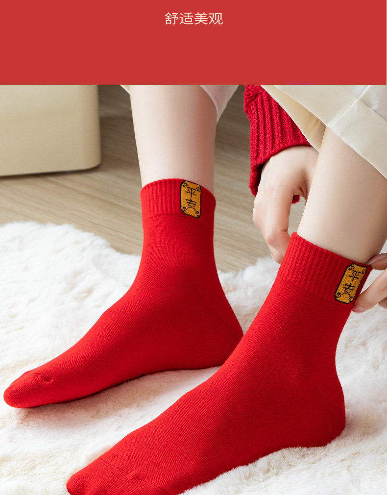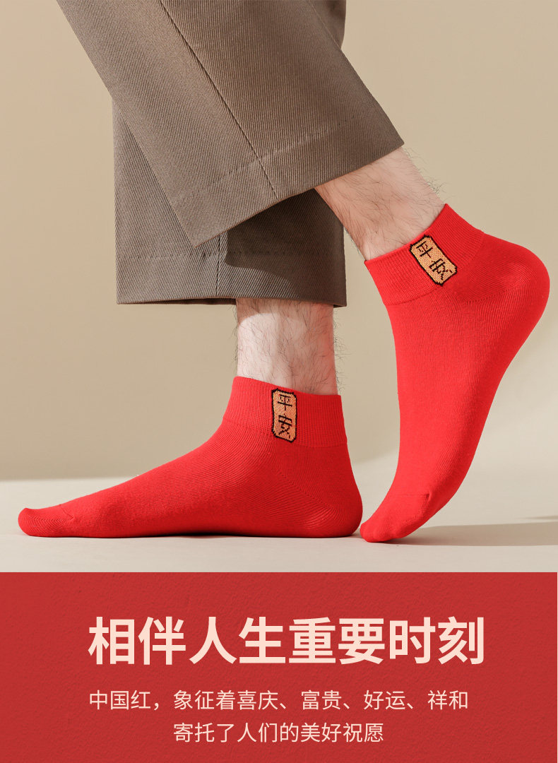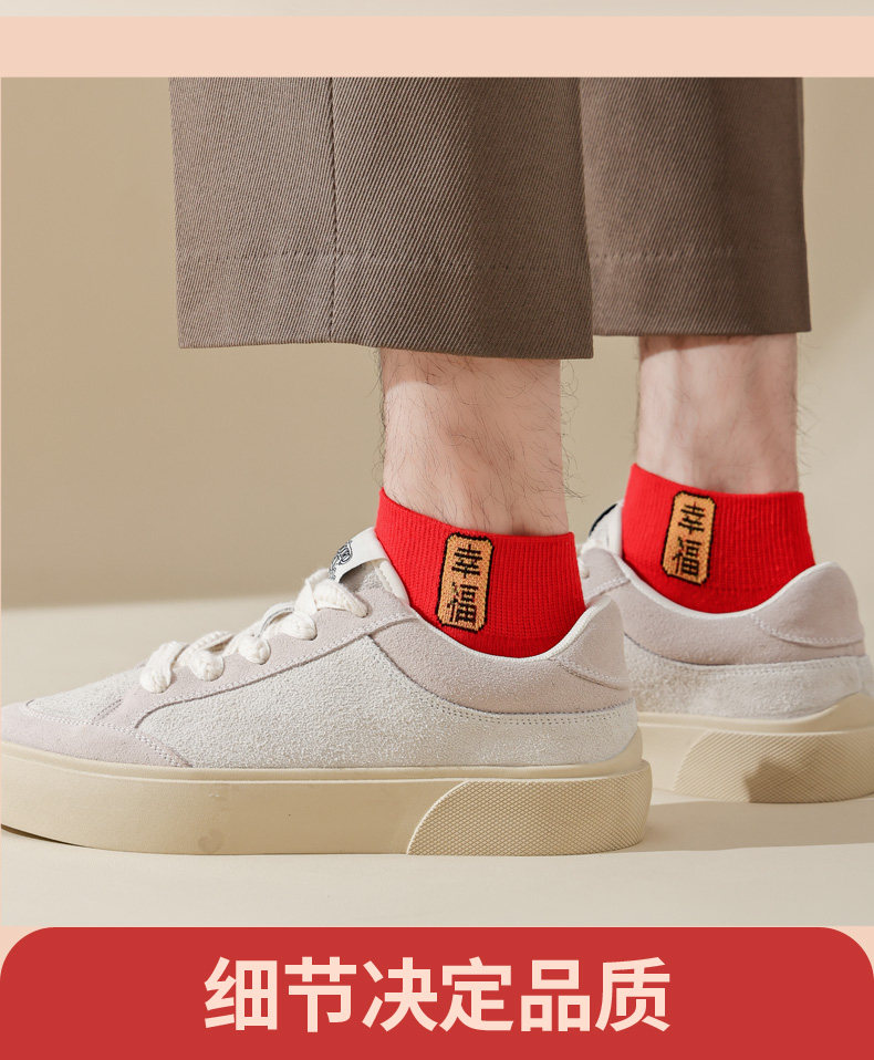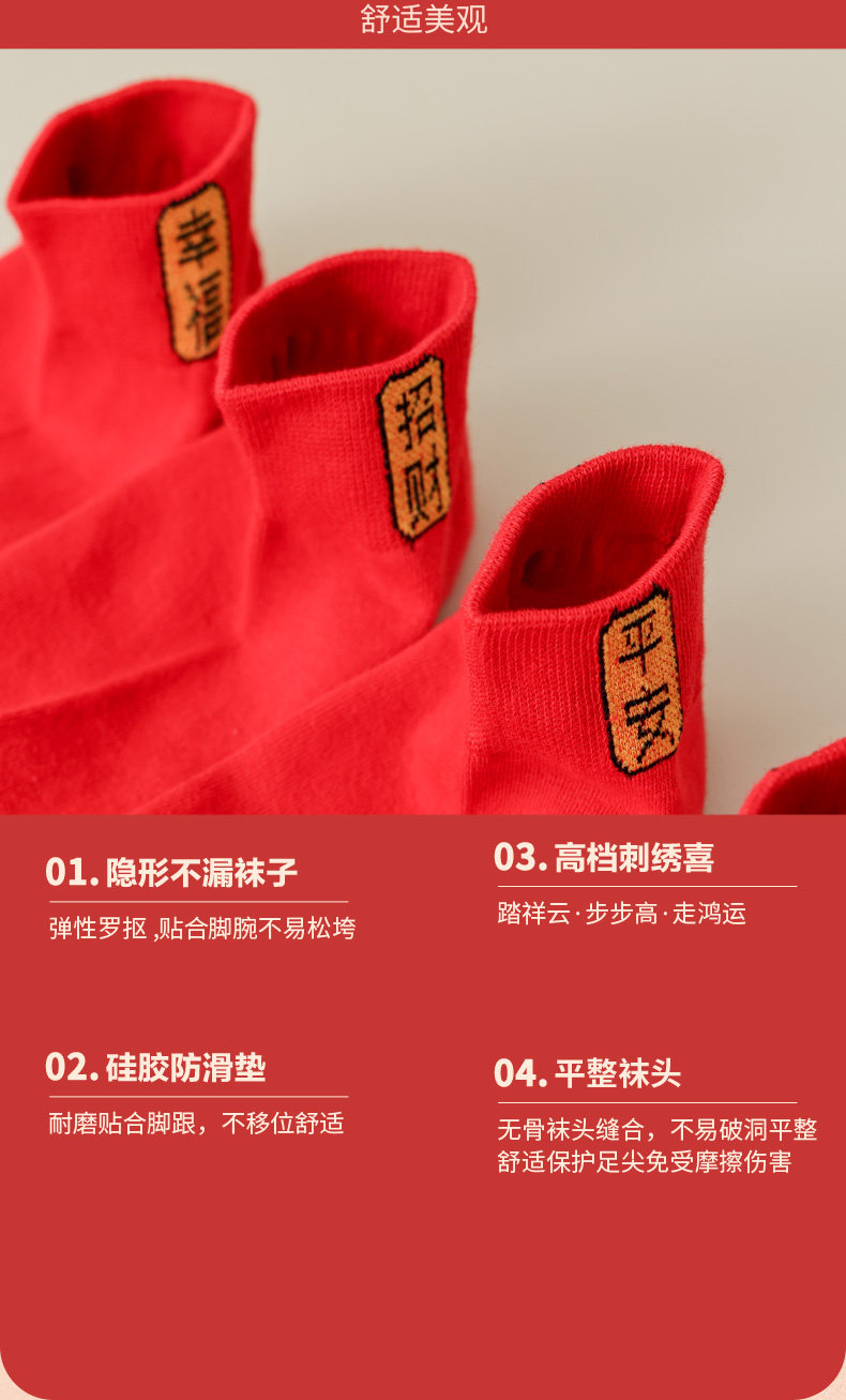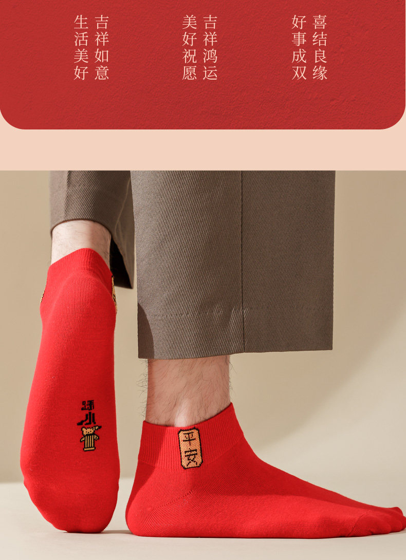Bright Red Socks for Men and Women, Festive Socks for the Year of Birth, Couple Socks, Zodiac Horse, Summer Thin Short Socks, Wedding Mid-Calf Socks