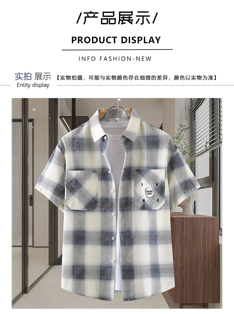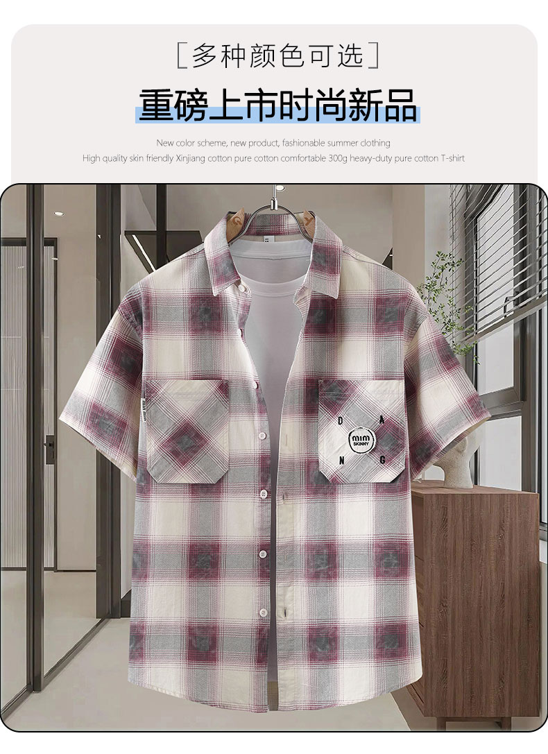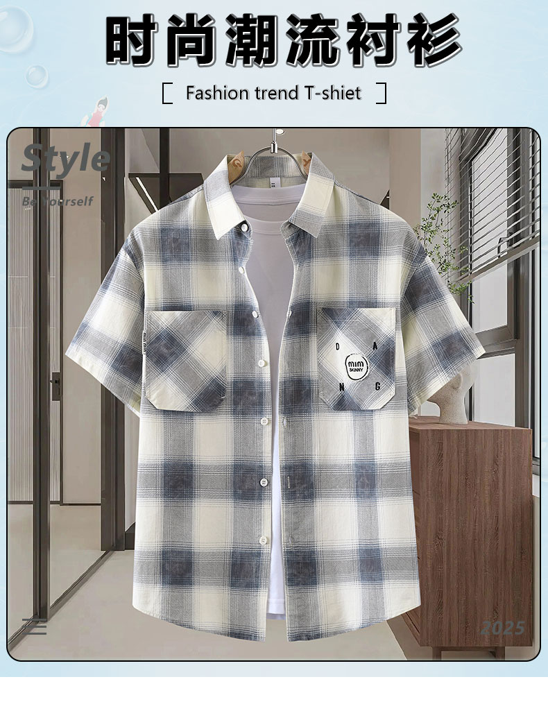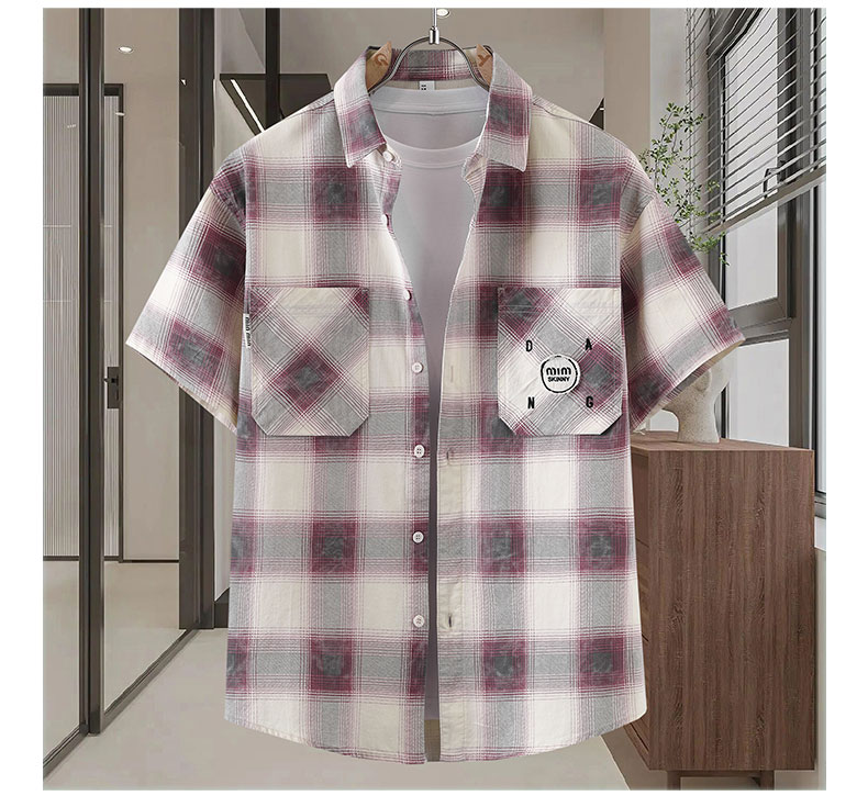 Plaid Short-Sleeved Shirt Men's Summer Youth Trendy Korean Style Pure Cotton Half-Sleeved Shirt Junior High School and High School Student Inch Shirt
