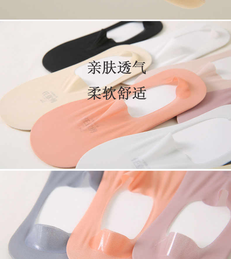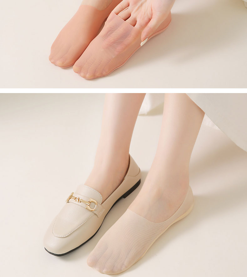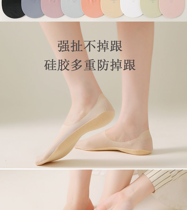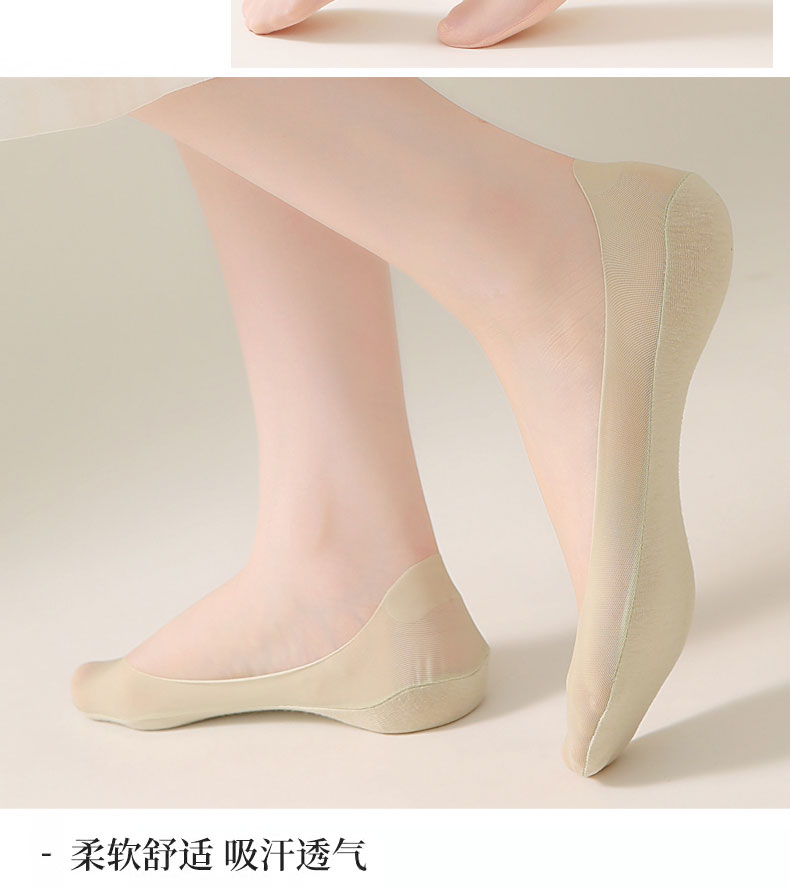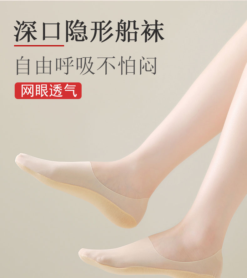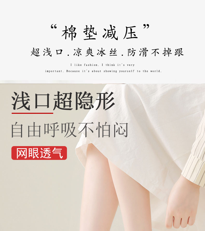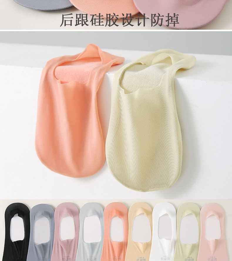 Summer Ice Silk Breathable Mesh Boat Socks, Thin Low-Cut Invisible Combed Cotton Sole, Sweat-Absorbent, Silicone Non-Slip, No-Slip Heel Socks
