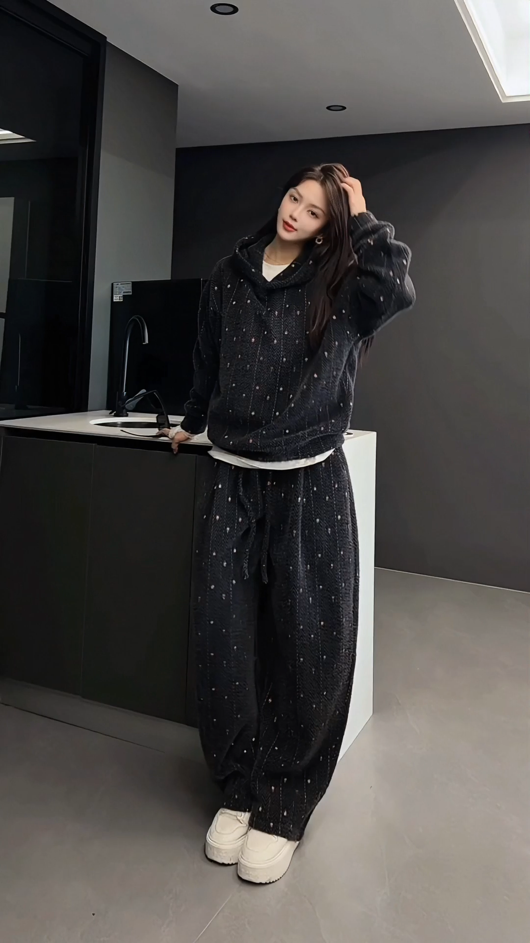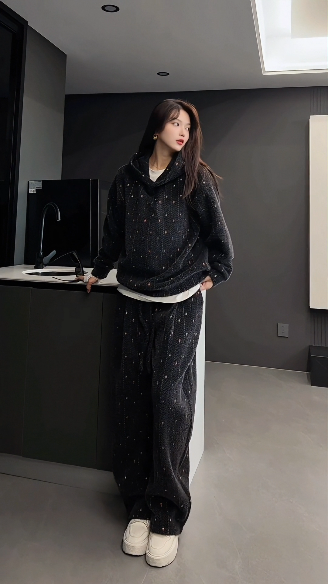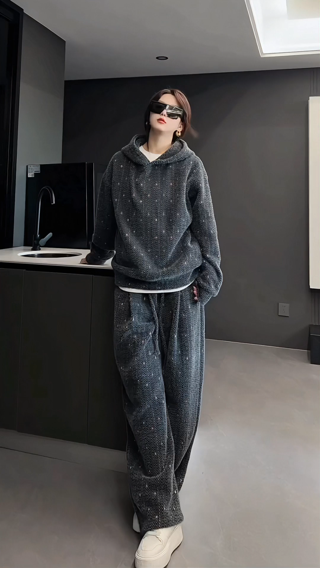 【High Quality】Thickened and Warm Unisex Fashionable Color-Woven Hooded Sweatshirt and Casual Pants Fashionable and Comfortable Set