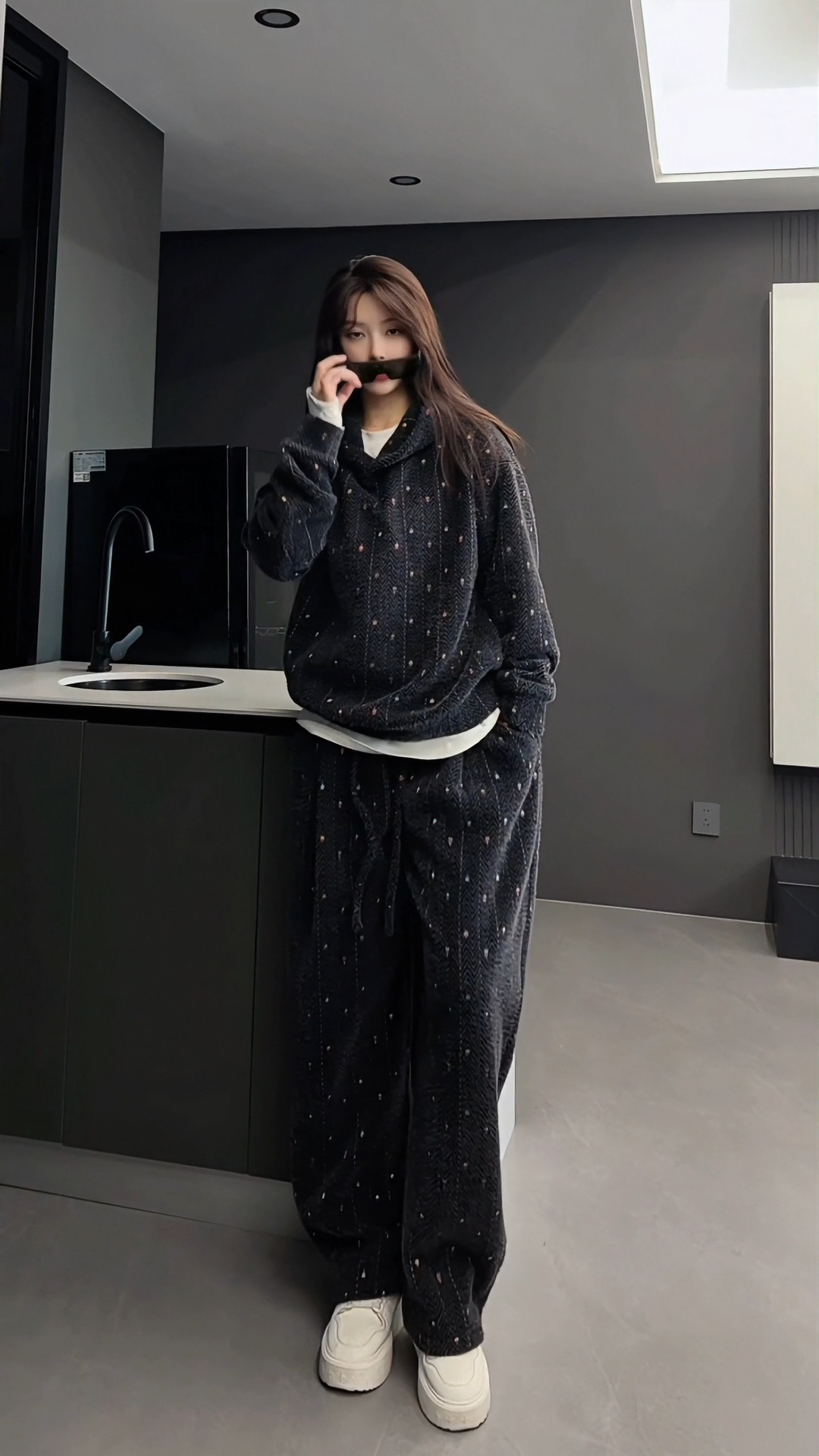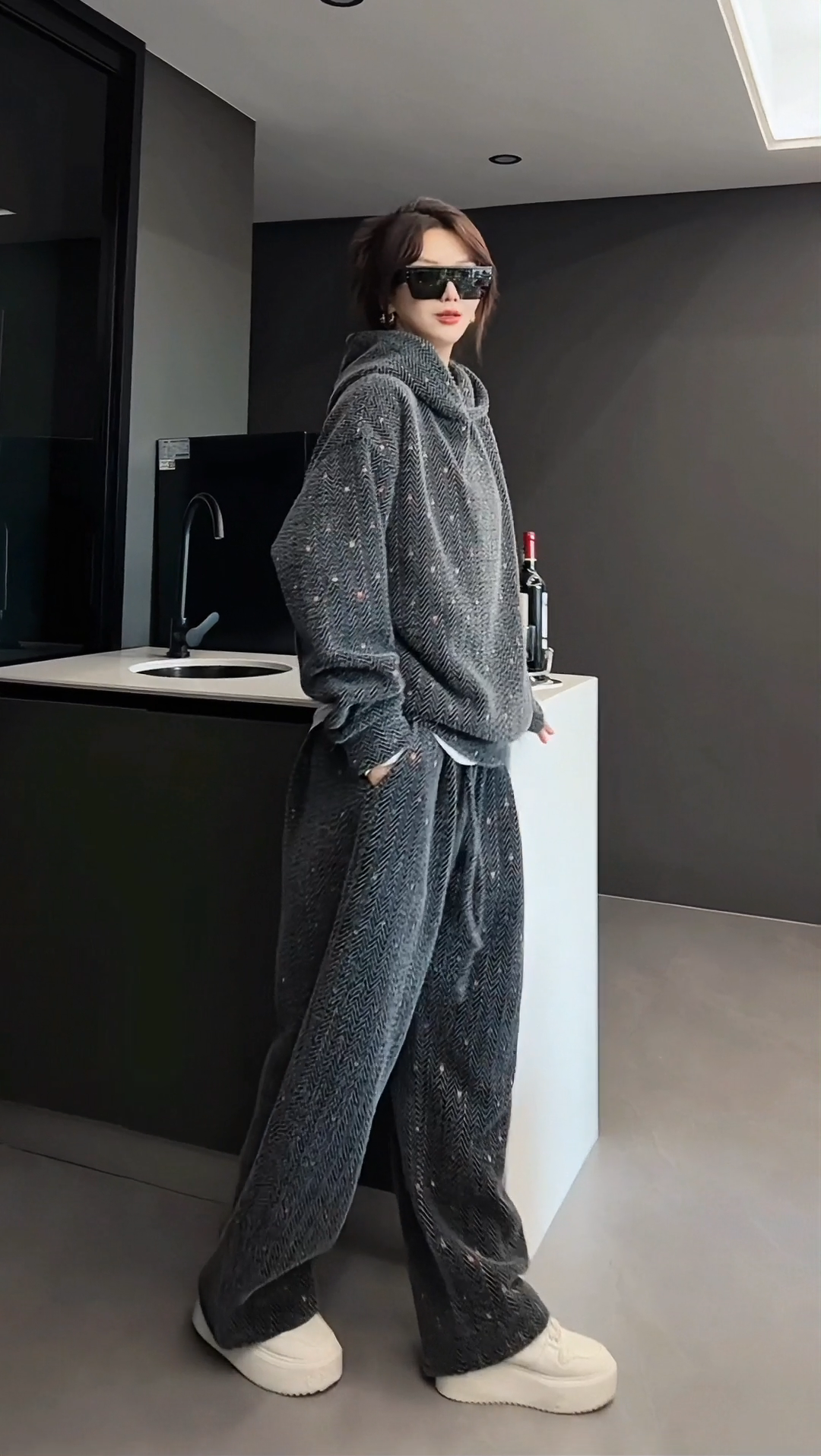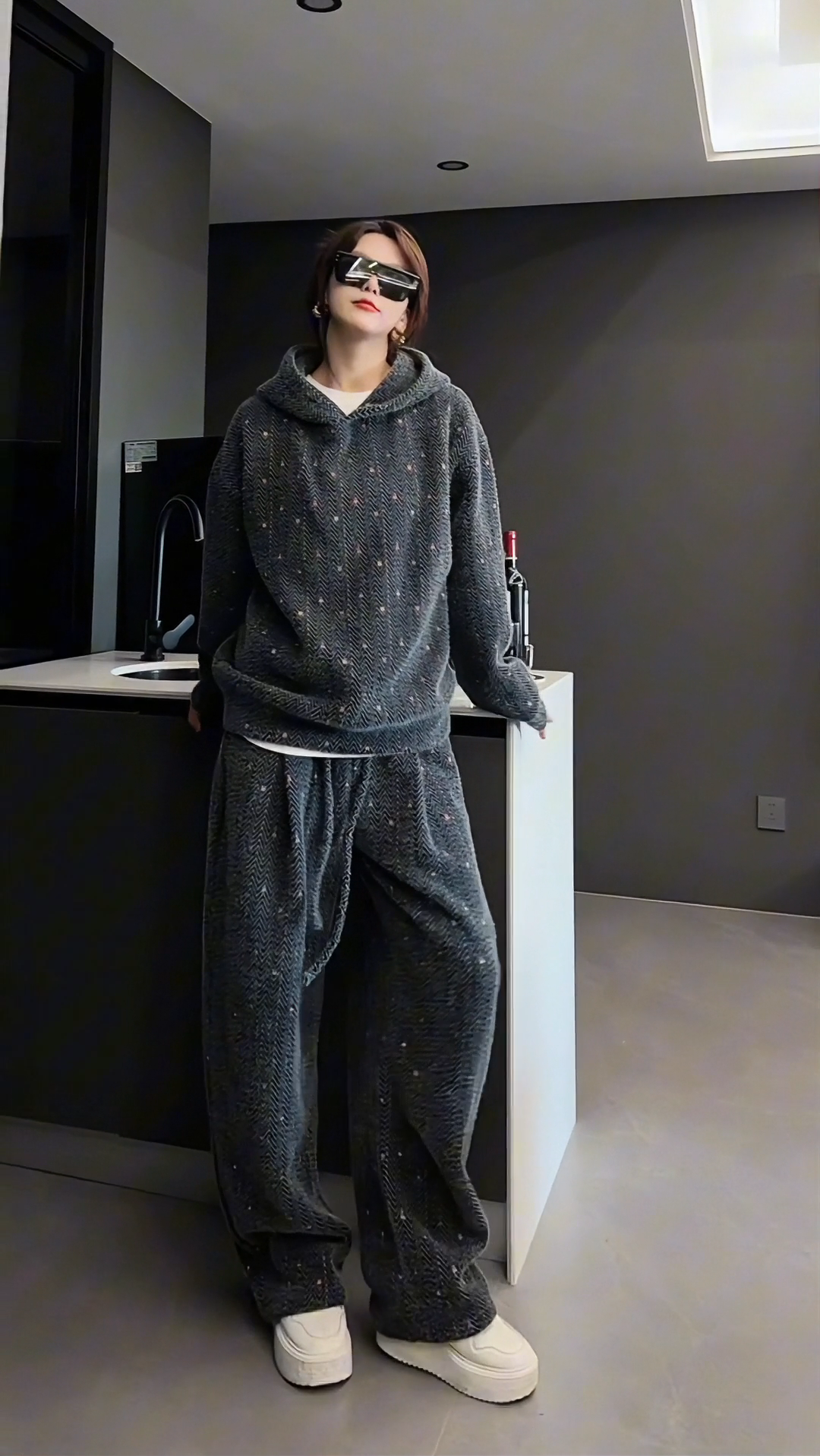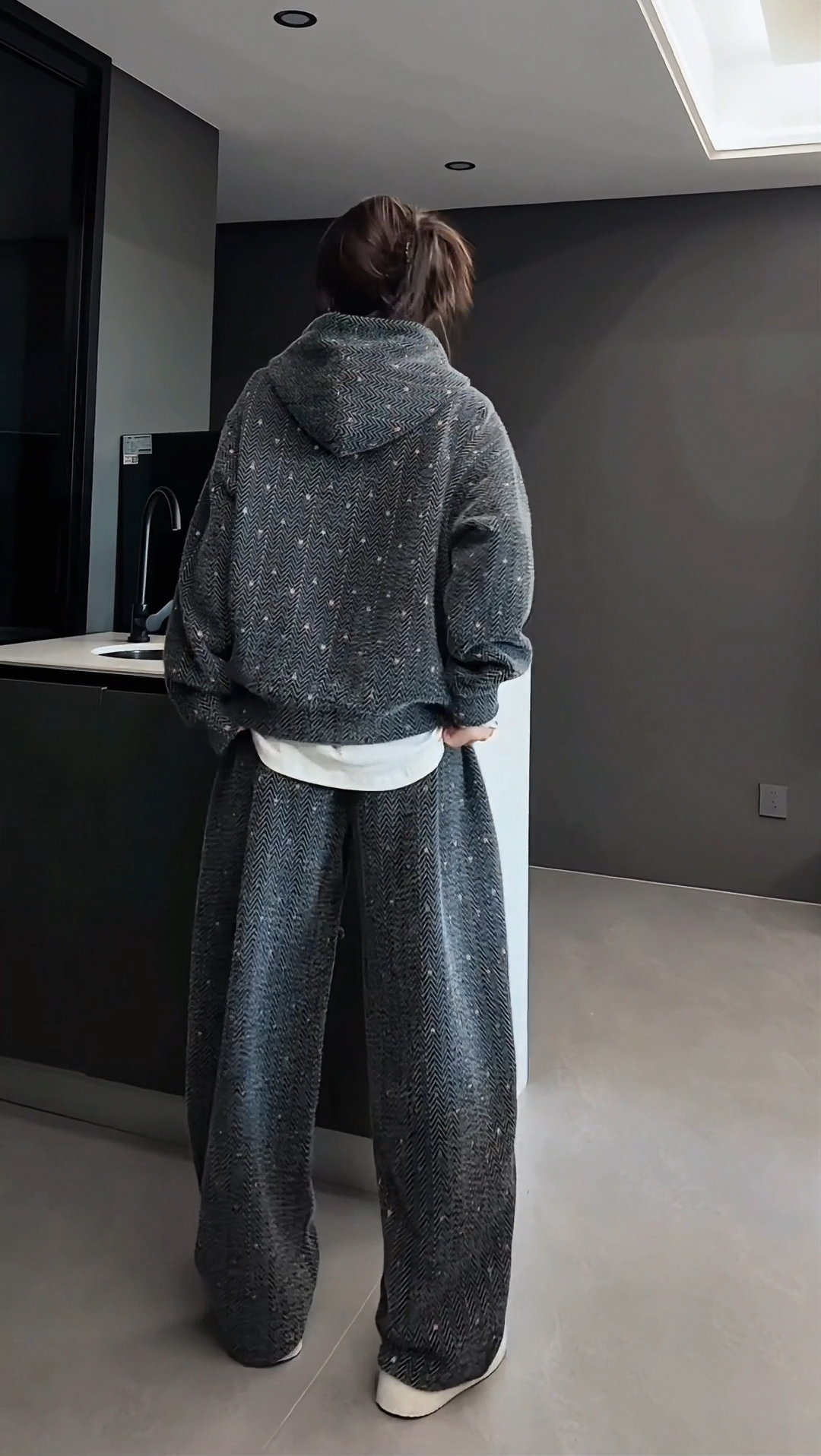 【High Quality】Thickened and Warm Unisex Fashionable Color-Woven Hooded Sweatshirt and Casual Pants Fashionable and Comfortable Set