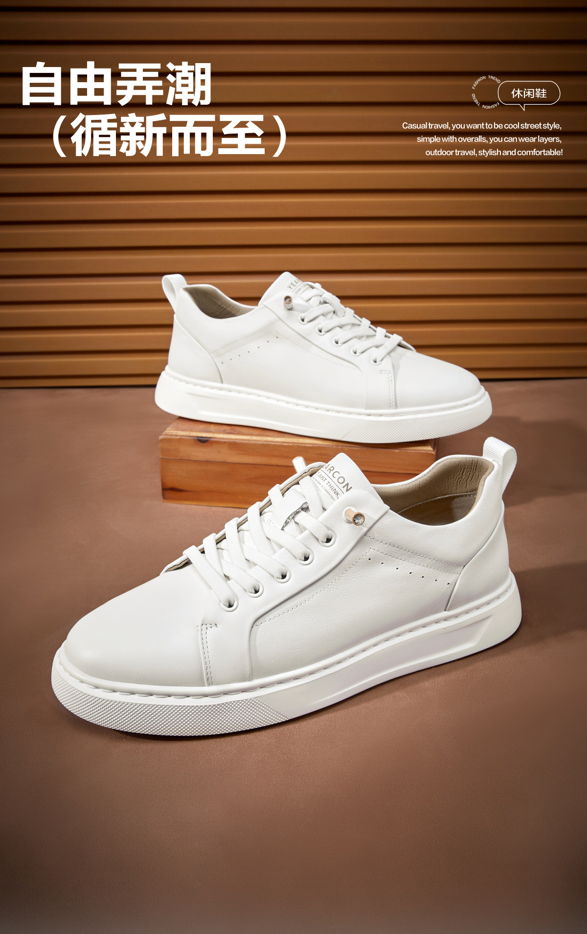 Yierkan Men's Sneakers 2025 Autumn Genuine Leather Thick-Soled White Shoes Fashionable Versatile Slip-On Men's Casual Shoes