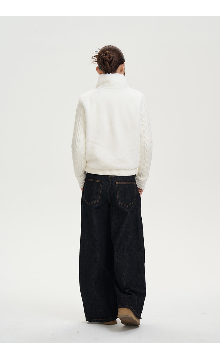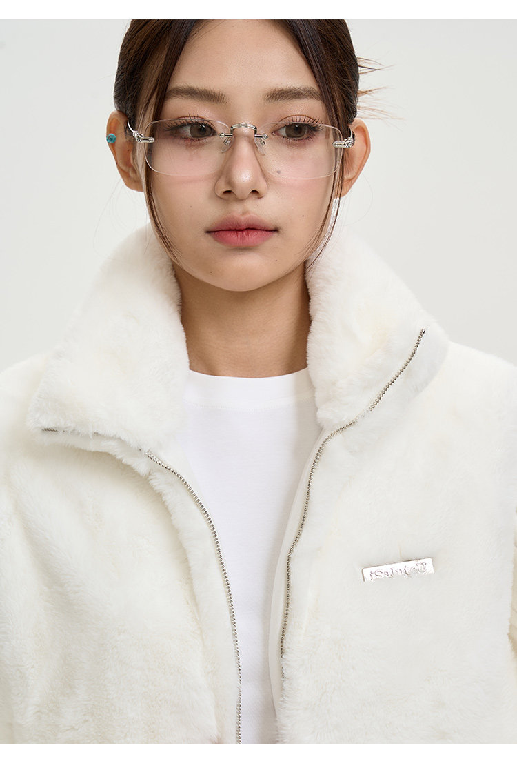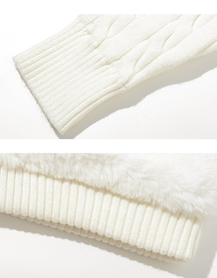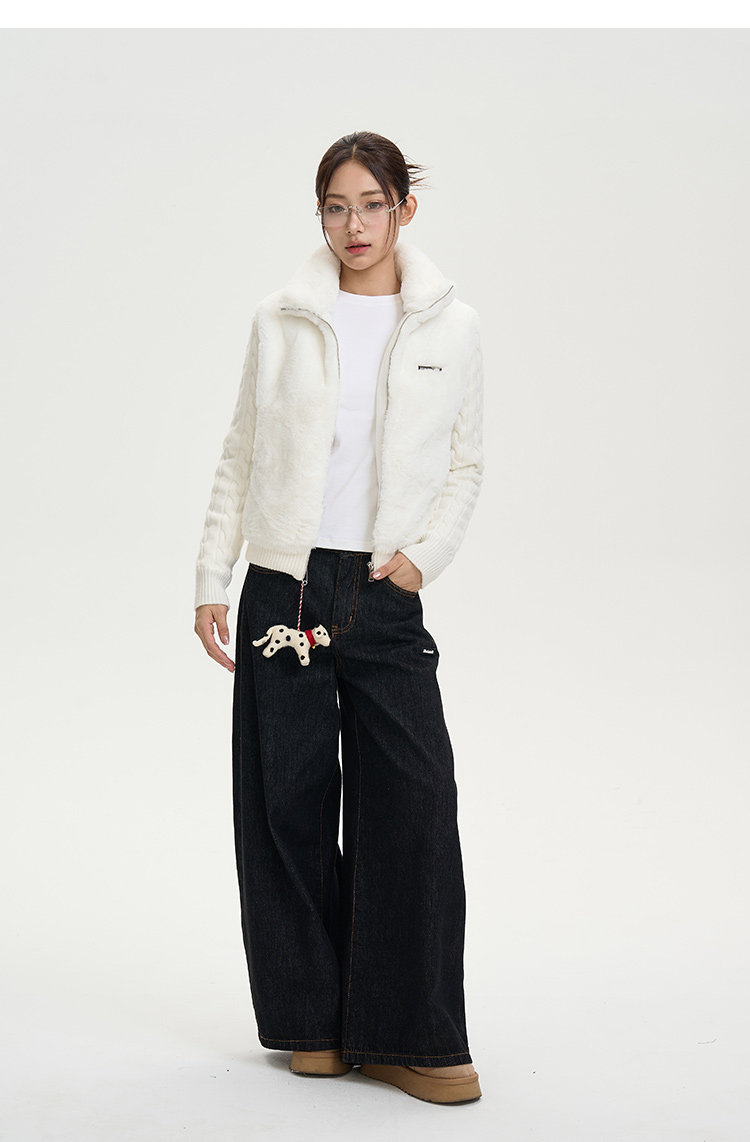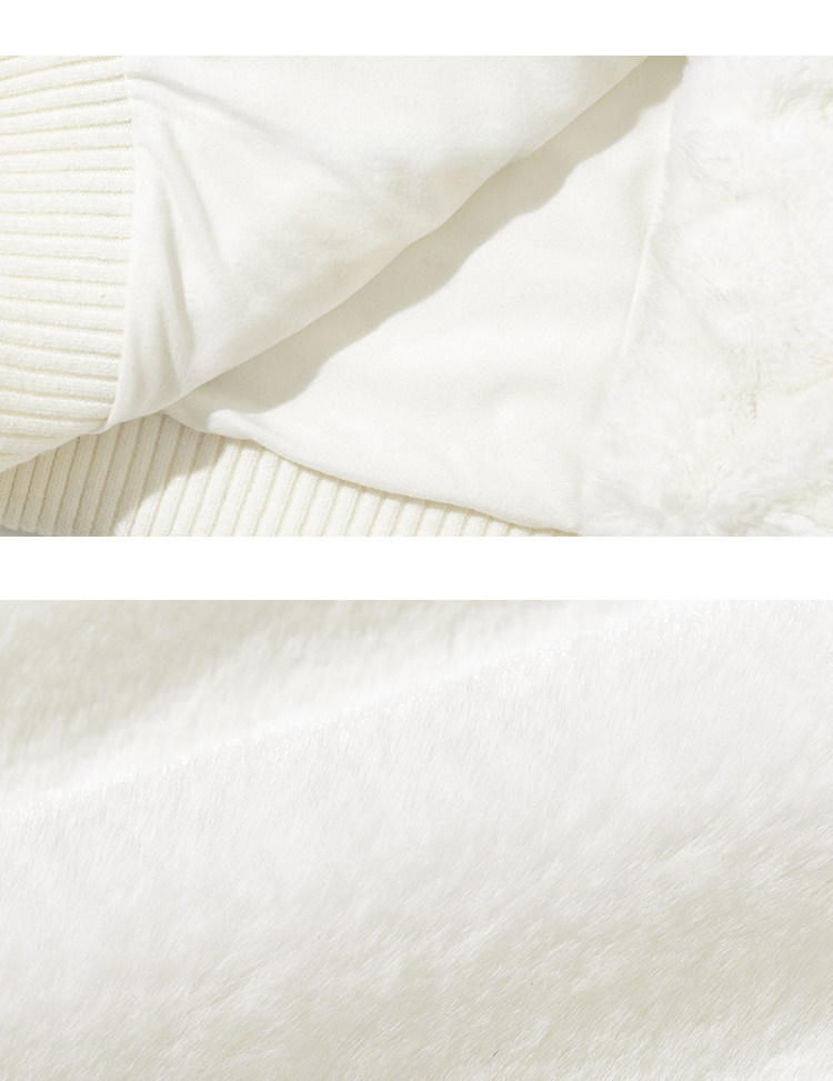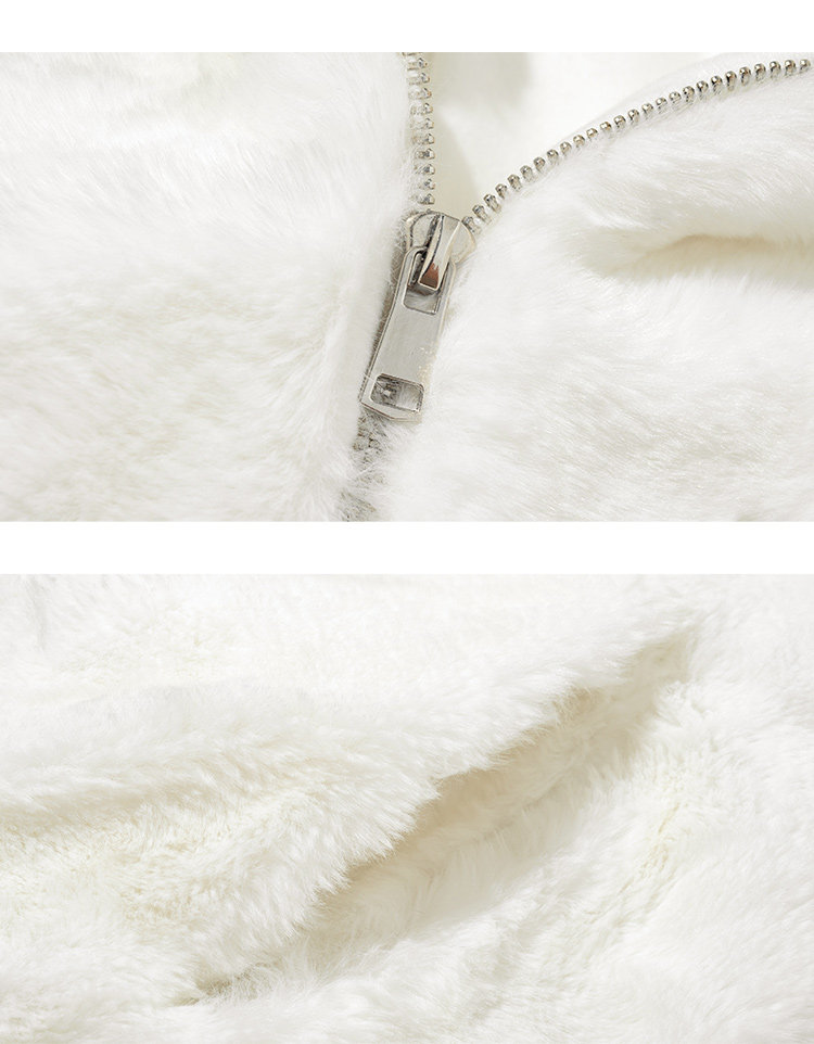 Isaluteu Faux Rabbit Fur Sweater Patchwork Jacket with Small Stand Collar, Trendy Autumn and Winter Warm Short Windproof and Heat-Retaining Cotton Coat