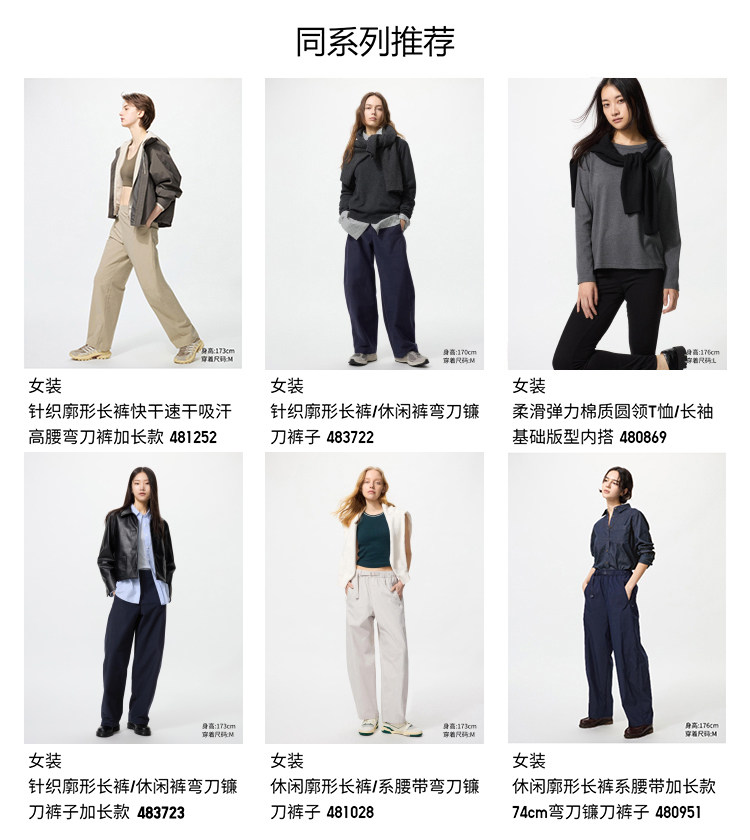 Uniqlo Women's Knit Silhouette Long Pants Quick-Drying Sweat-Absorbing High-Waisted Scythe Pants 479688