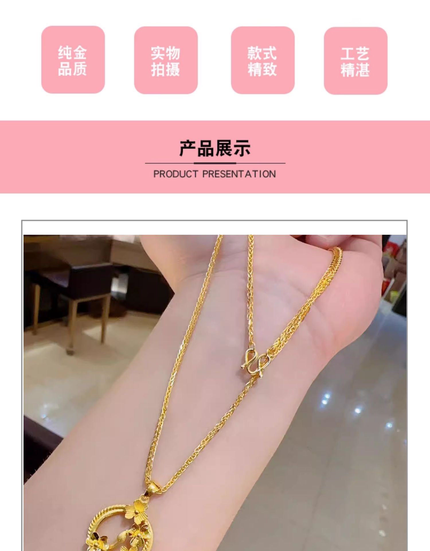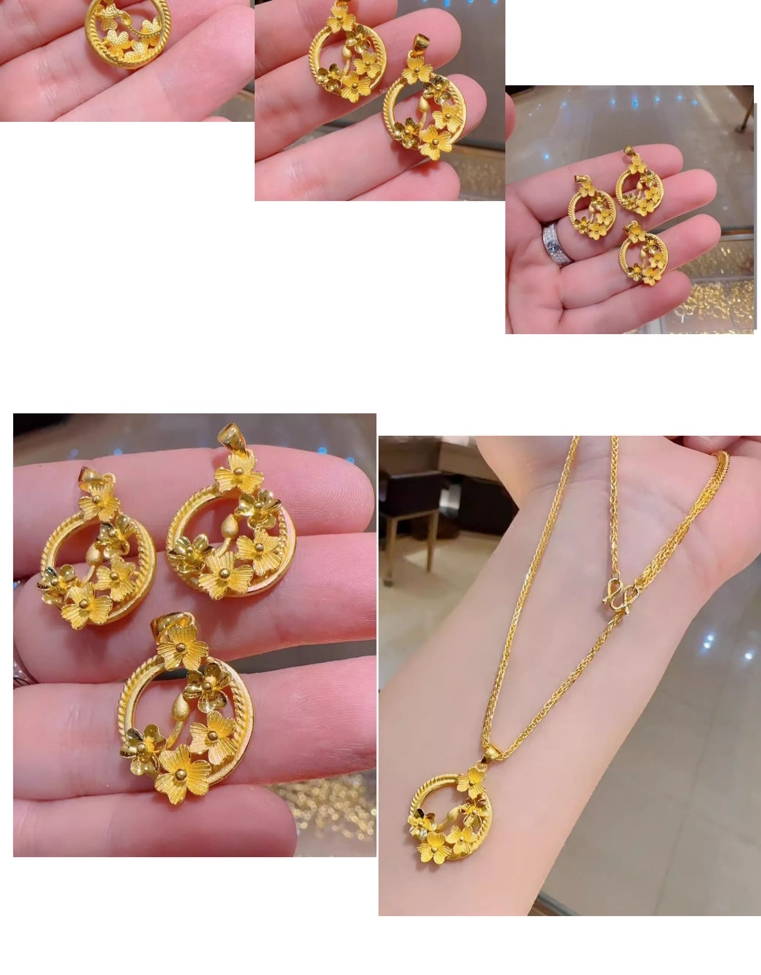 Pure Gold 999.9, 2025 New Premium Flower and Moon Pendant, Blooming Flower Pendant Set with Chain