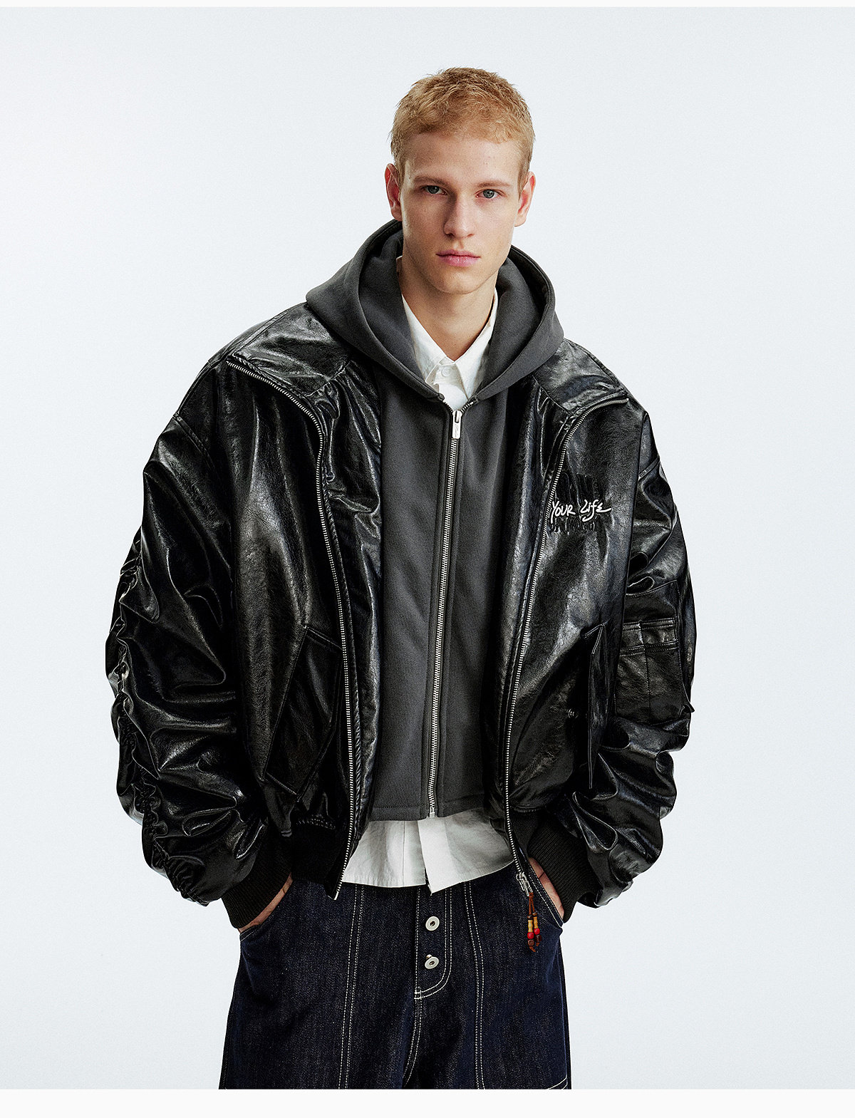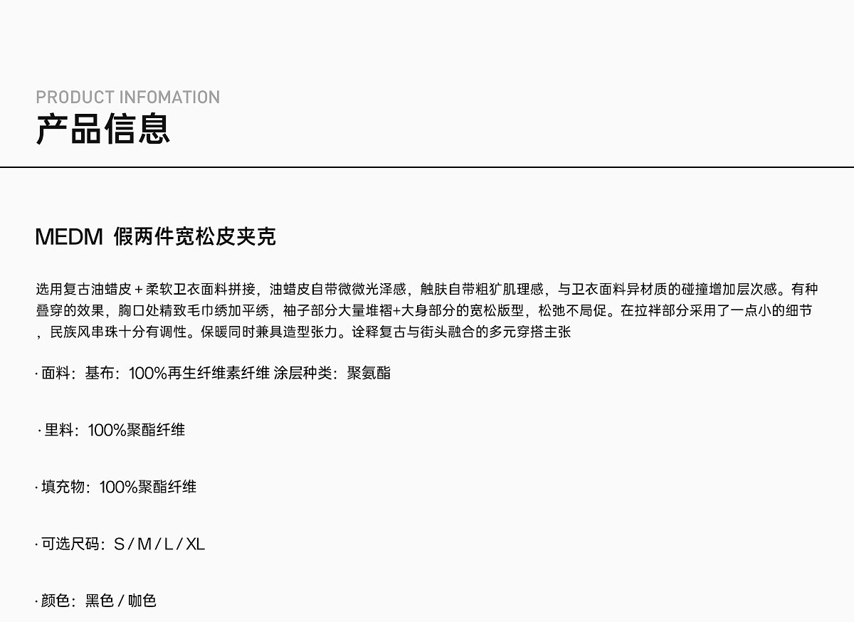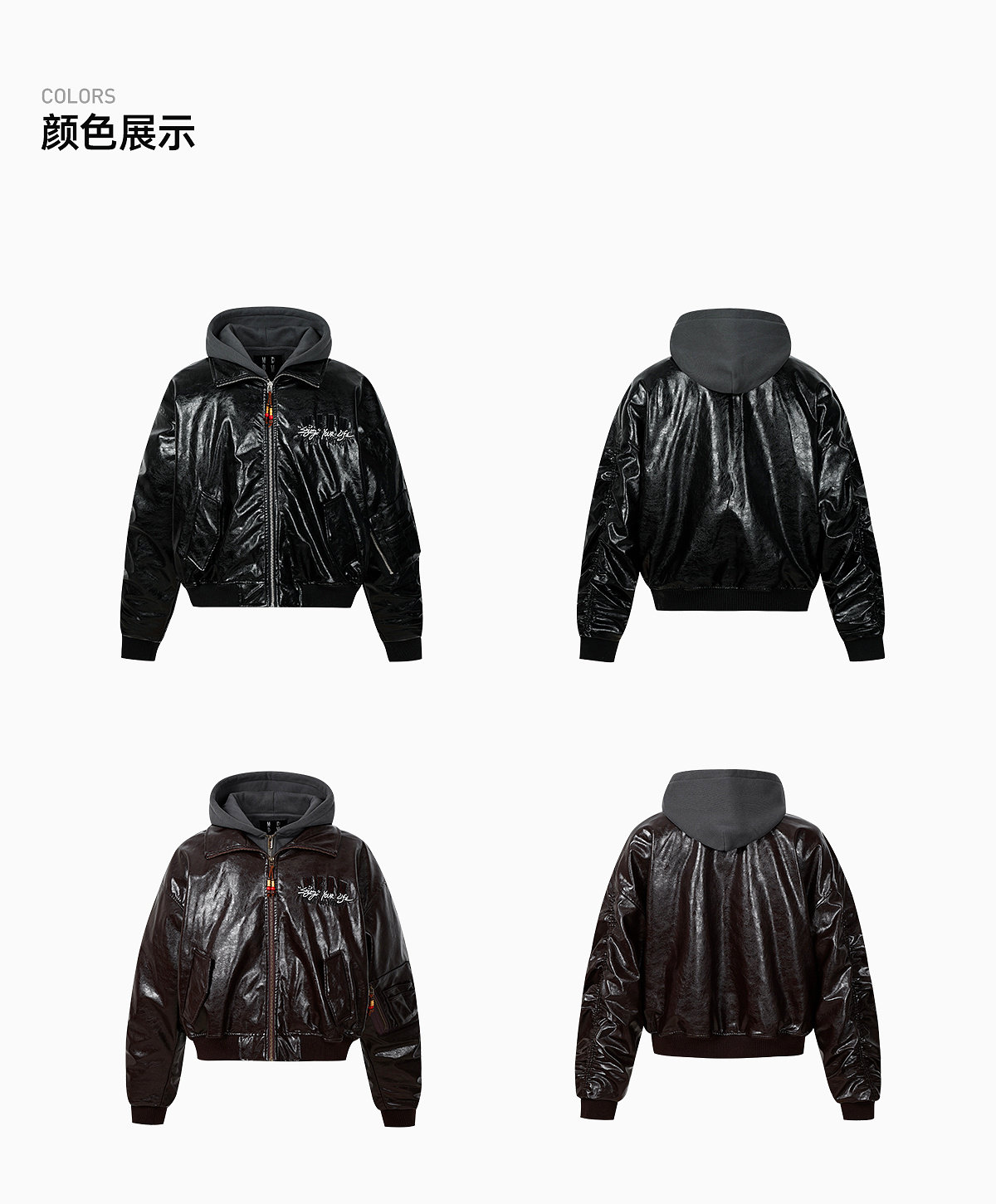 Medm Fake Two-Piece Loose Hooded Zip-Up Leather Jacket Cotton Coat American Style Unisex Warm Casual Cotton Jacket Winter