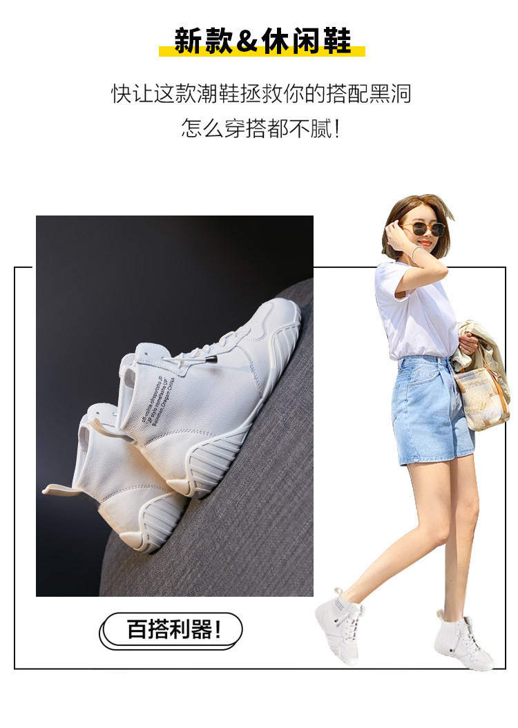 Foreign Trade High-Top White Sneakers for Women, Summer 2025 New Popular Versatile European-Style Genuine Leather Soft-Soled Casual Sports Shoes