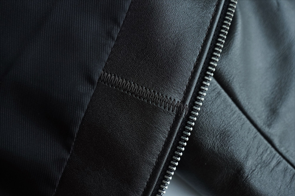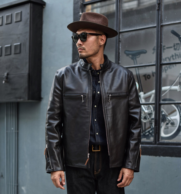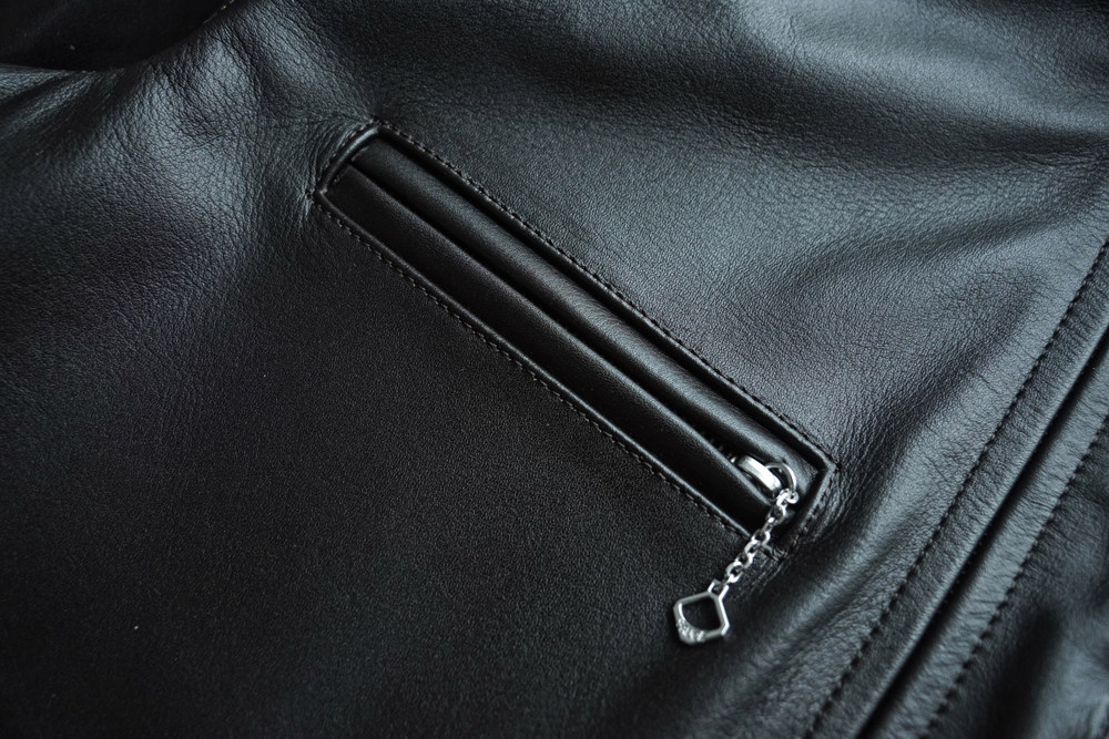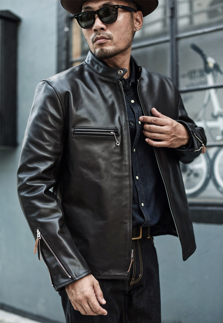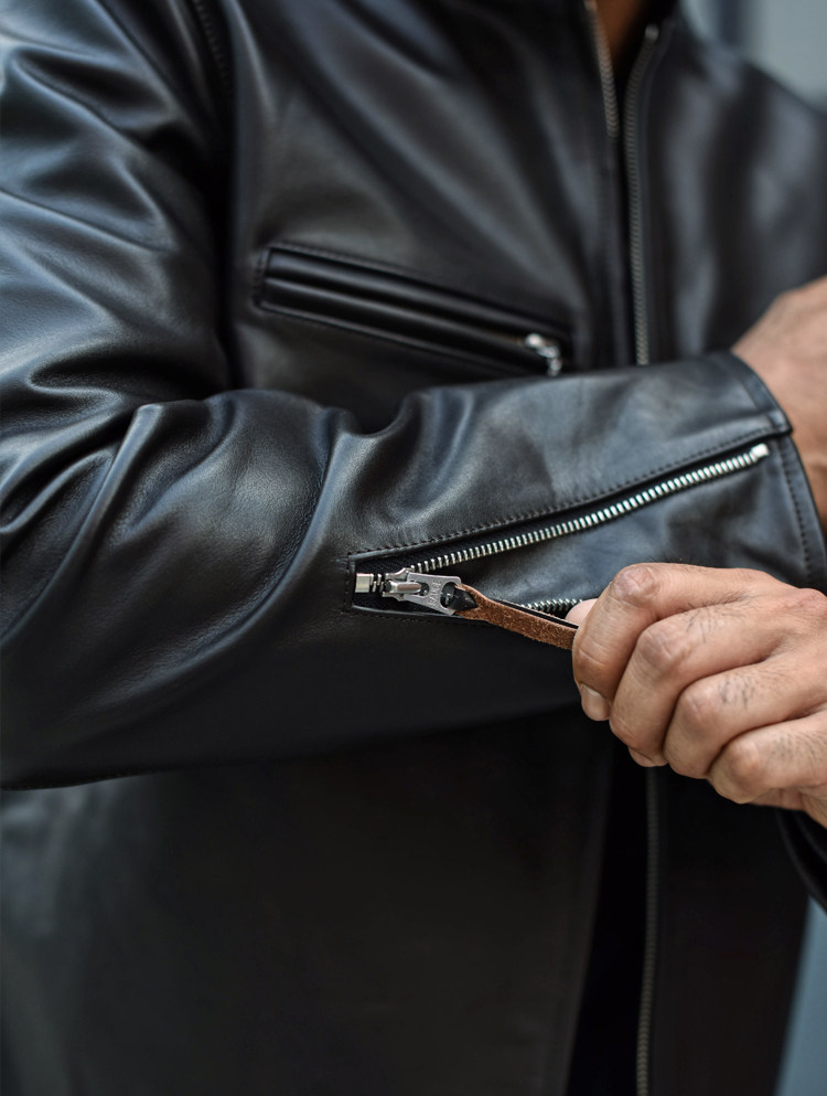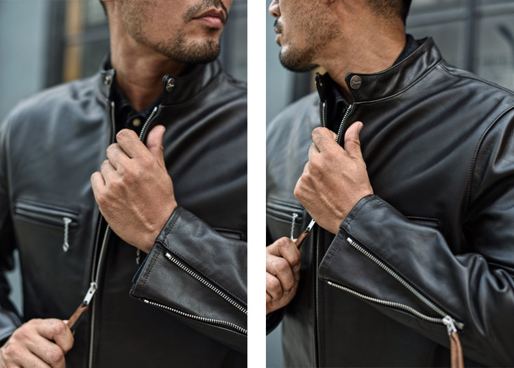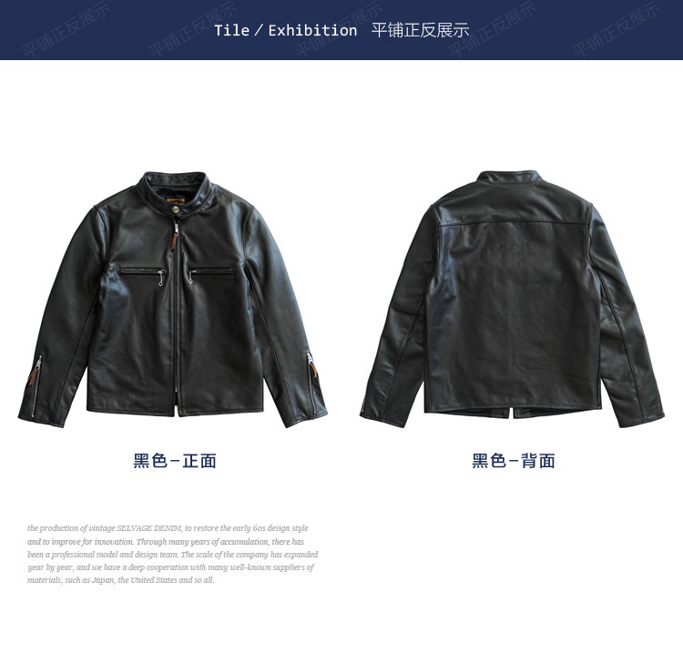 J100一直是阿美咔叽复古玩家心中不可或缺的经典款,剪裁十分精神干练,略修身,袖口拉链可以收紧,是直拉机车皮衣的经典典范。此款J100购入BUC*原版,精细复刻还原,使用进口意大利马皮制作,严苛要求精细裁剪,尽可能避免了动物原生皮料不好的生长纹理,松面以及伤疤,力求每一件都近乎无瑕使用动物较优质的皮革部位,损耗也相对很大。