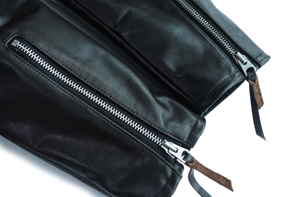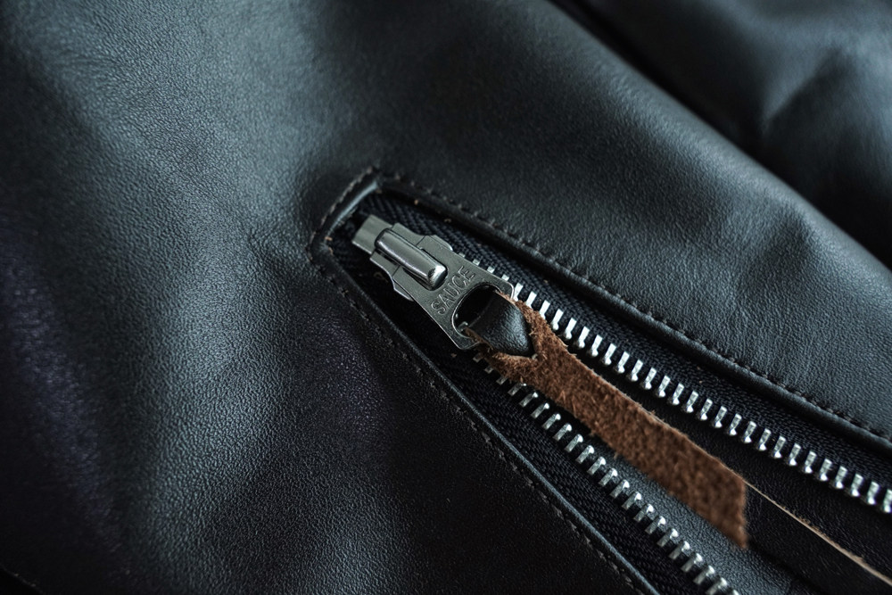 (不同BUC*原版的J100使用的皮革有做工艺纹理,这样可以遮挡掩盖一些肚腩皮情况,使用率要高很多,因为我们顾客相对比较追求WM,所以这里我们裁剪制作时候都是小心谨慎的避开了很多不理想的生长纹和松面,导致皮料使用率较低)生产价格自然也非常昂贵,售价也并不低。少量生产几十件,希望大家喜欢。J100的复刻除了皮料严谨,在五金拉链细节上也是做到了高度还原,全开模定制拉链对照原版高度相似。细节还原到位,版型也相当好。