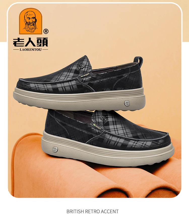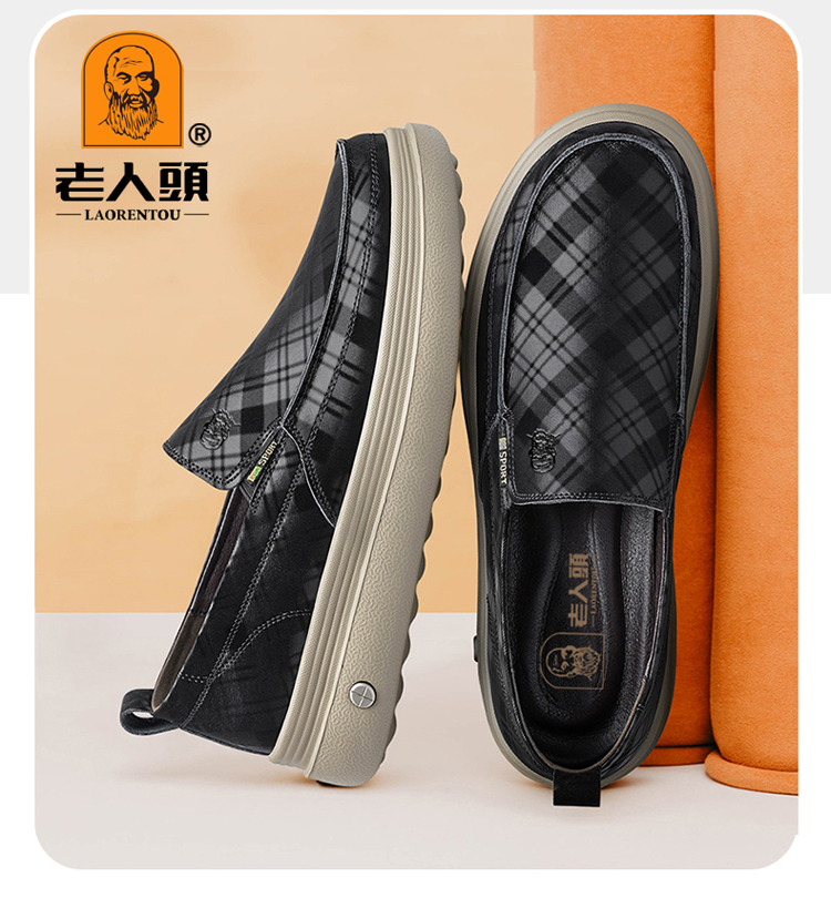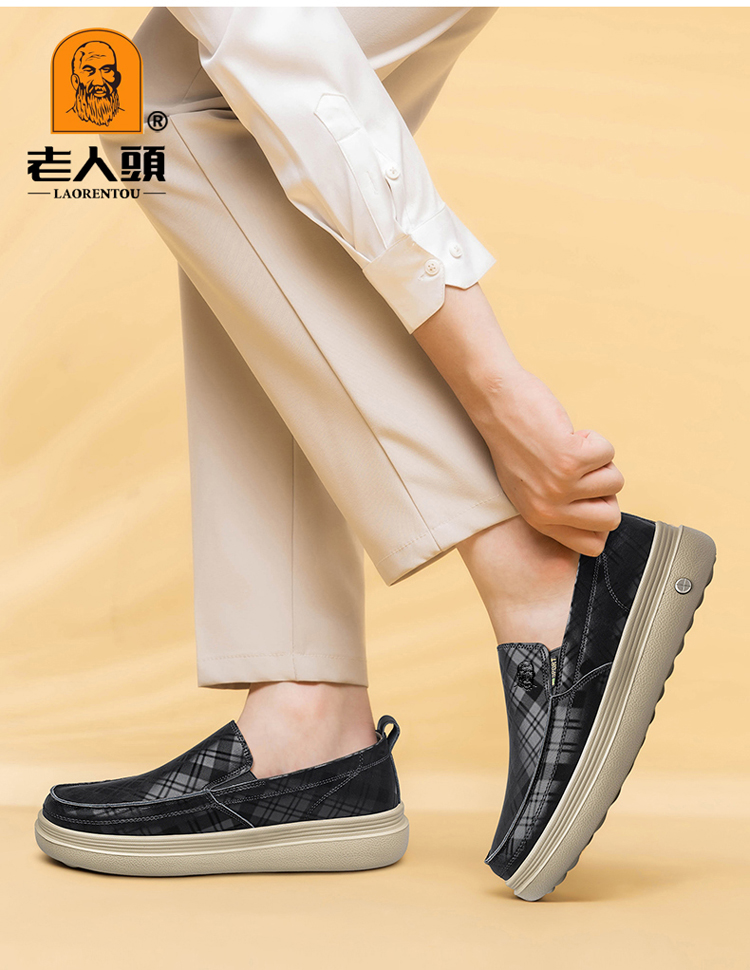 Old Man's Head Men's Shoes 2025 New Genuine Leather Breathable Casual Leather Shoes Men's Lightweight Soft Sole Slip-On Lazy Dad Shoes