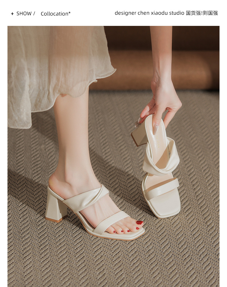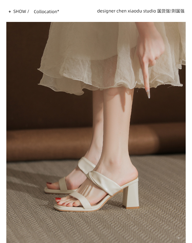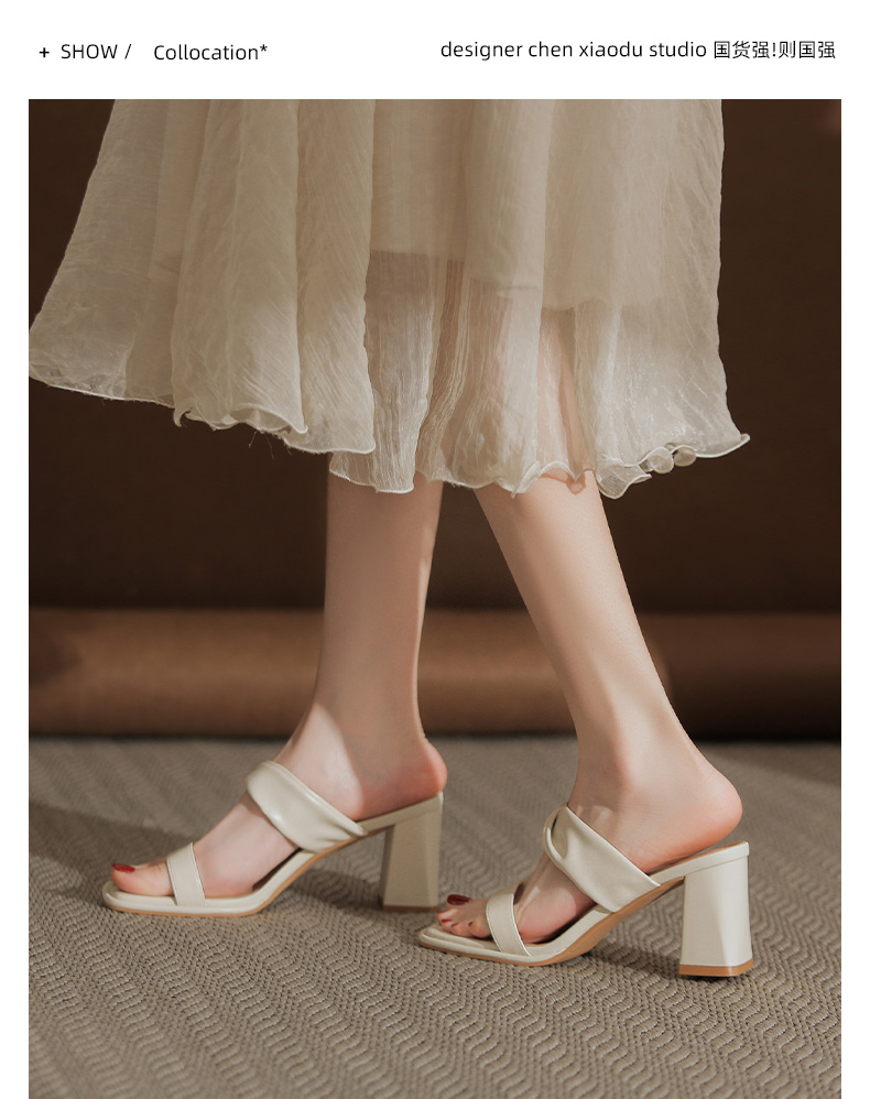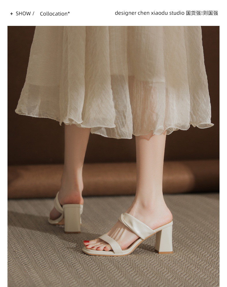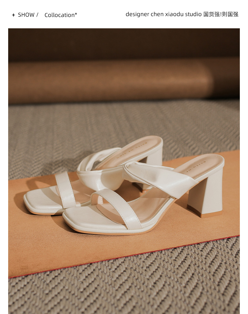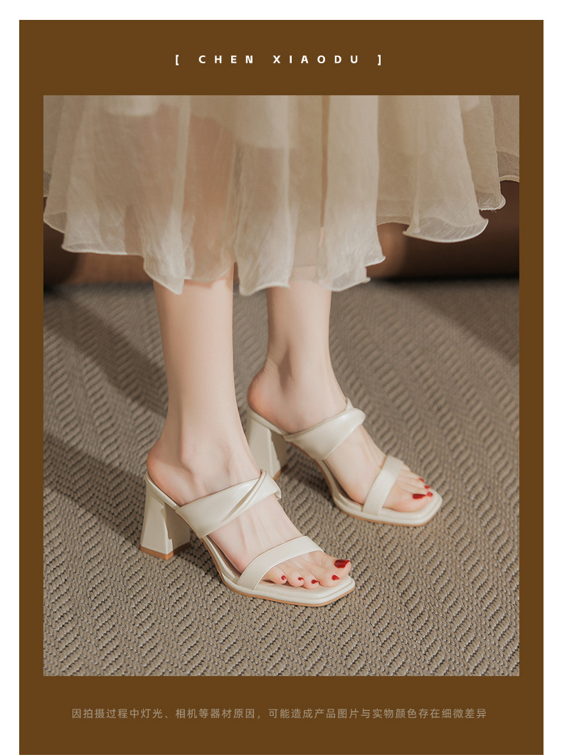 Summer New Style Chanel-Inspired Square-Toe White Half-Slipper with a Gentle Temperament, High-Heeled Sandals for Women to Wear Outside