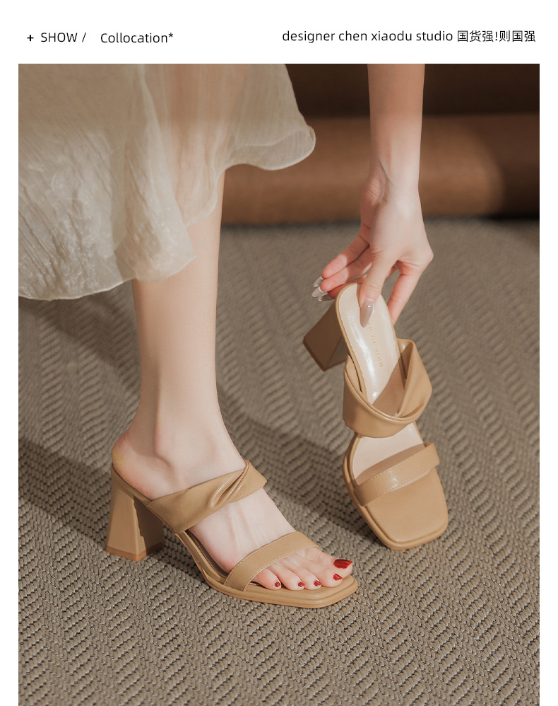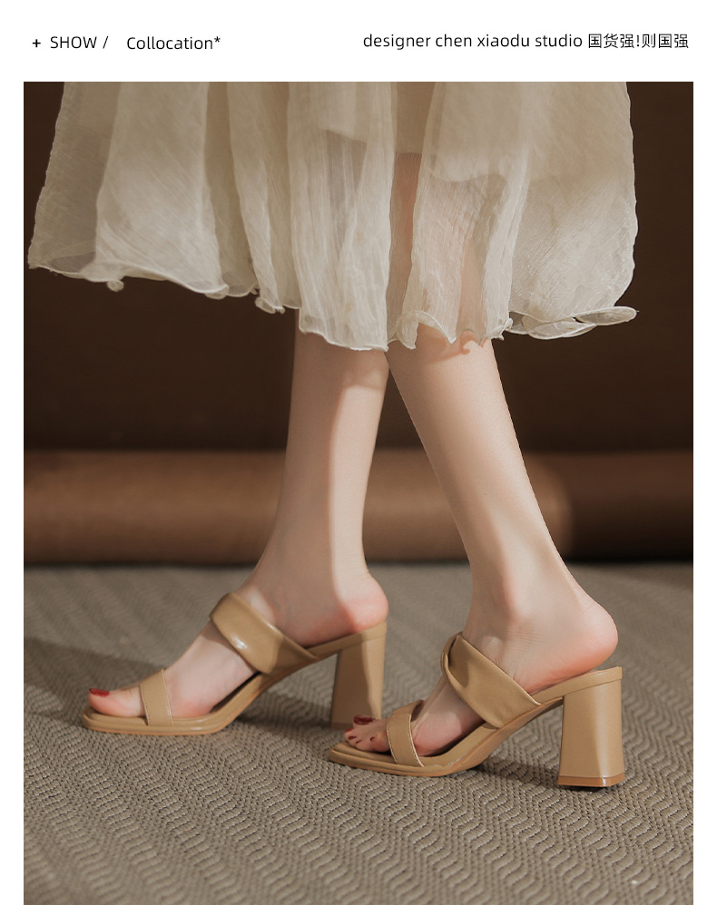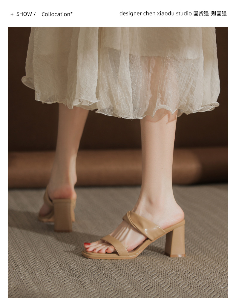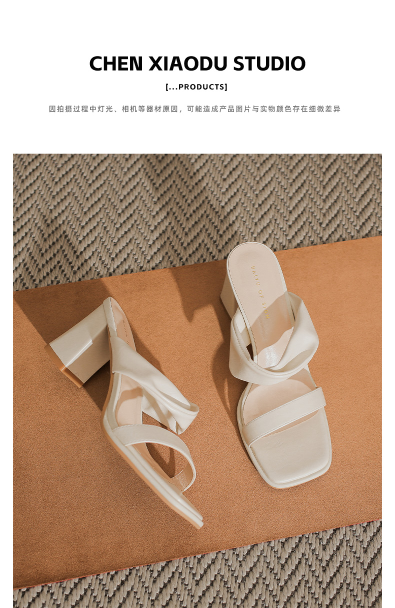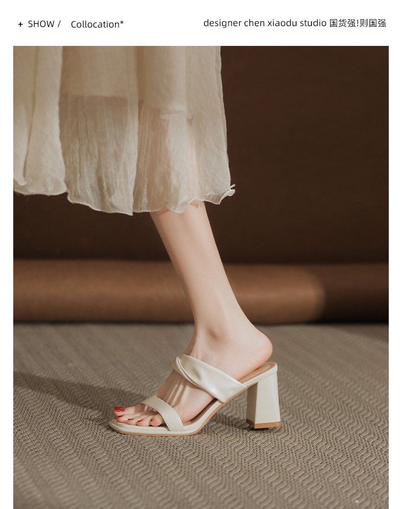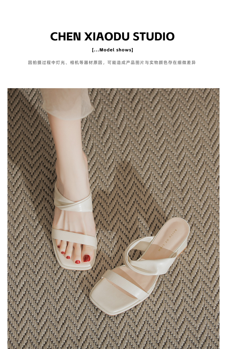 Summer New Style Chanel-Inspired Square-Toe White Half-Slipper with a Gentle Temperament, High-Heeled Sandals for Women to Wear Outside