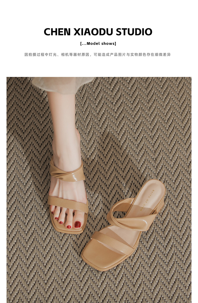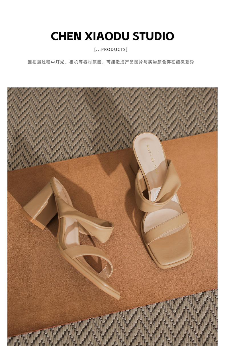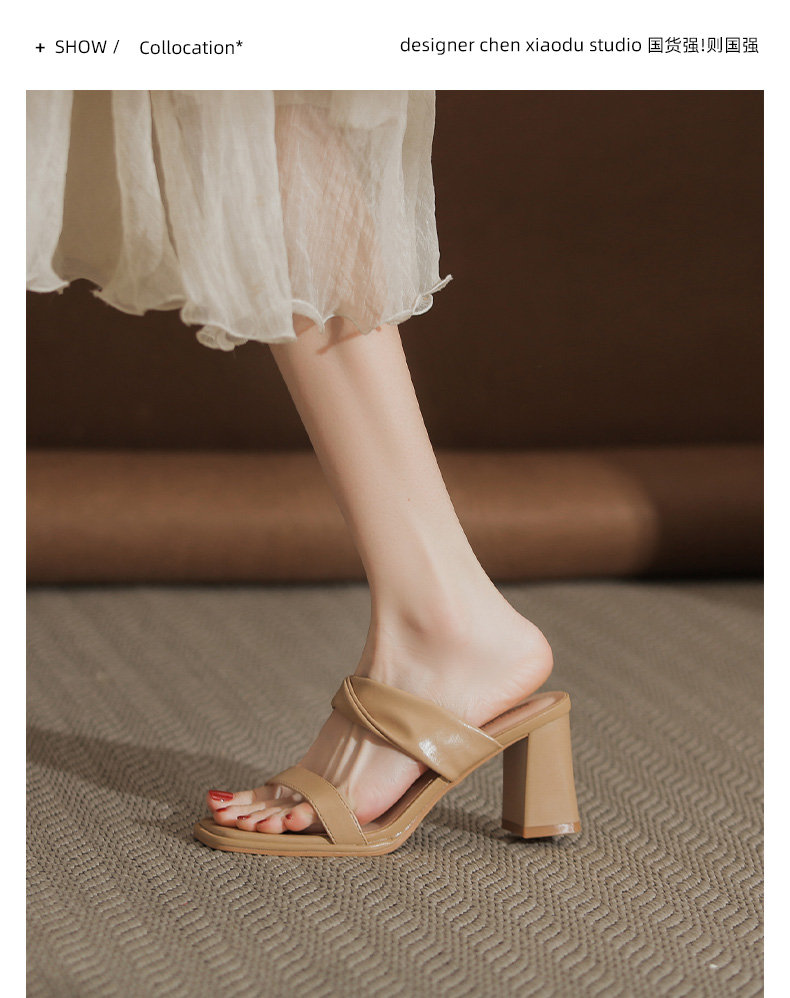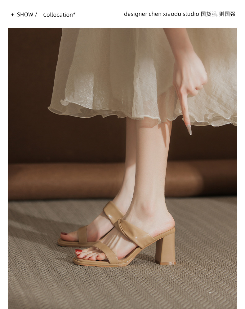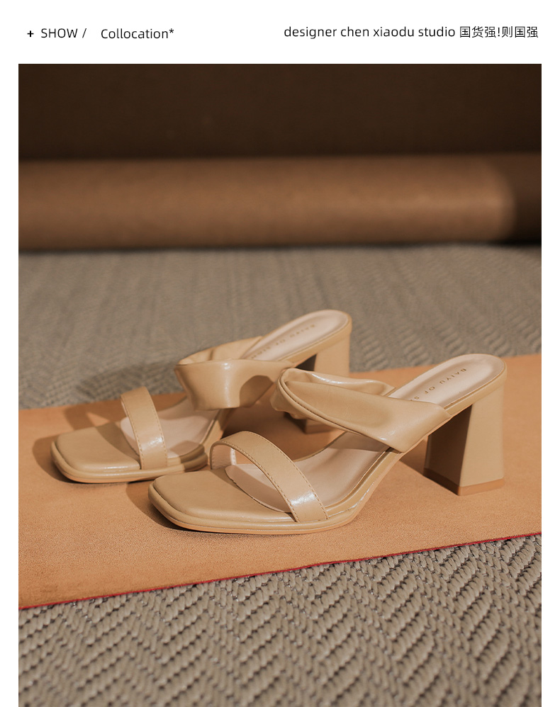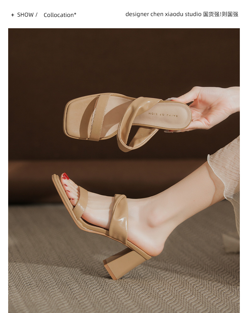 Summer New Style Chanel-Inspired Square-Toe White Half-Slipper with a Gentle Temperament, High-Heeled Sandals for Women to Wear Outside