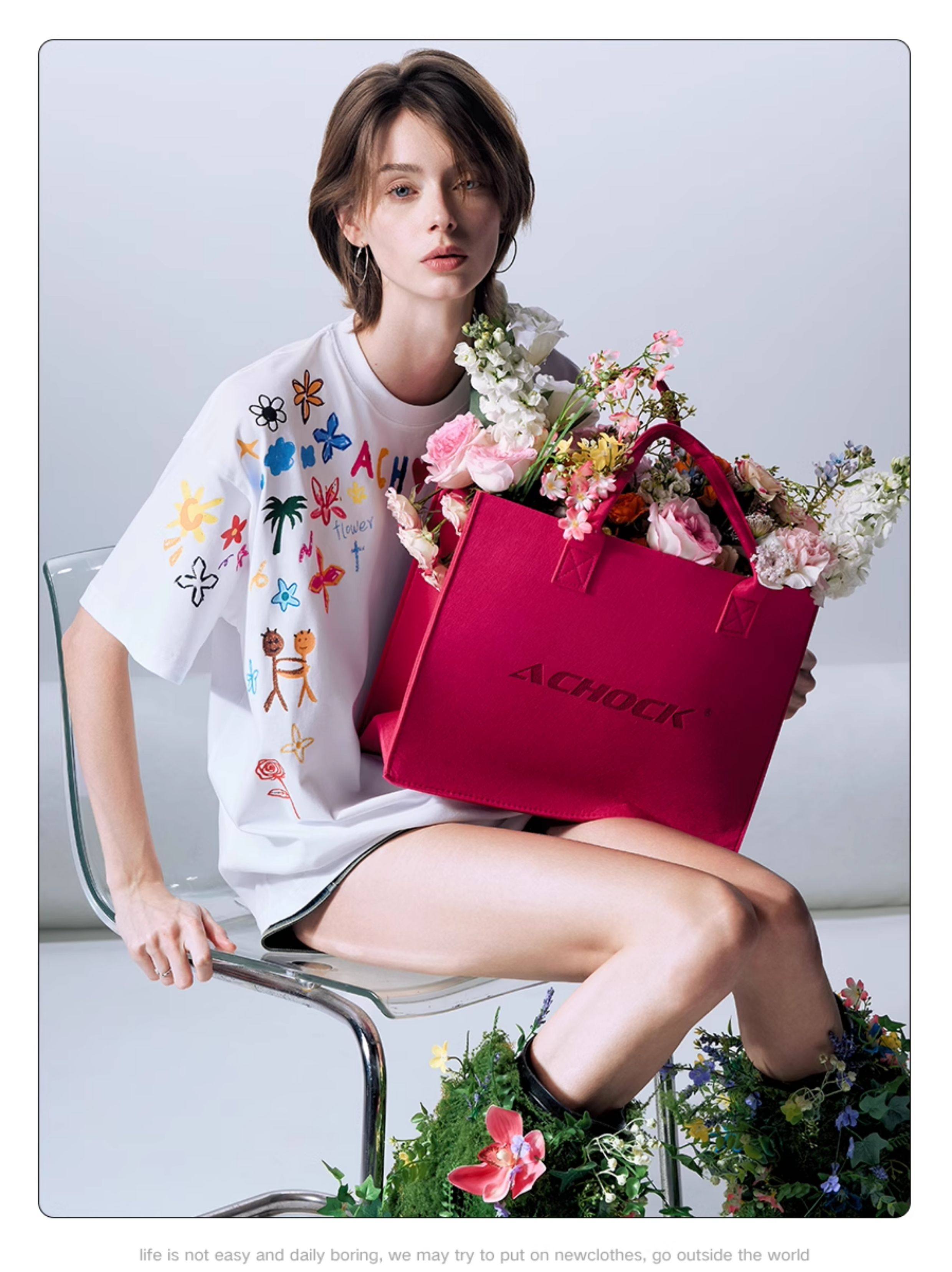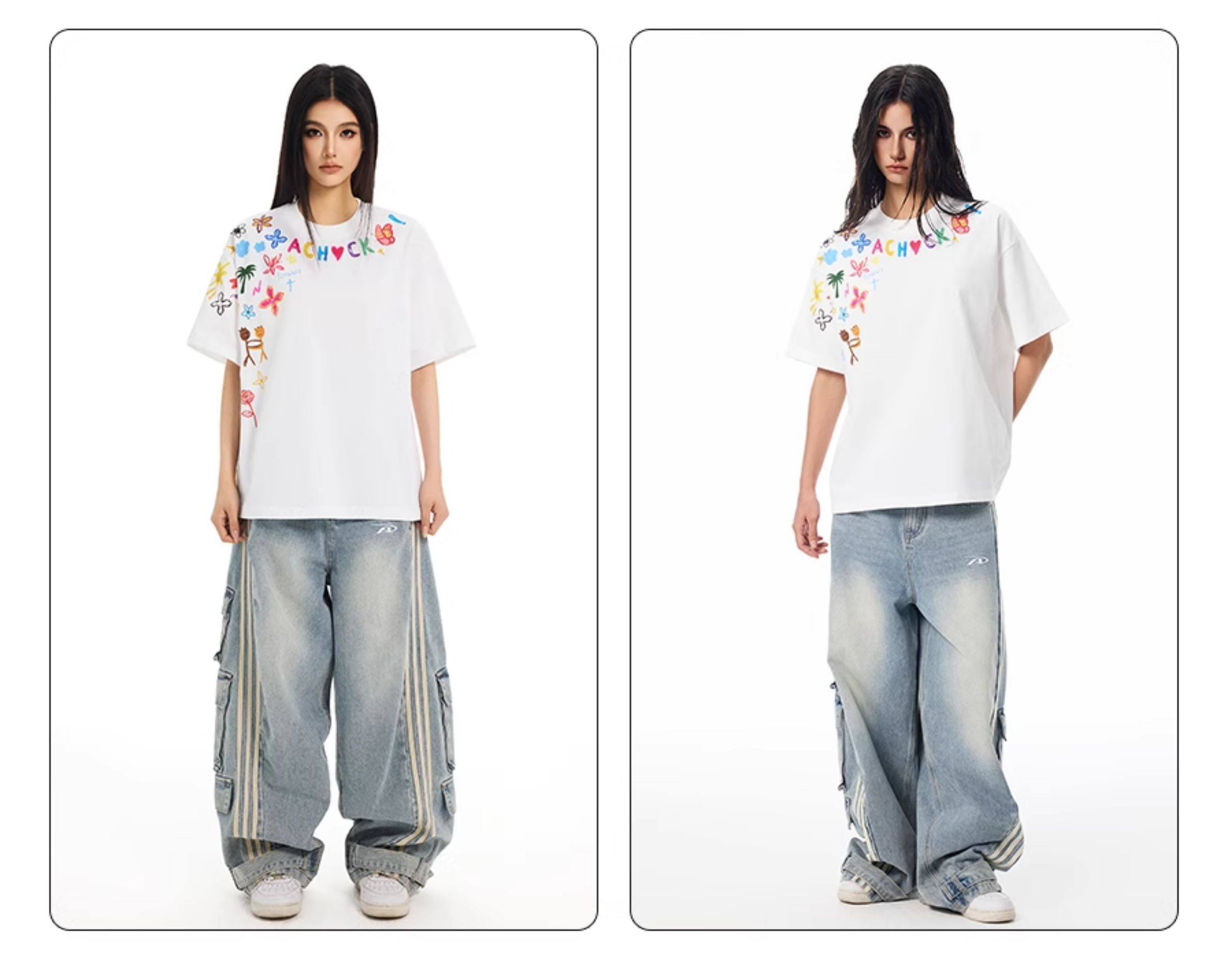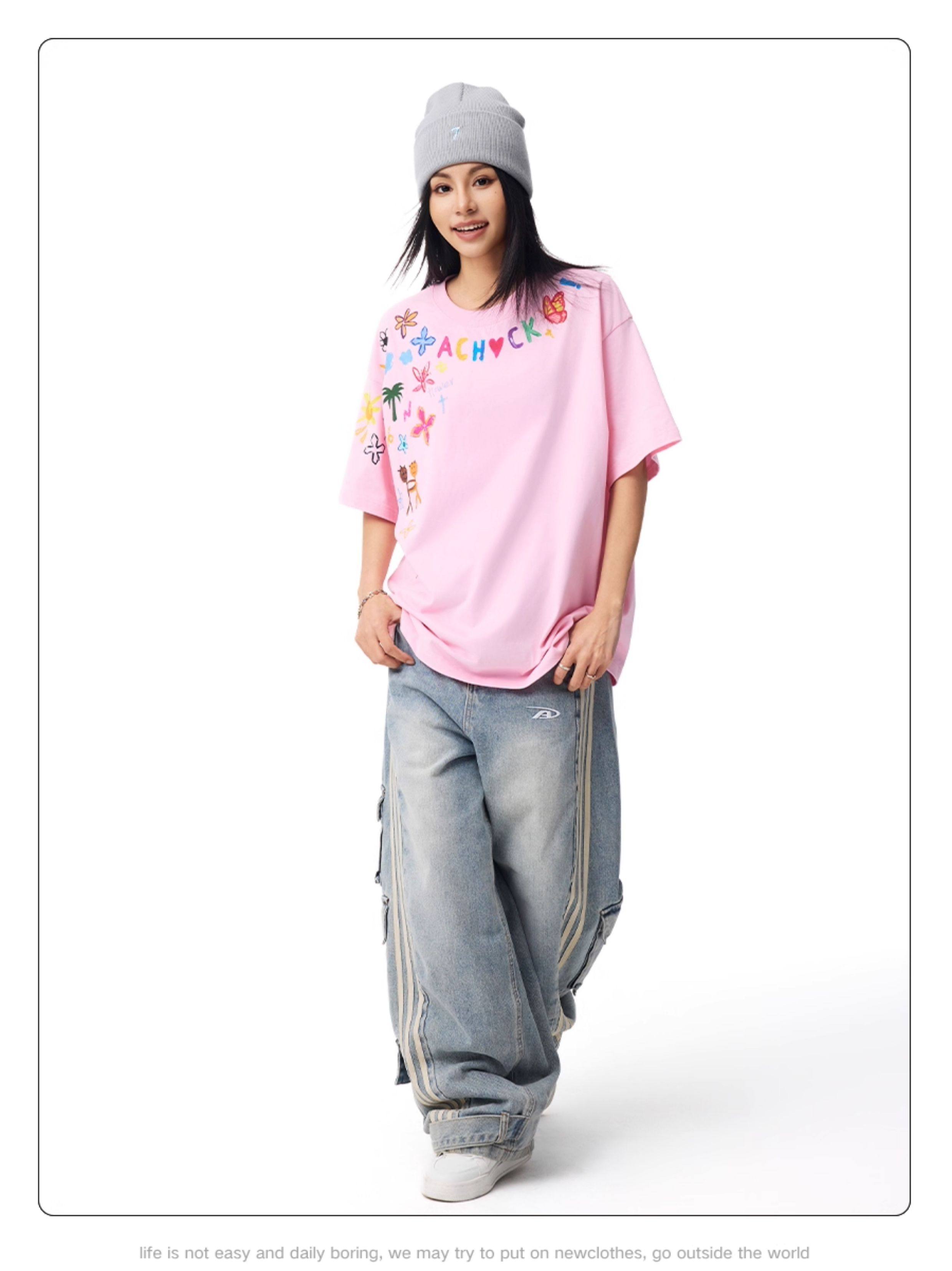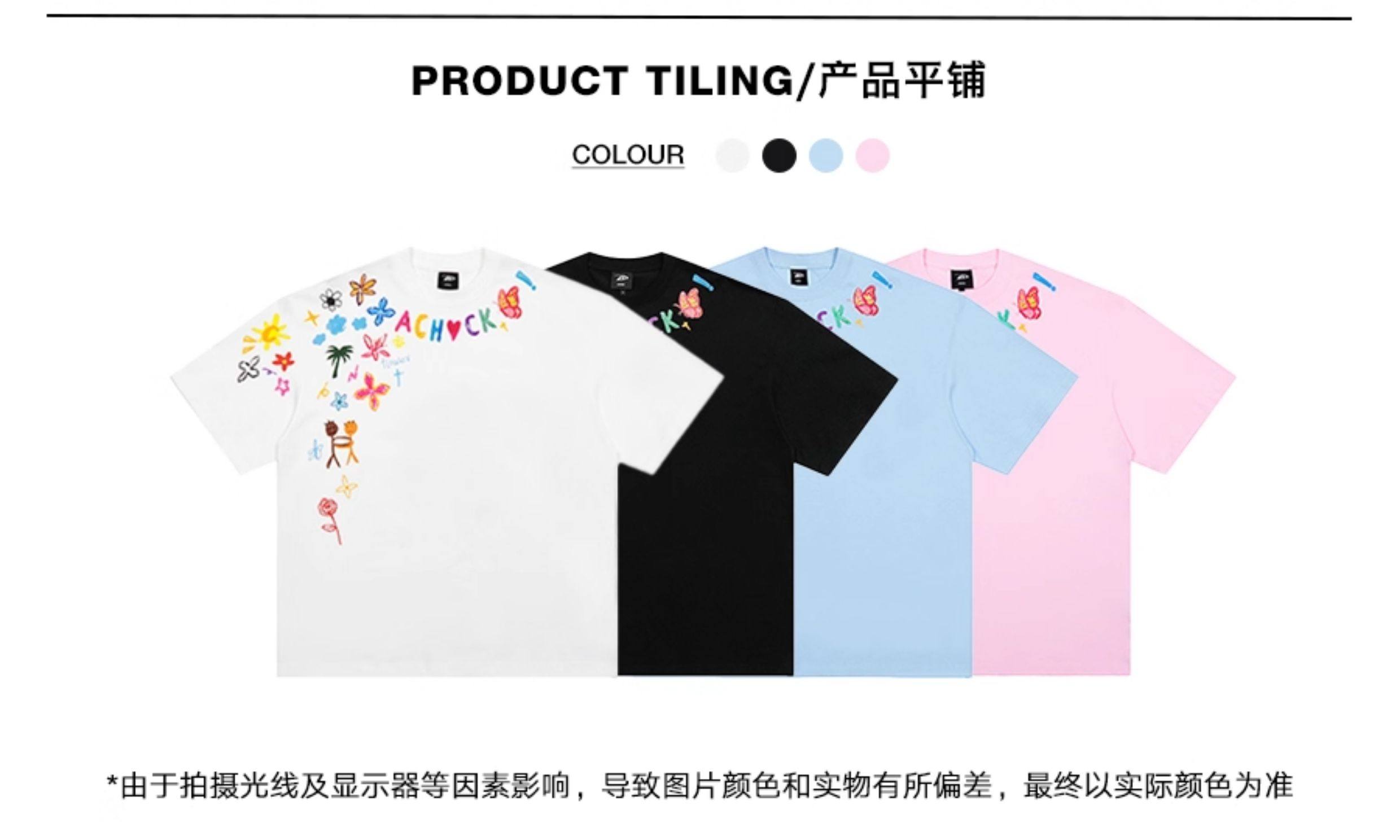 【Achock Official Store】Trendy Brand Creative Cartoon Graffiti Print Half-Sleeve T-Shirt High Street Couple Round Neck Short Sleeve