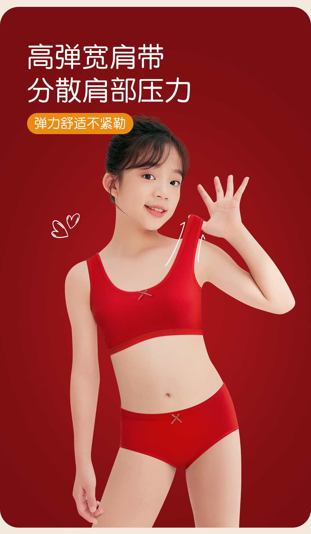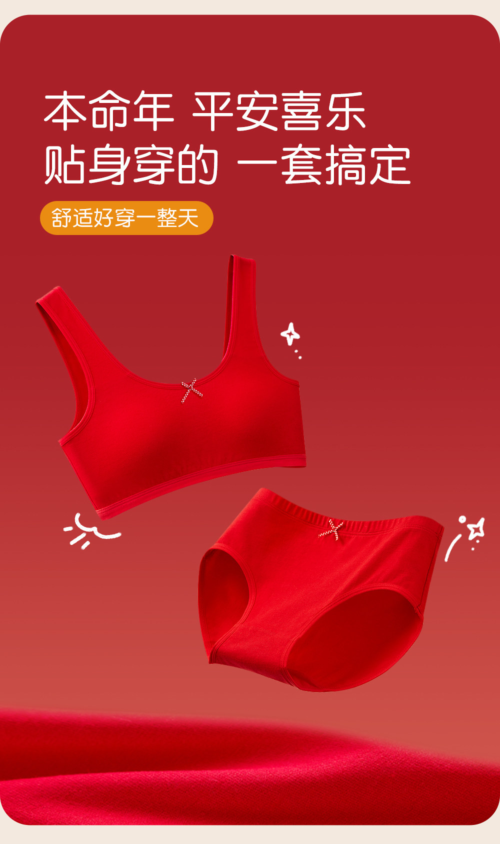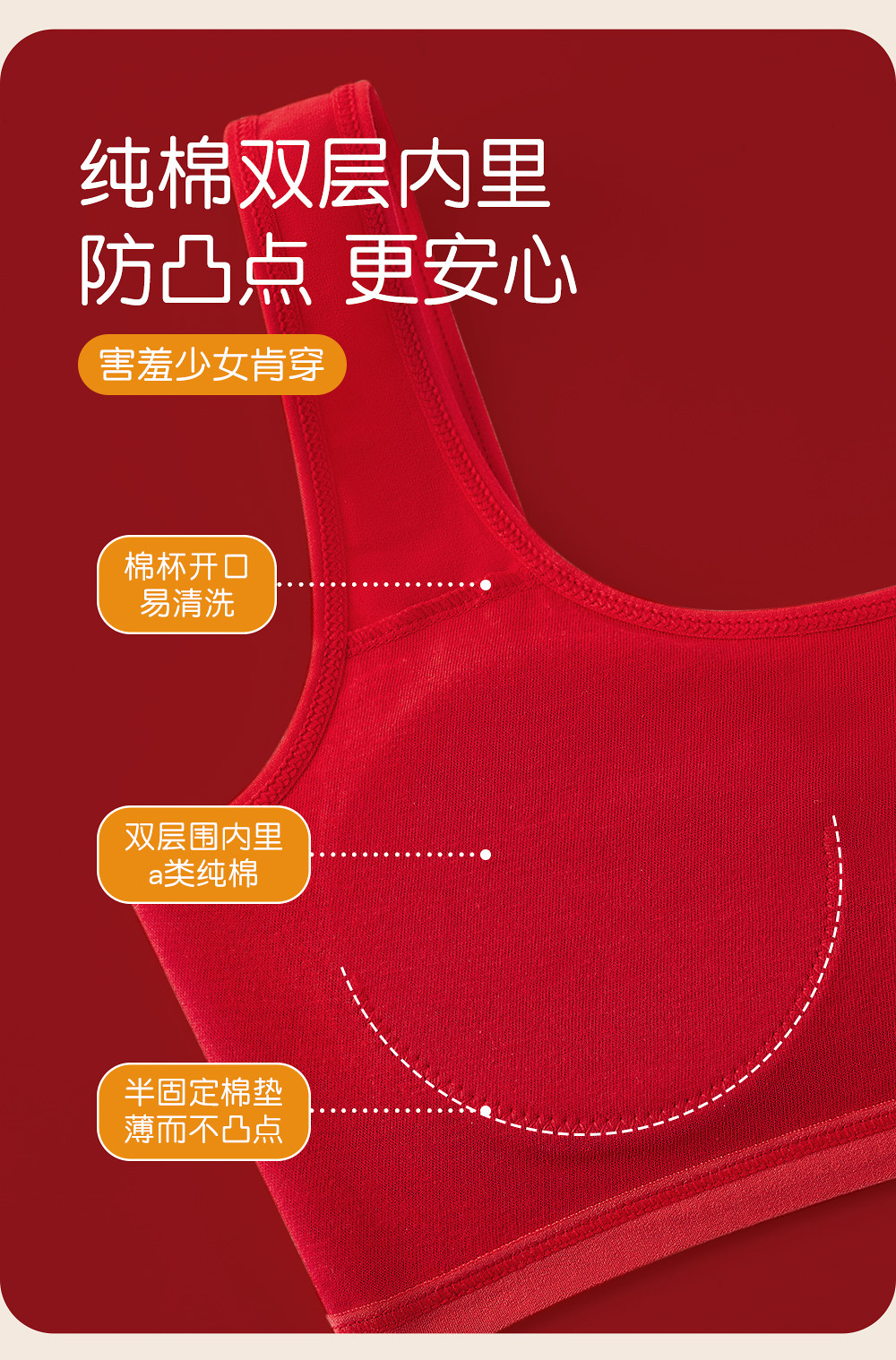 12-Year-Old Girl's Zodiac Year Underwear Set, Red Pure Cotton Student Bra, Year of the Horse 2025