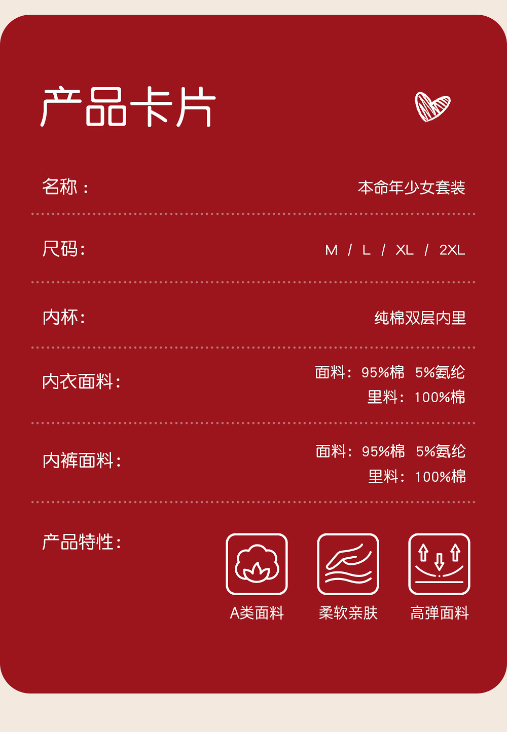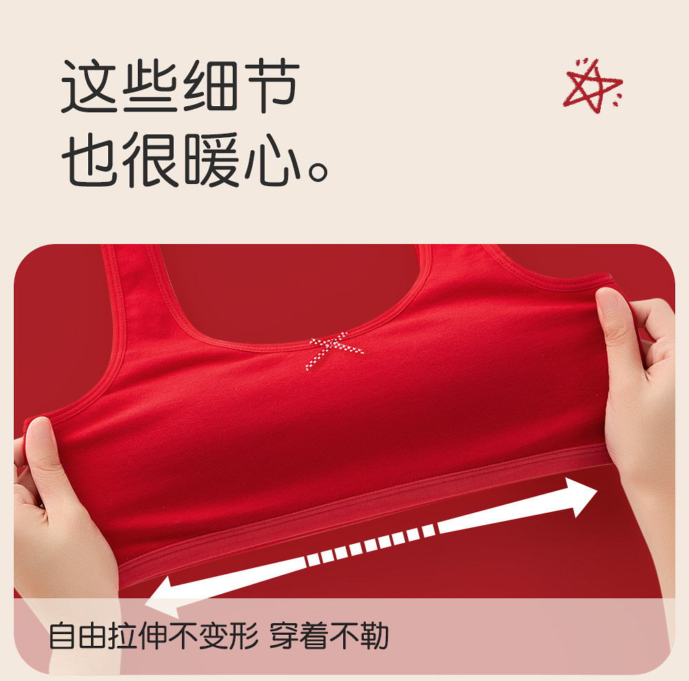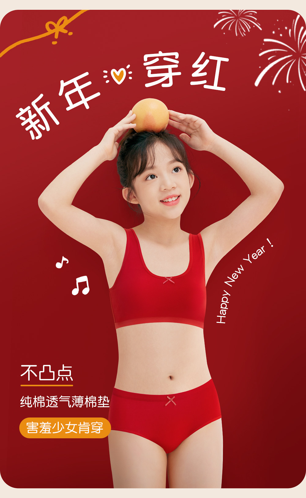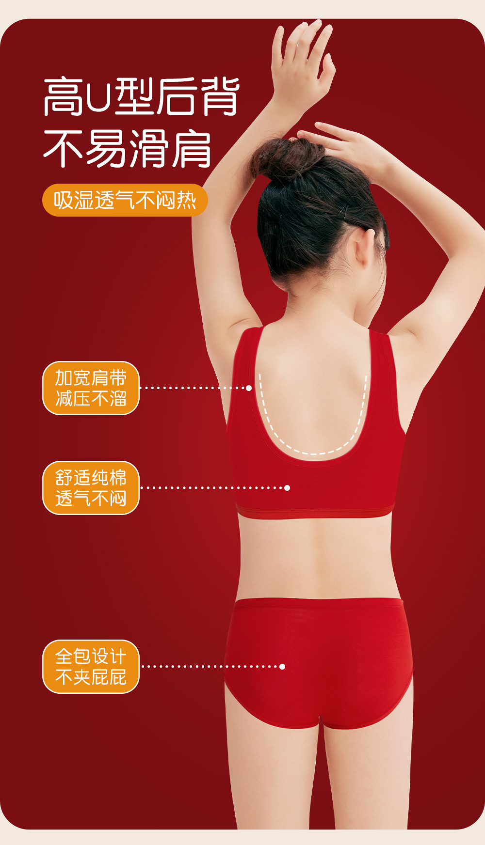 12-Year-Old Girl's Zodiac Year Underwear Set, Red Pure Cotton Student Bra, Year of the Horse 2025