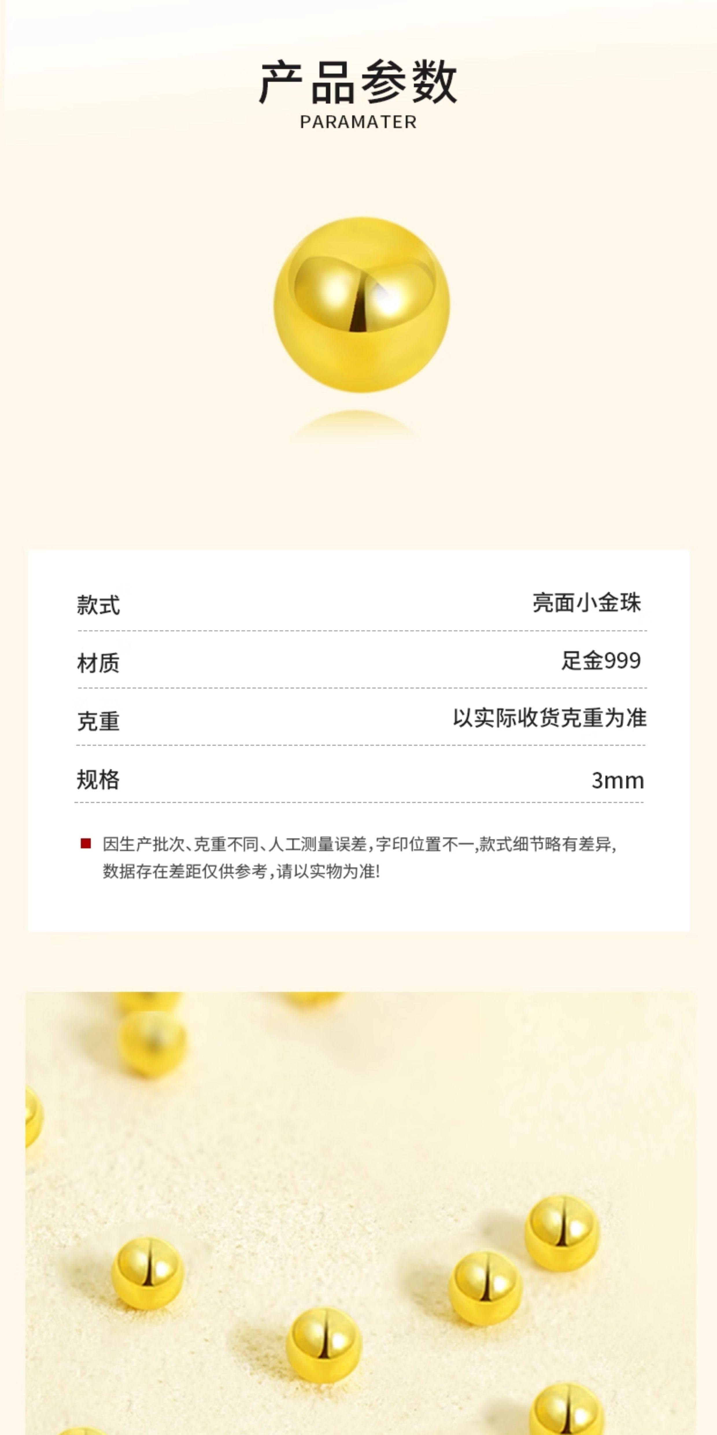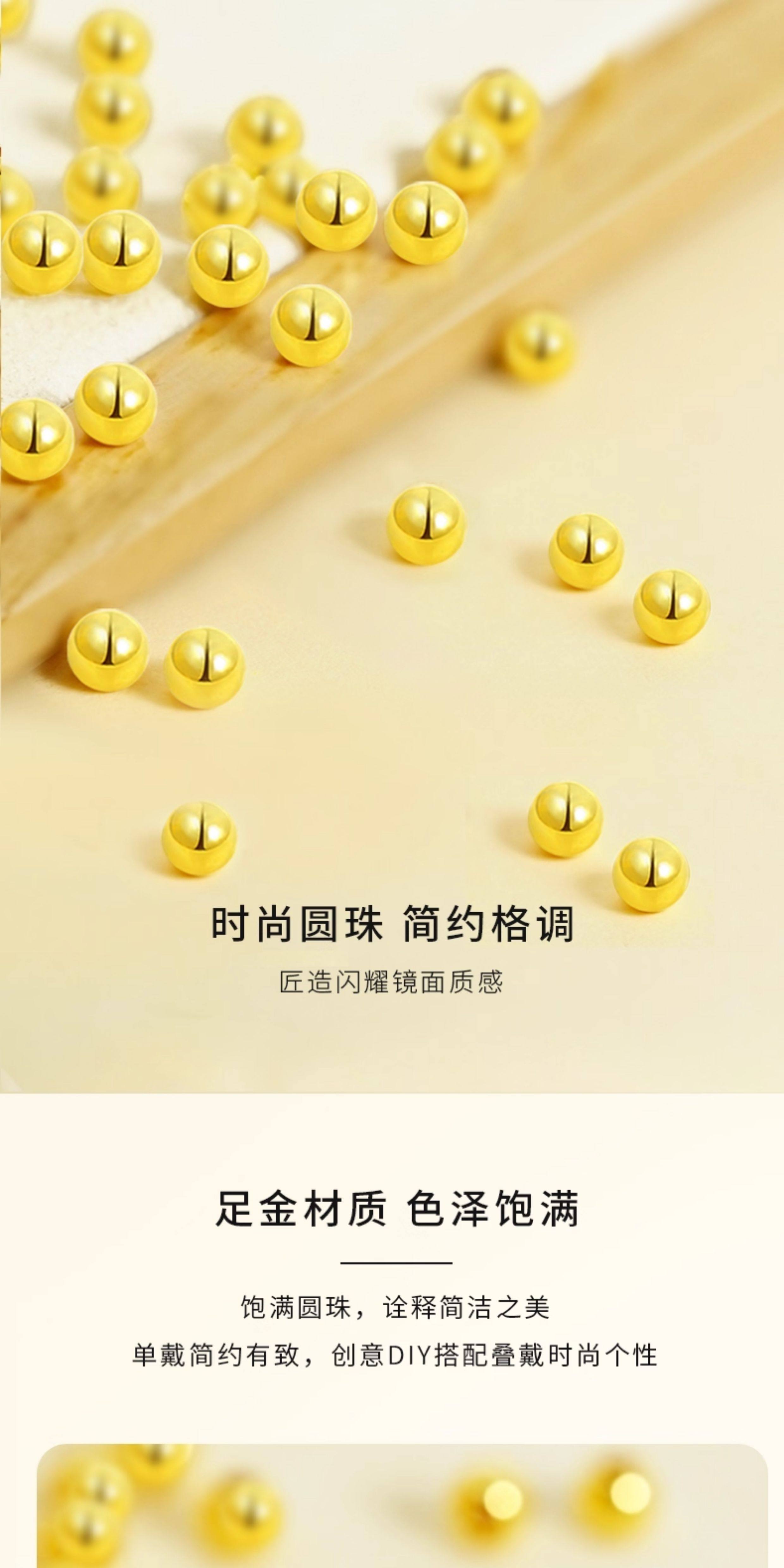 【Wuhuang Laojin】Gold Small Beads DIY Spacer Beads Fortune Beads for Women 999 Pure Gold Loose Beads
