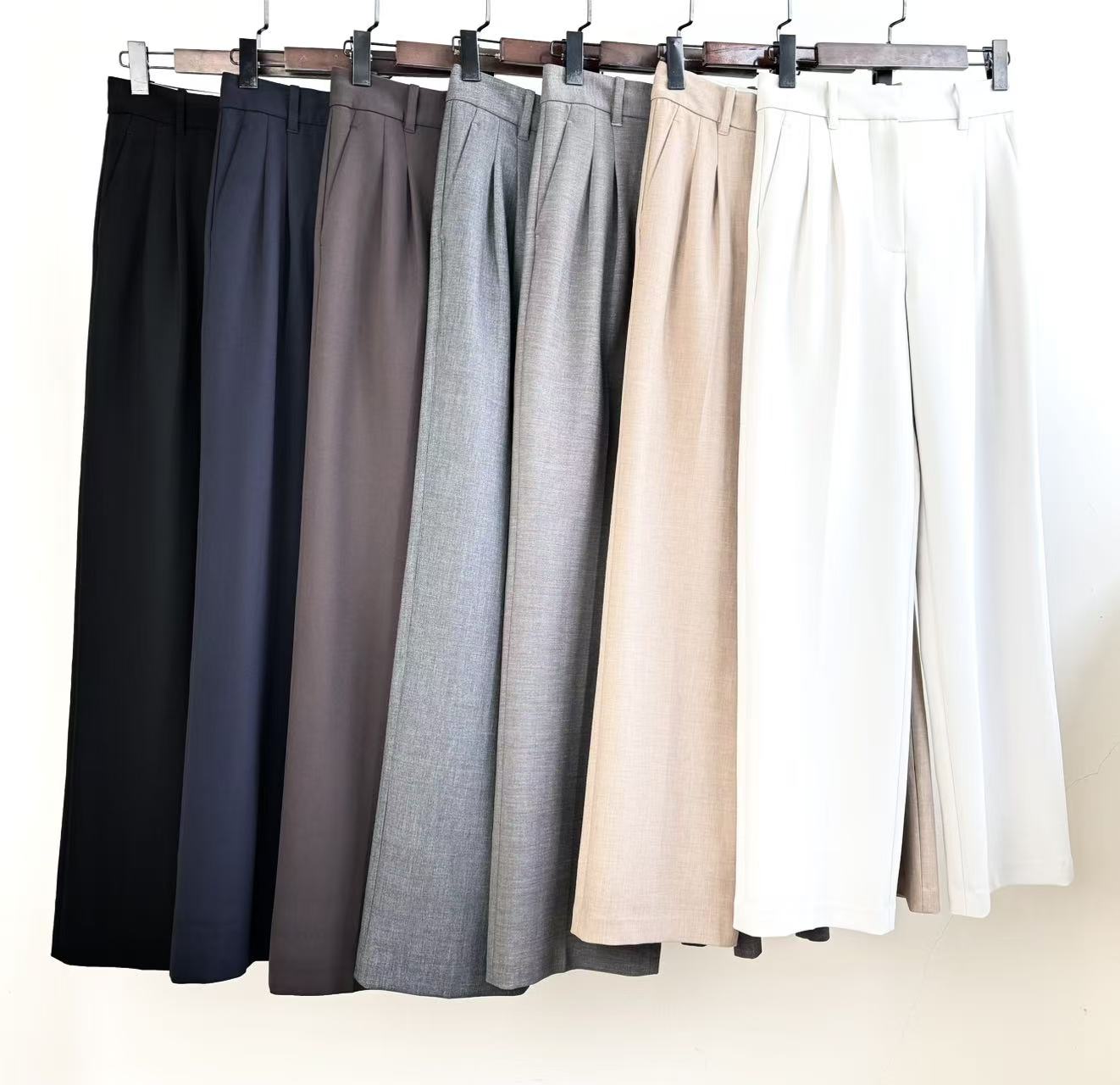 A~Z 7-Color Pleated Straight High-Waisted Wide-Leg Pants