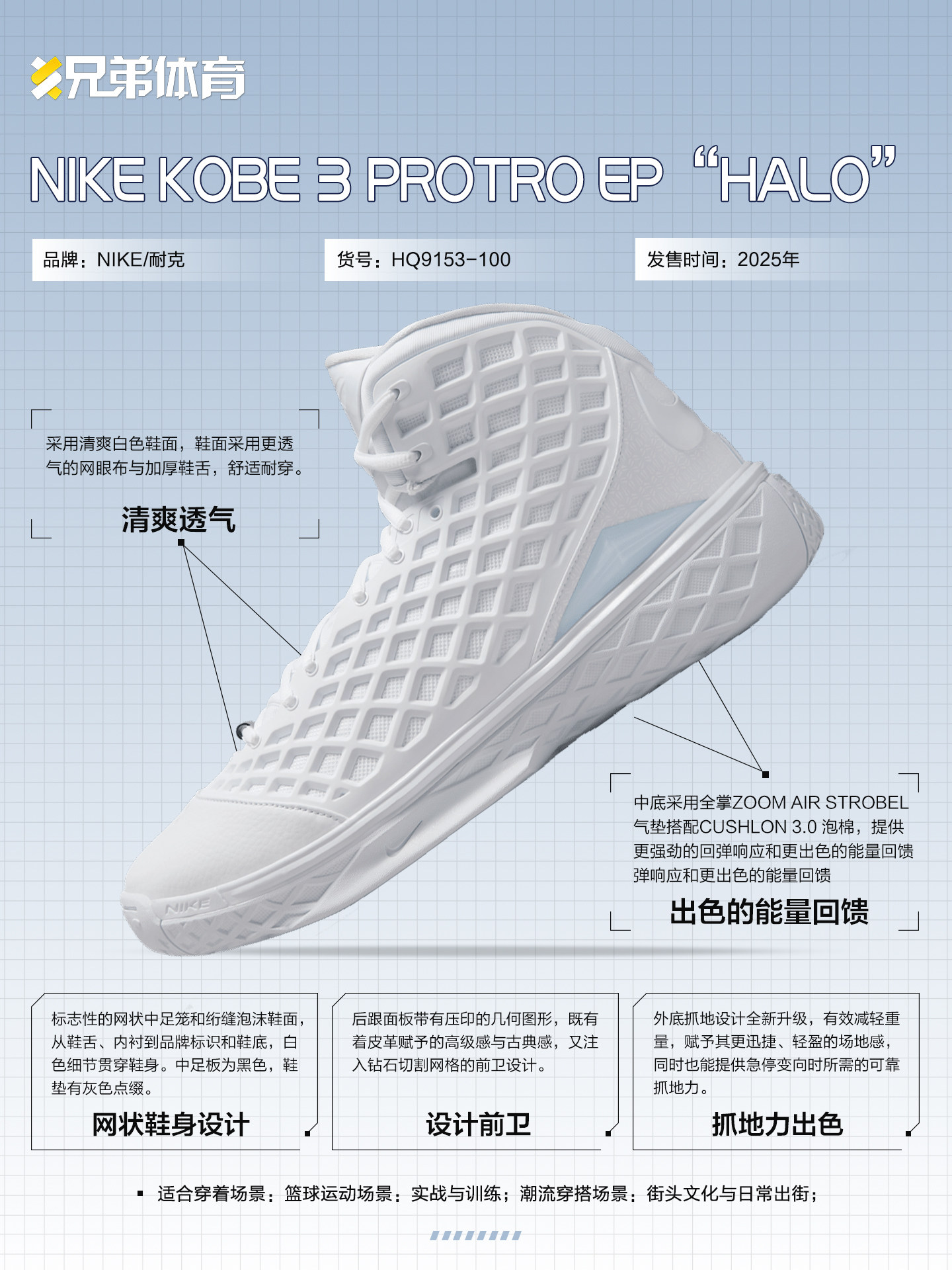 Brother Sports Nike Zoom Kobe 3 Protro Kobe 3 White Retro Basketball Shoes Hq9153-100