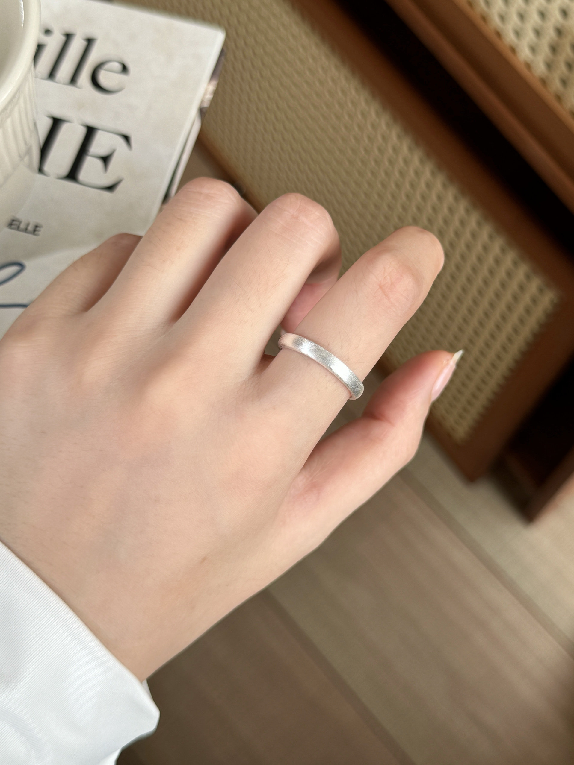 All-Over 999 Pure Silver Satin Glossy Brushed Small Light Bulb Adjustable Open Ring