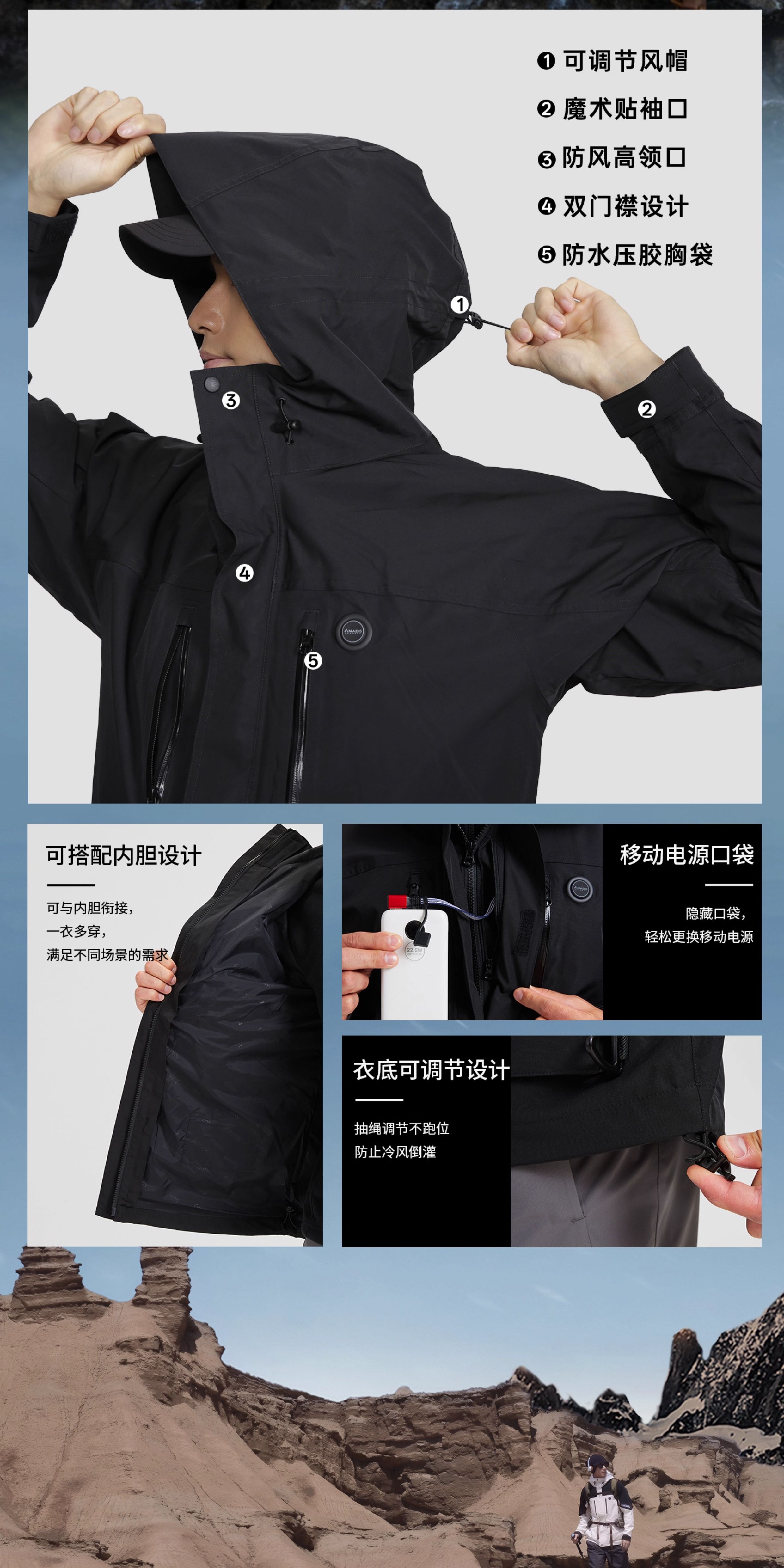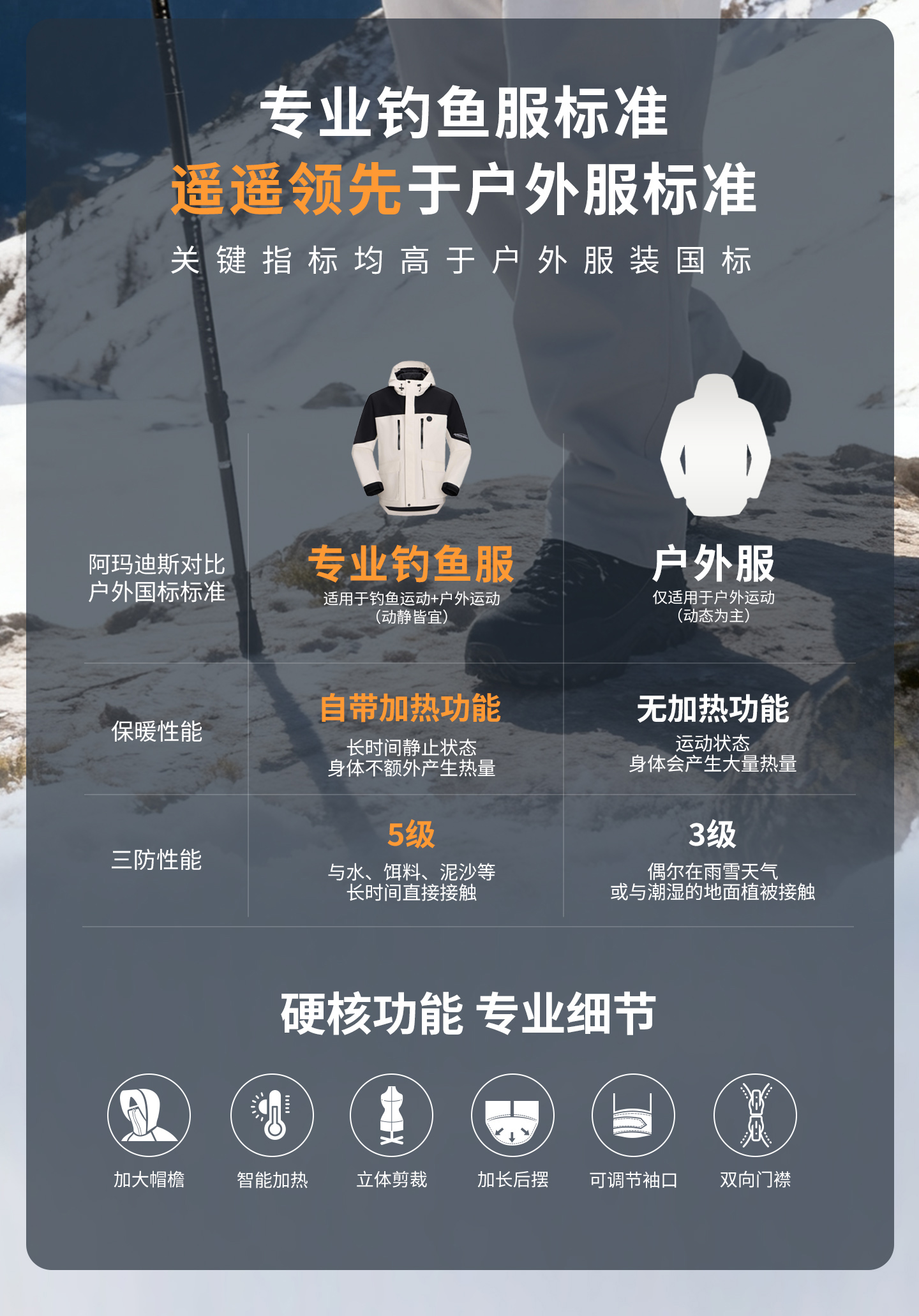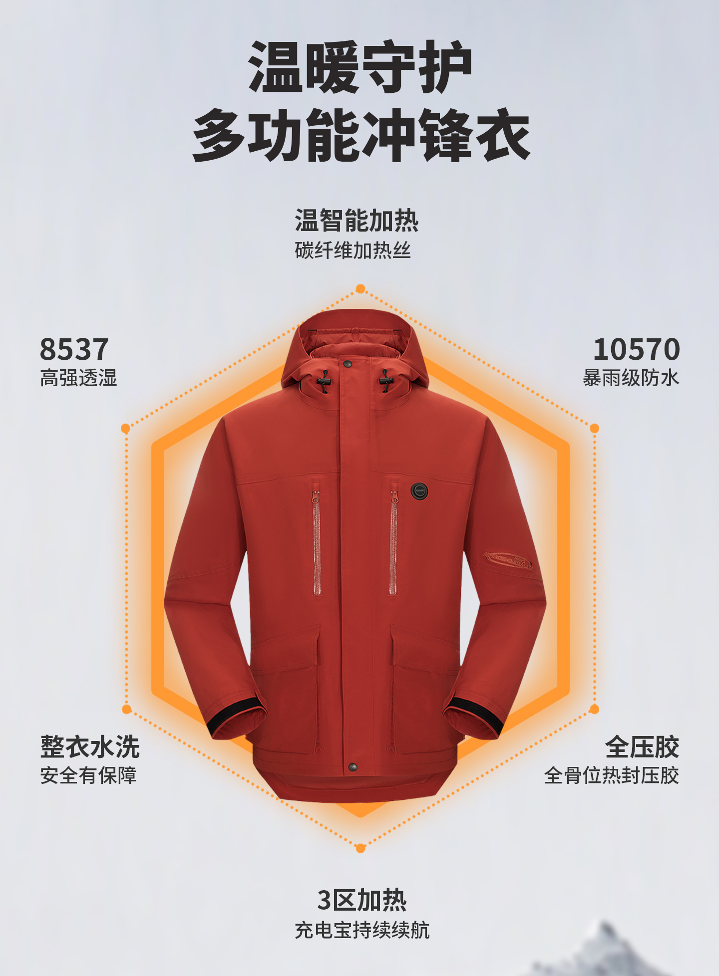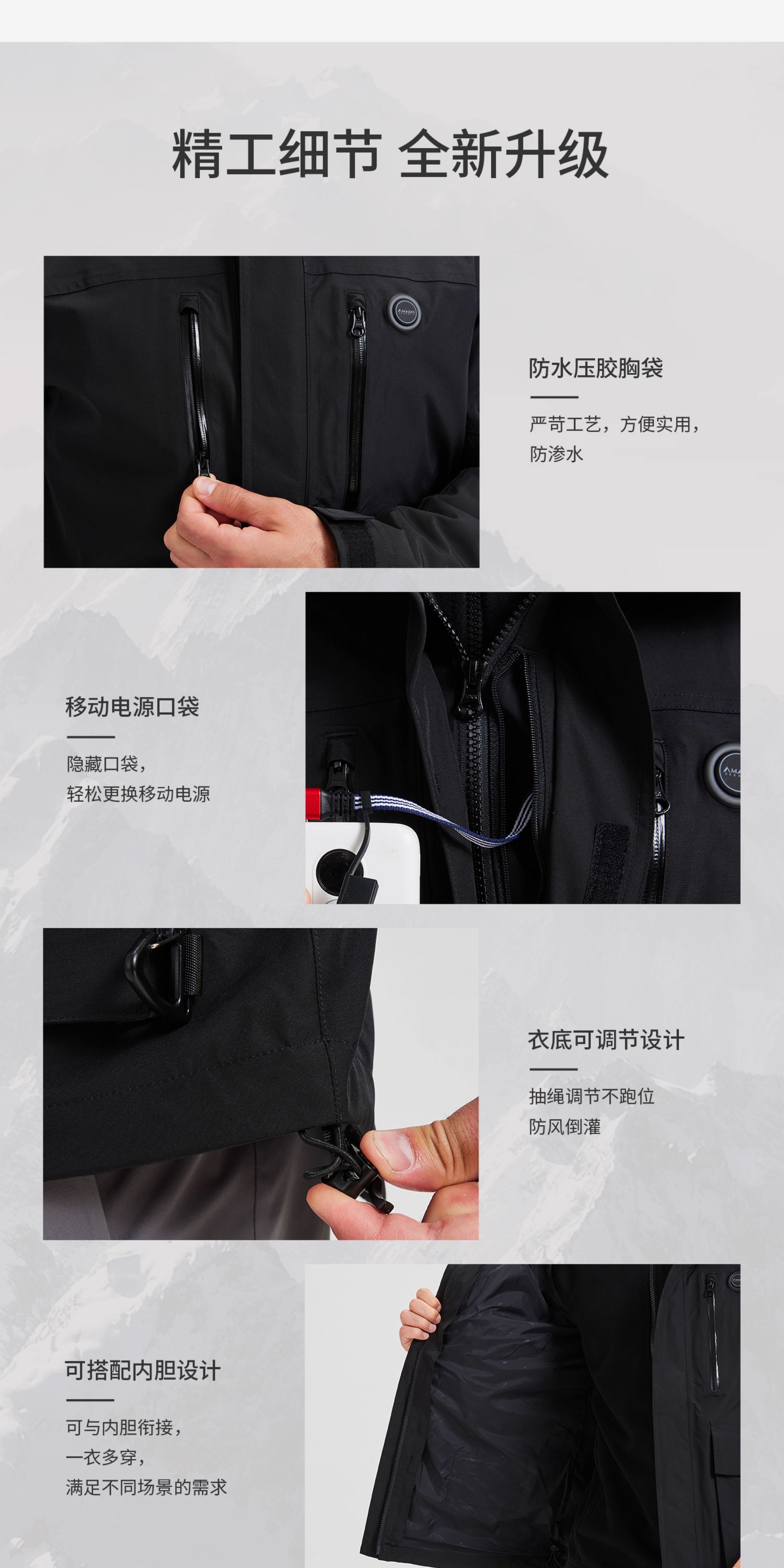 Amadeus Heated Jacket for Men, Autumn and Winter Three-In-One Fishing Jacket, Windproof, Waterproof, Fleece-Lined and Thickened Coat