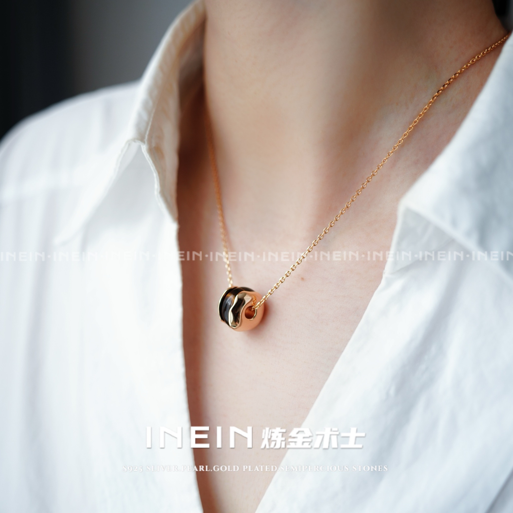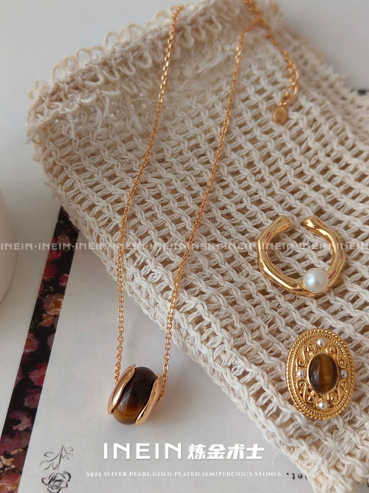 [Inein Alchemy] French Tiger Eye Stone S925 Sterling Silver Passepartout Easiest for Match Necklace 2024 Design New