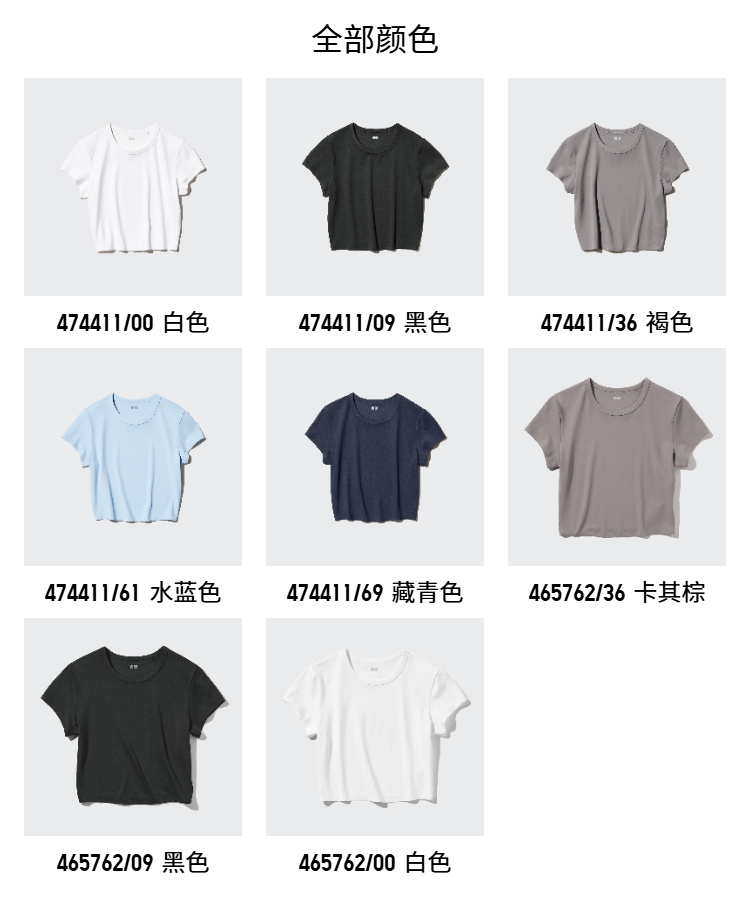 Uniqlo Women's Airism High-Elasticity Short T-Shirt Short-Sleeved Hot Girl Style 474411 465762
