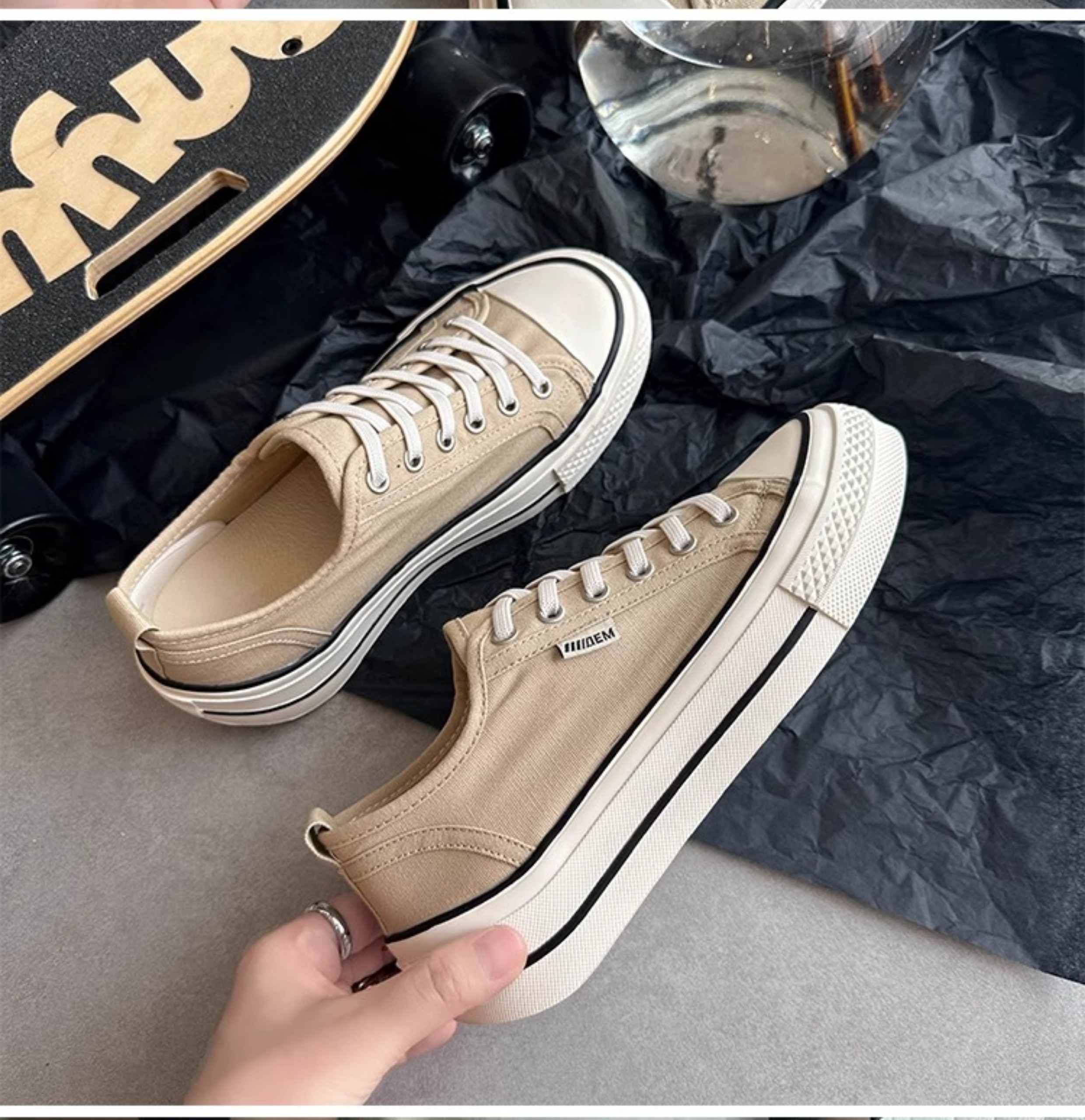 Hong Kong Thick-Soled Breathable Round-Toe Canvas Shoes for Women 2025 New Korean Style Sports Casual Slip-On Sneakers White Shoes
