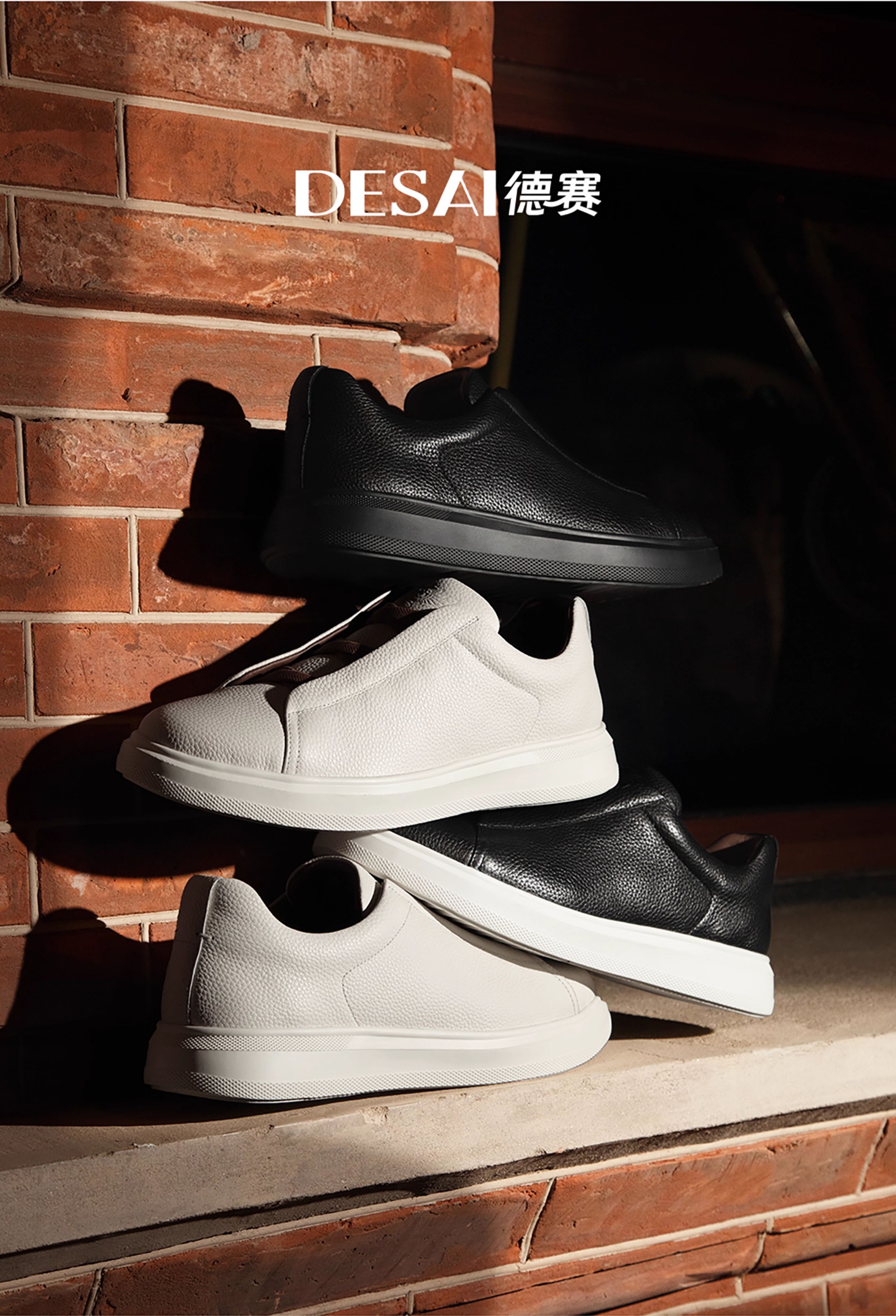 [Same Style as the Billion-Dollar Boss] Desai's New Autumn and Winter Genuine Leather Walking Shoes for Men, Fleece-Lined, Slip-On Casual Shoes
