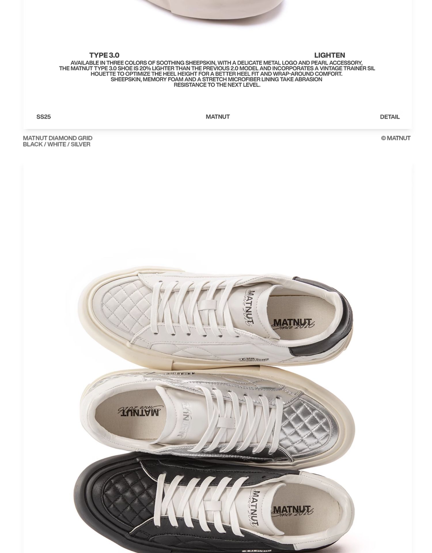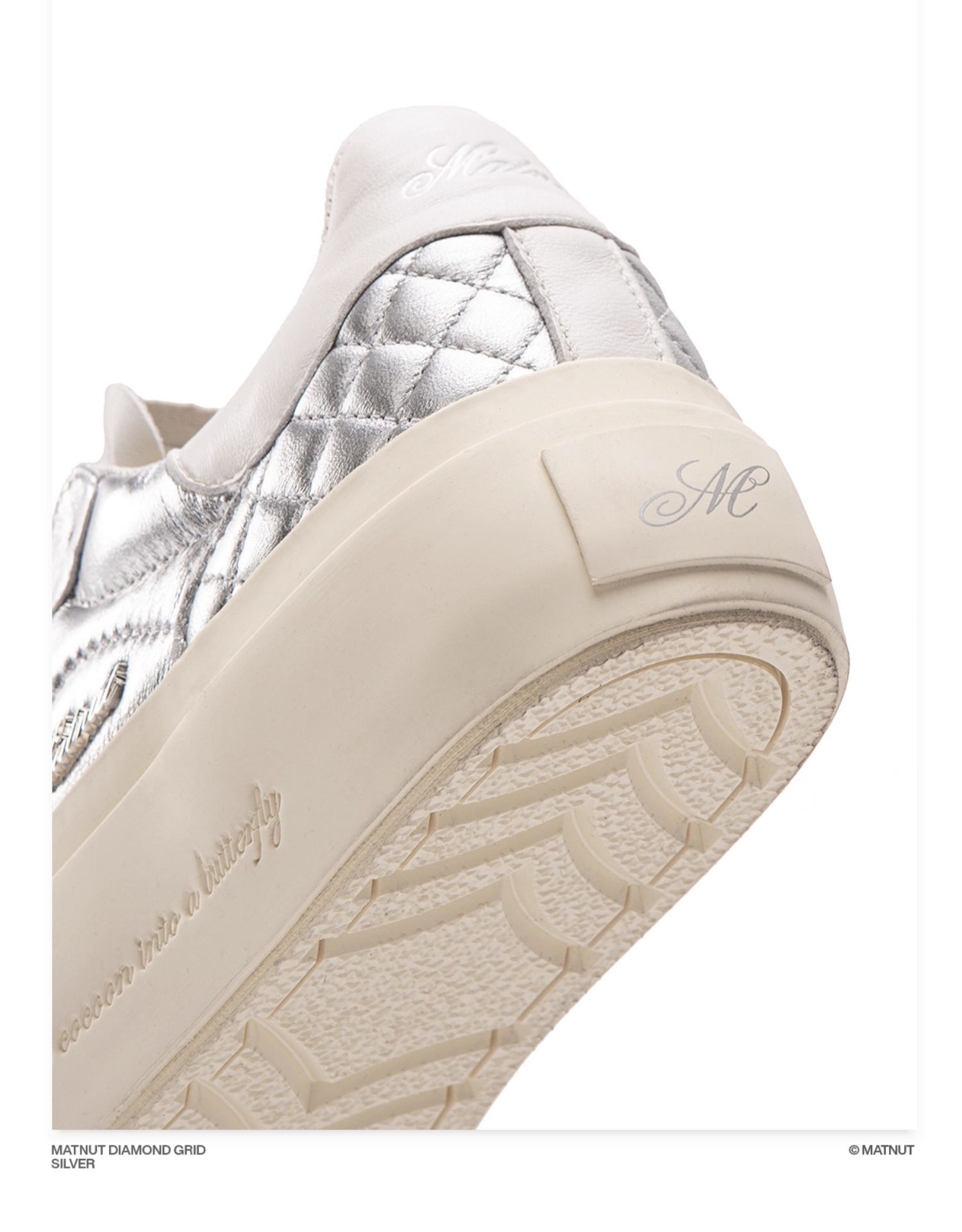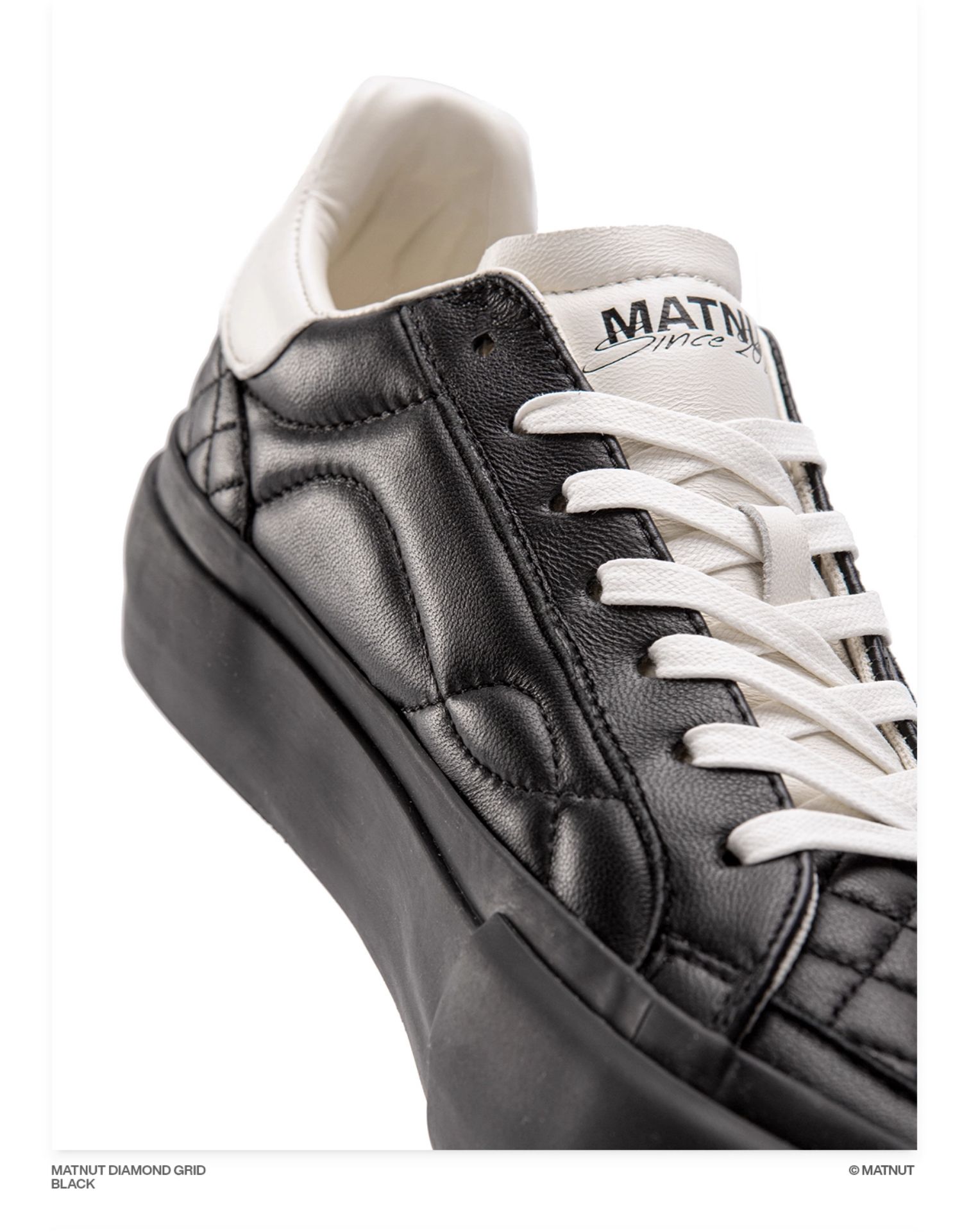 Matnut Type 3.0 Diamond Pattern Series Soft Sheepskin Black White Silver Thick-Soled Height-Increasing Sneakers