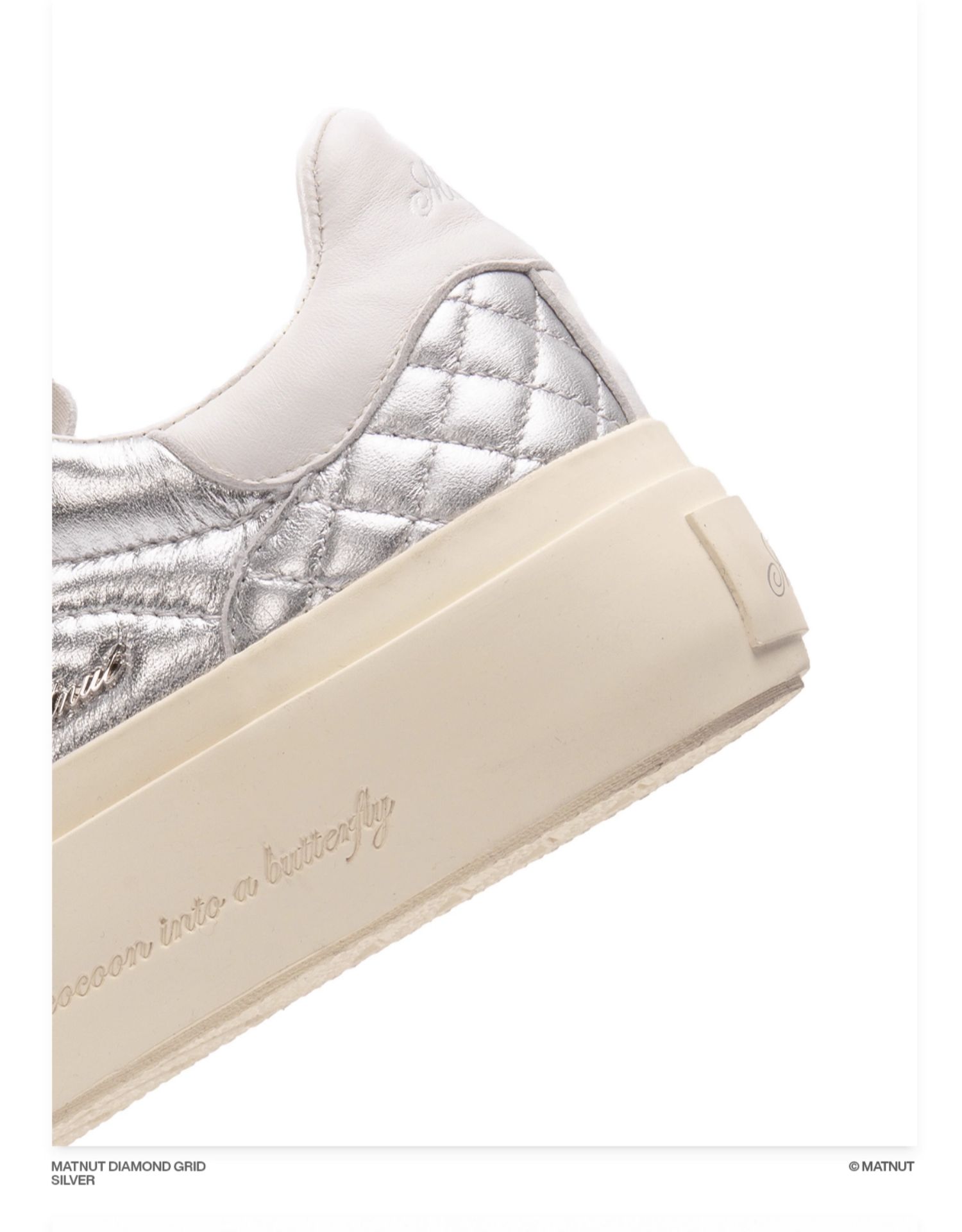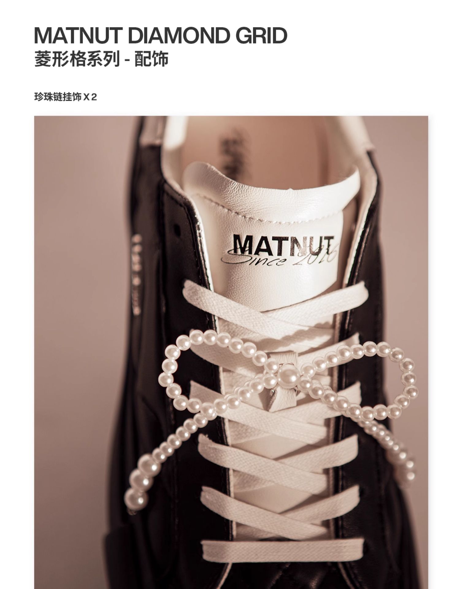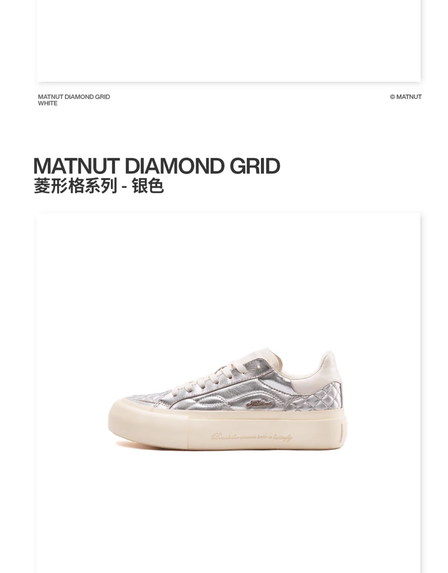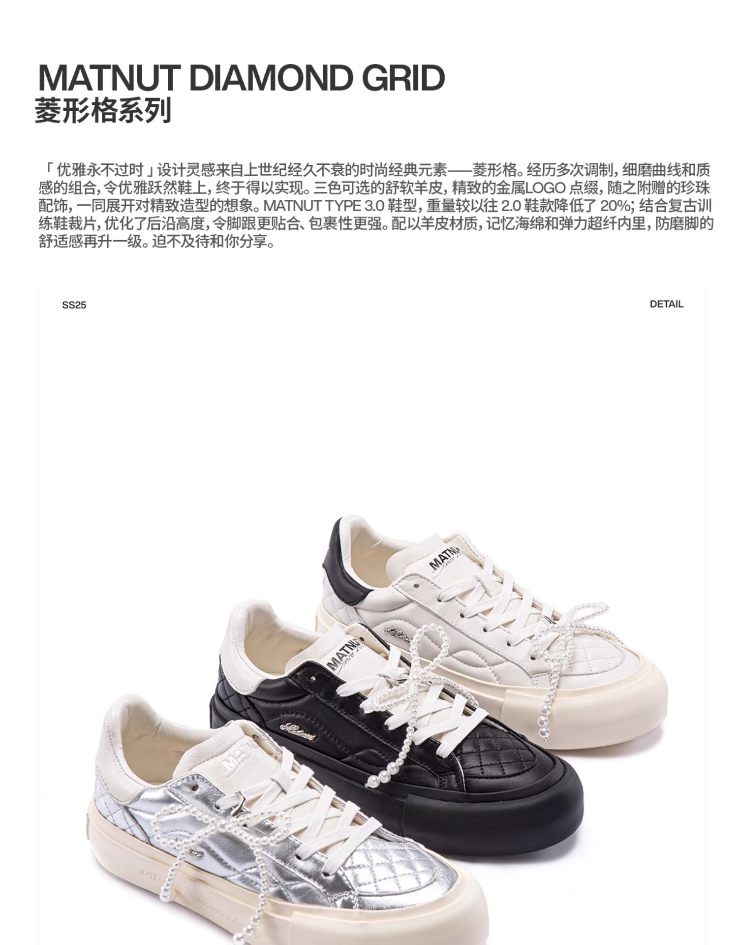 Matnut Type 3.0 Diamond Pattern Series Soft Sheepskin Black White Silver Thick-Soled Height-Increasing Sneakers