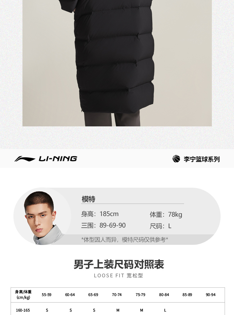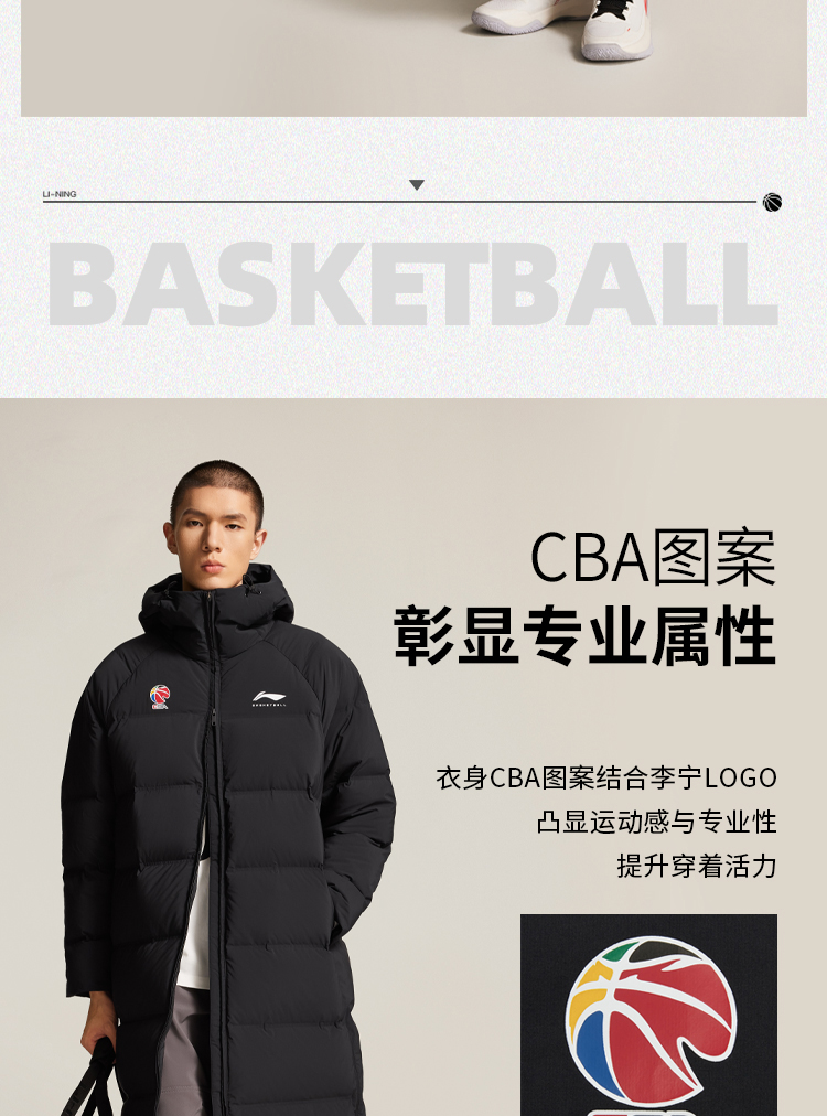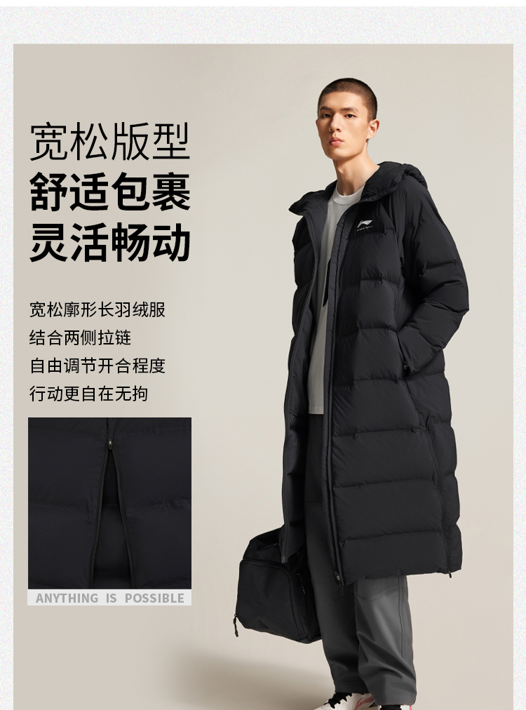 Li-Ning Men's down Jacket 2025 New Winter Water-Repellent Coat Cold-Proof Hooded Long Warm Top Sportswear