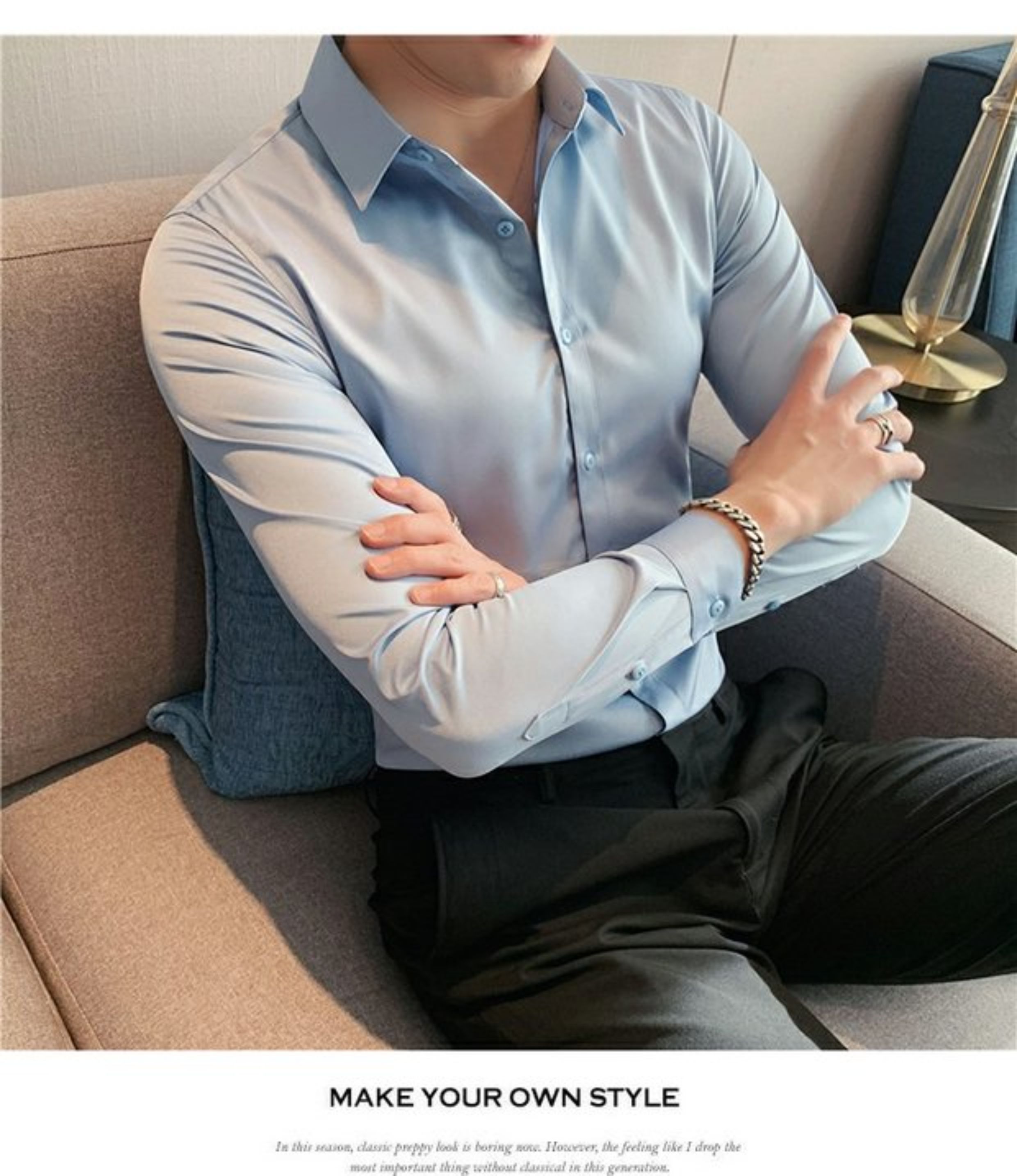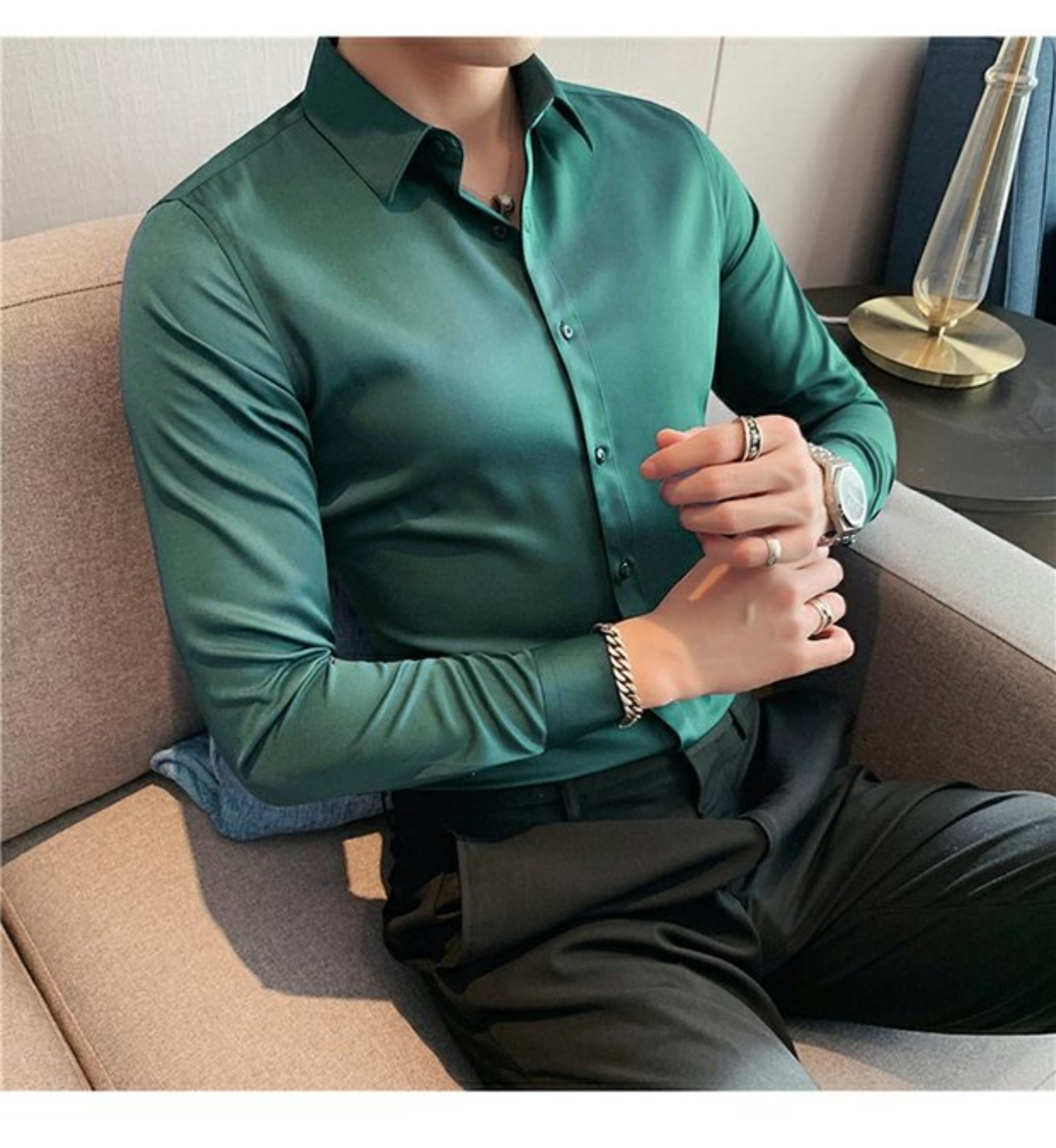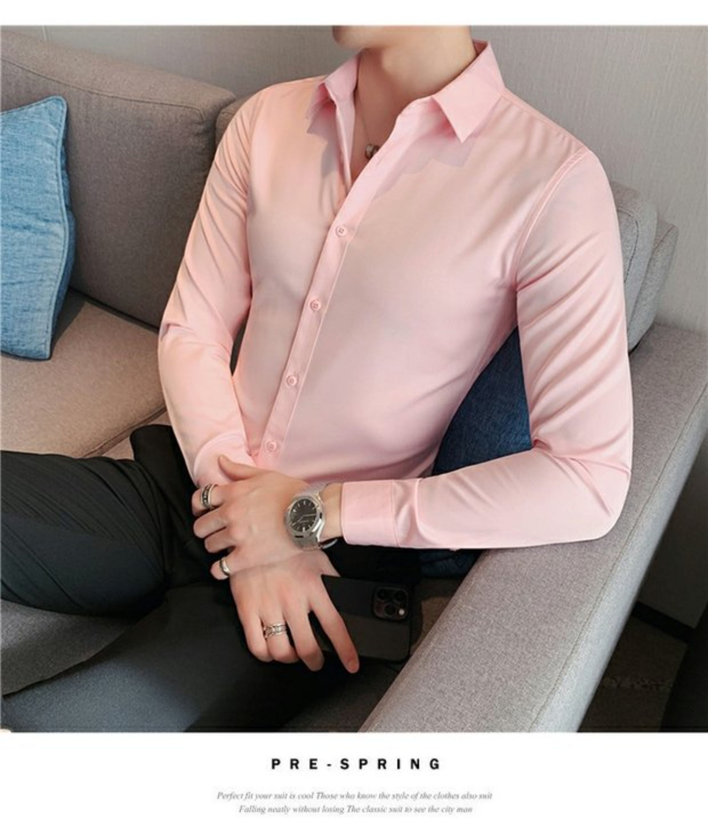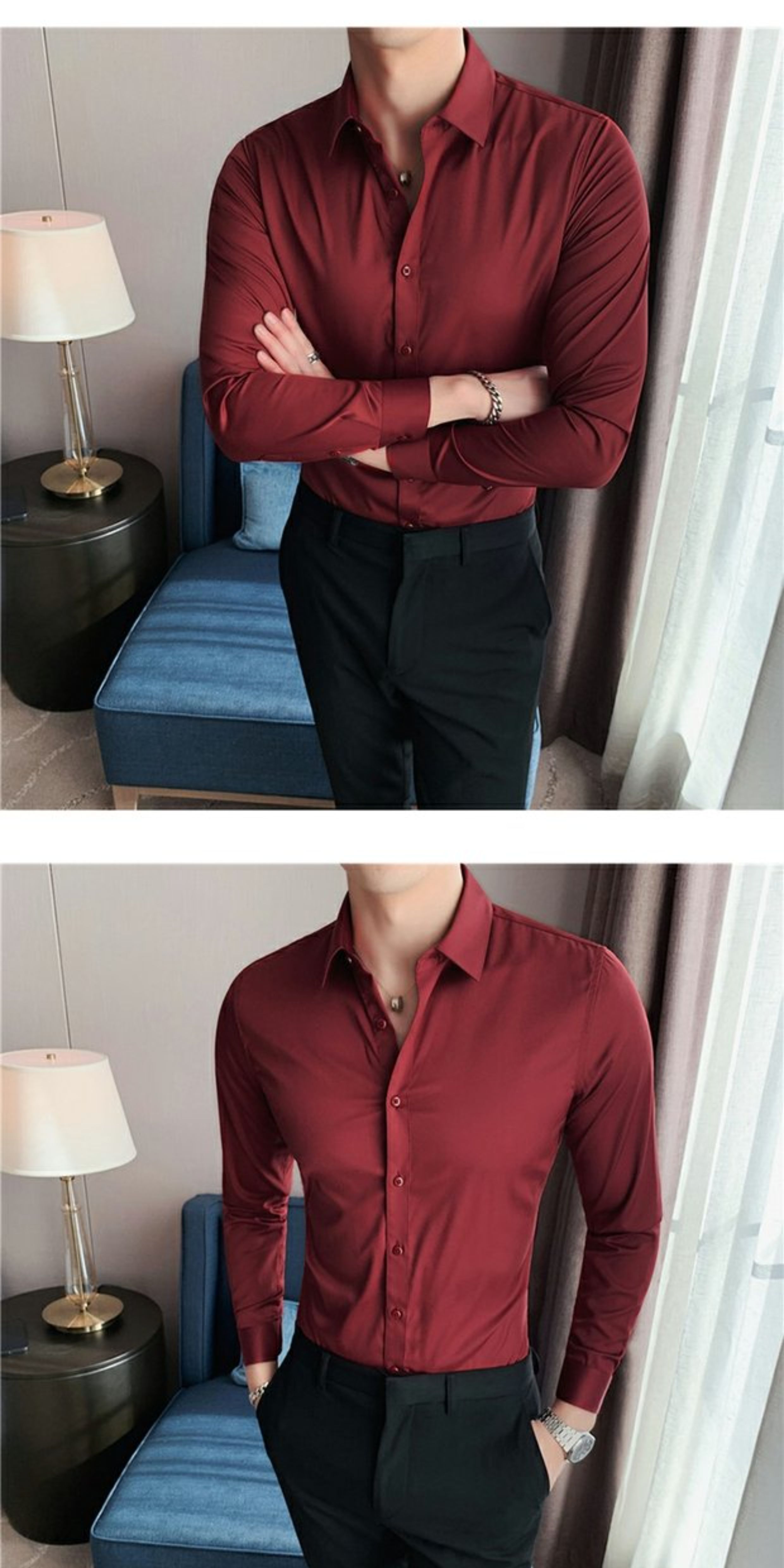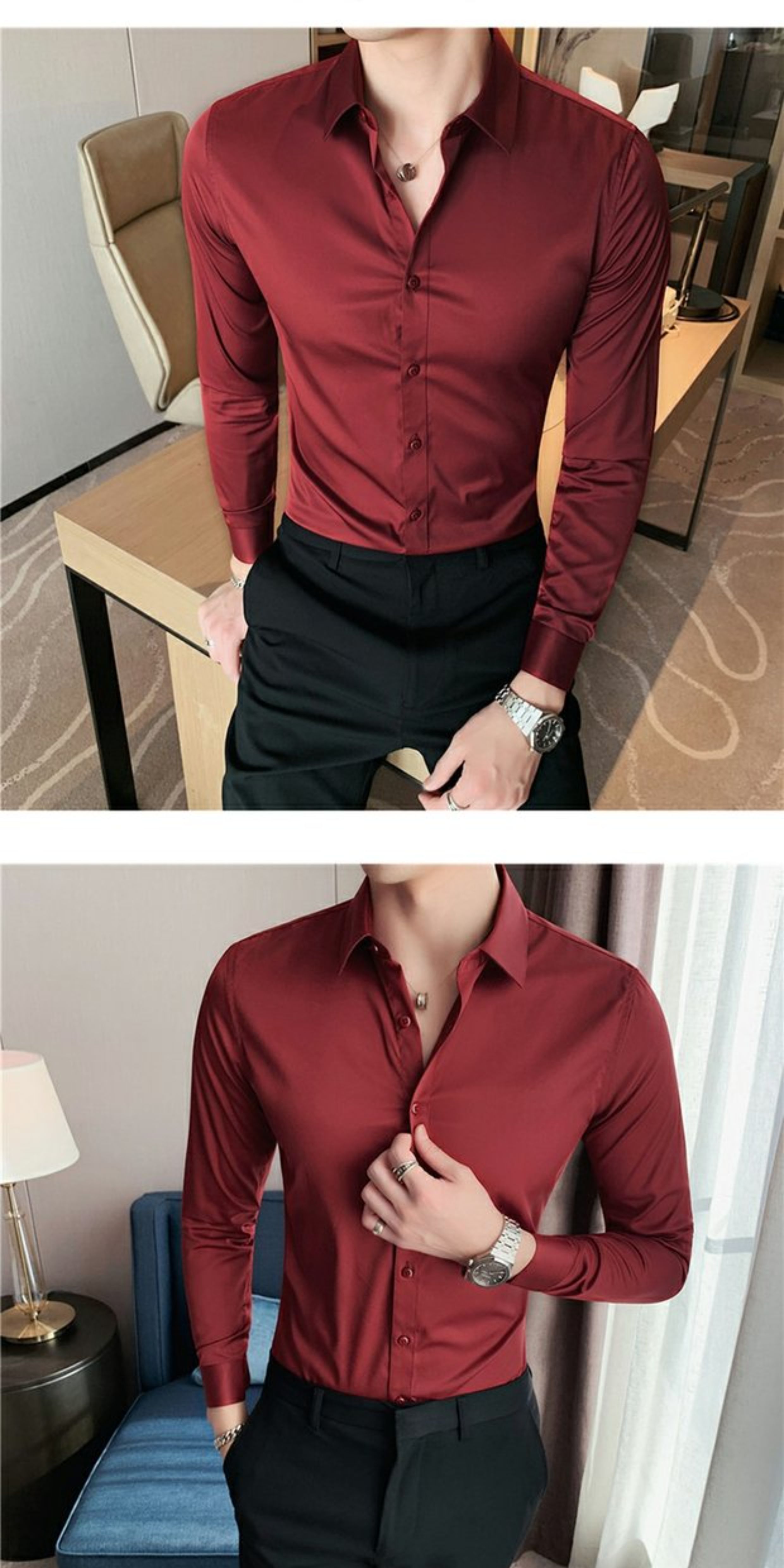 High-End, Cool Gray Long-Sleeved Suit Shirt for Men, Stretchy Inner Layer, Slim-Fit Business Style, Fleece-Lined Black Base Shirt