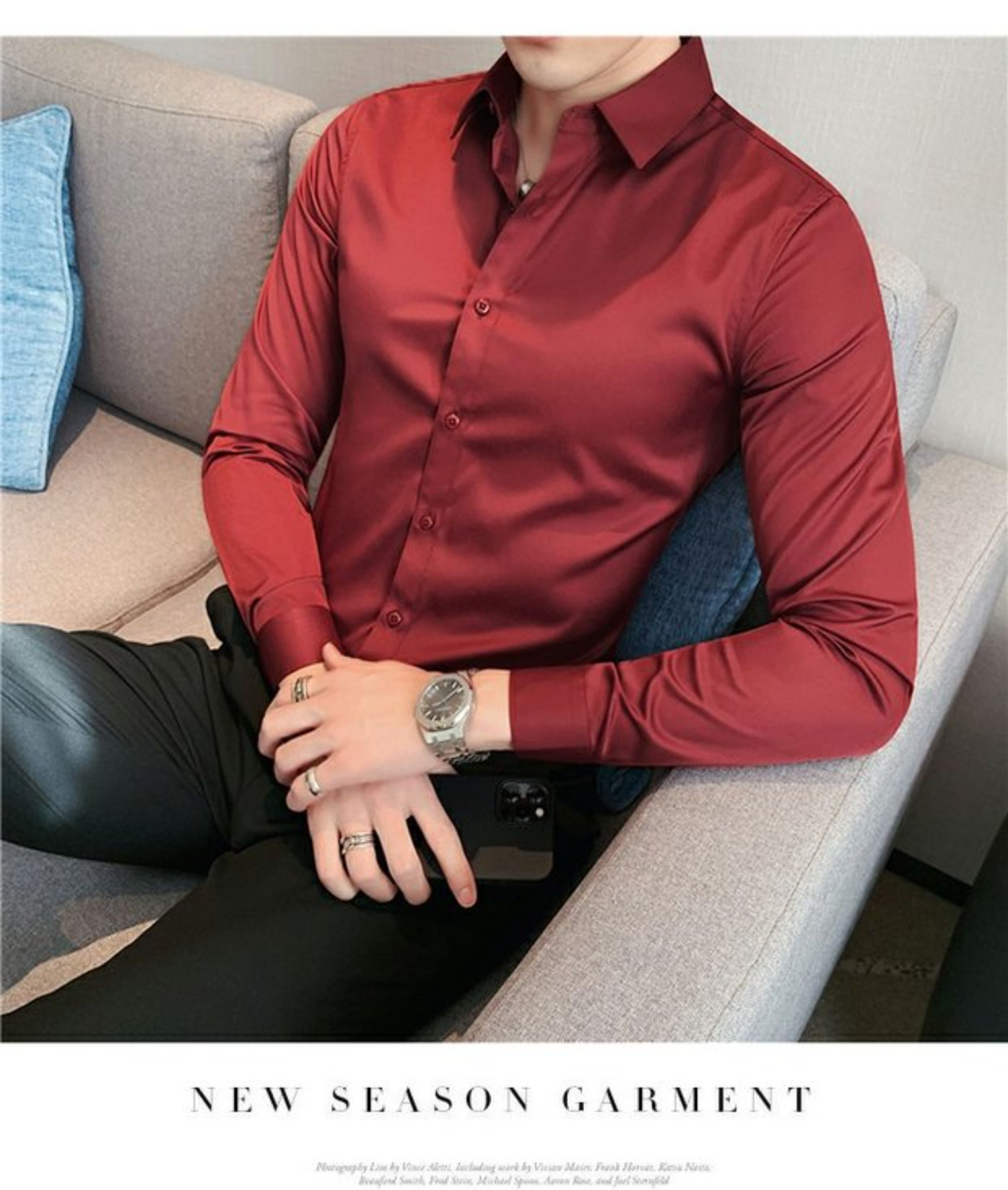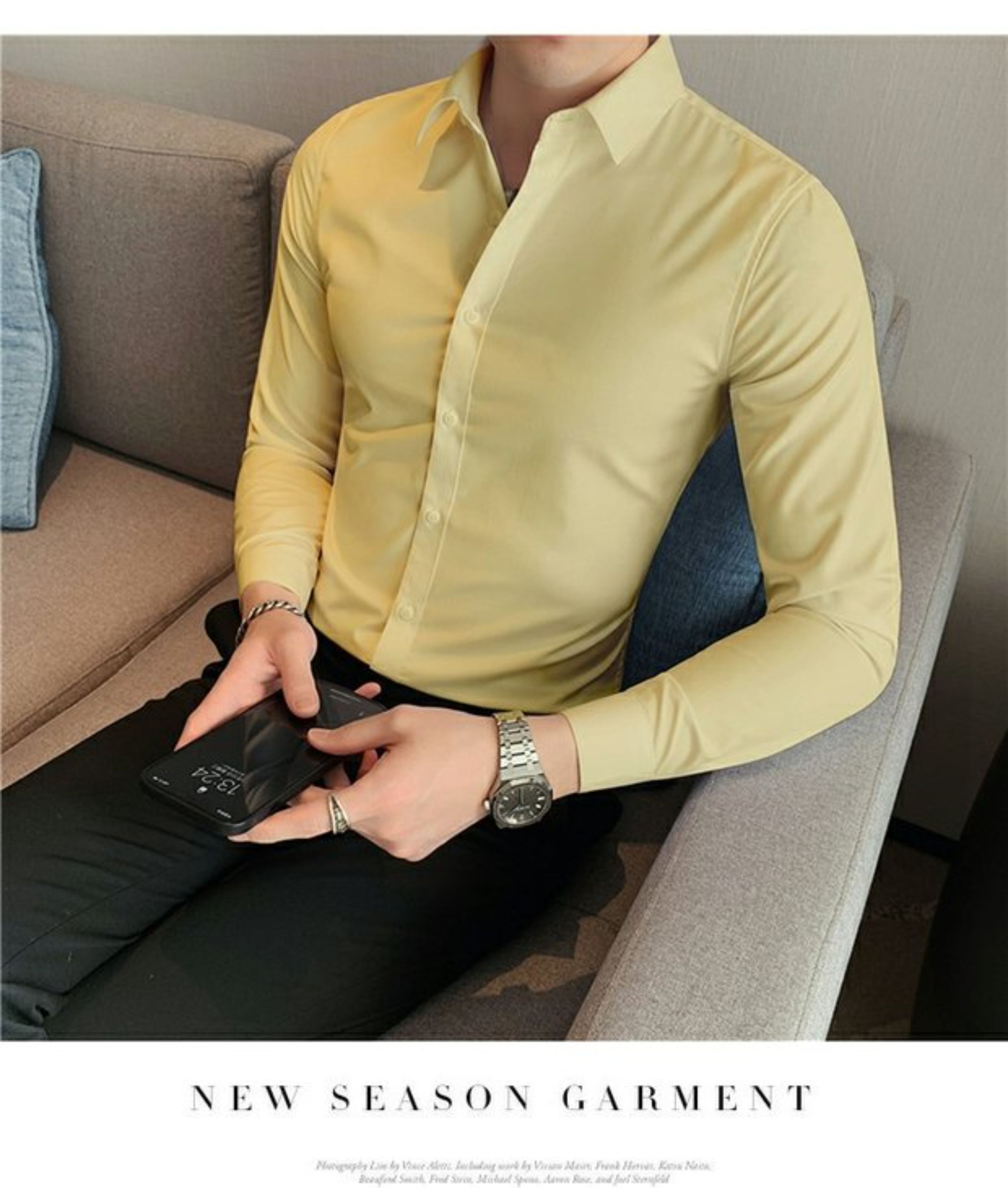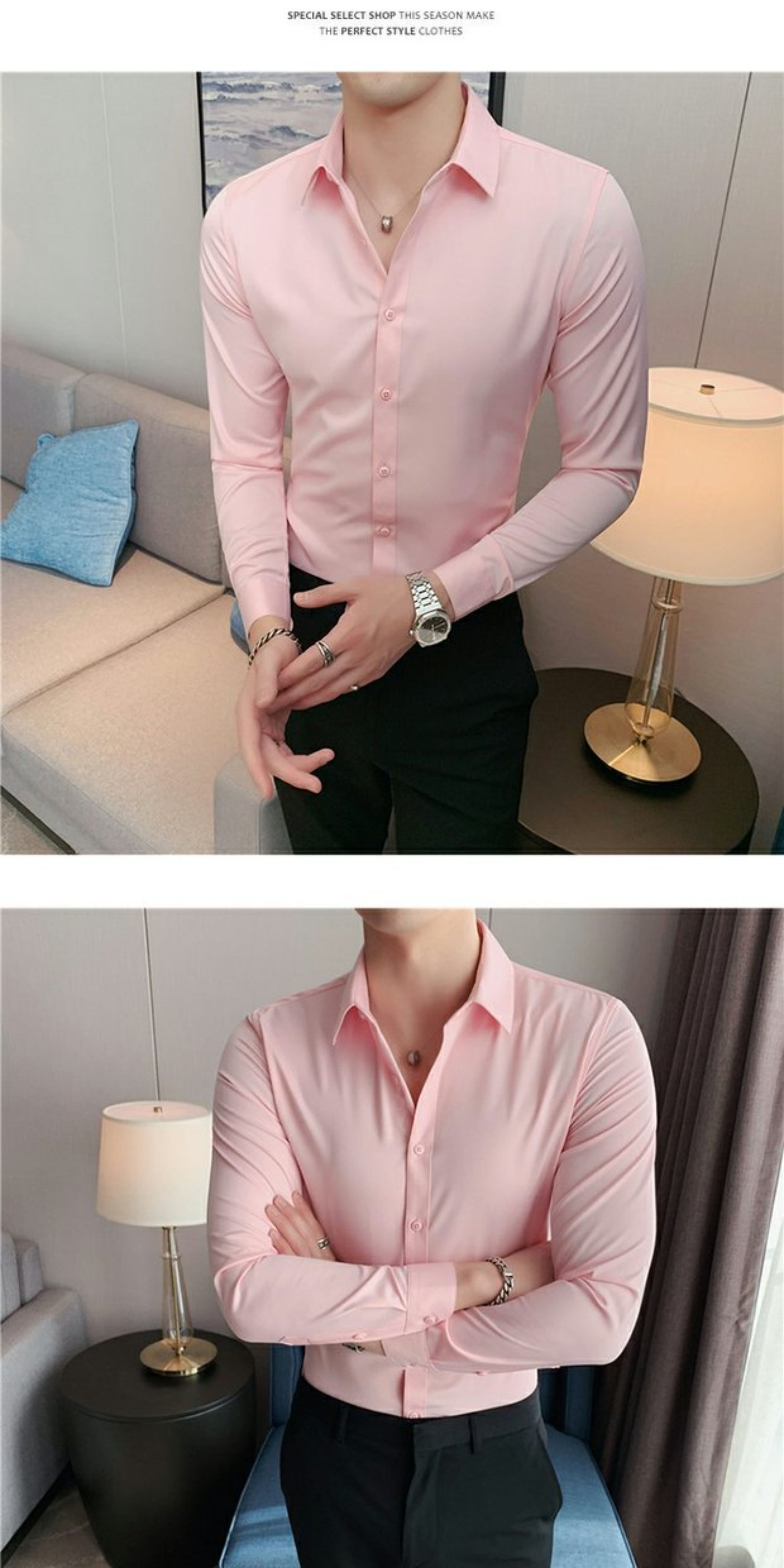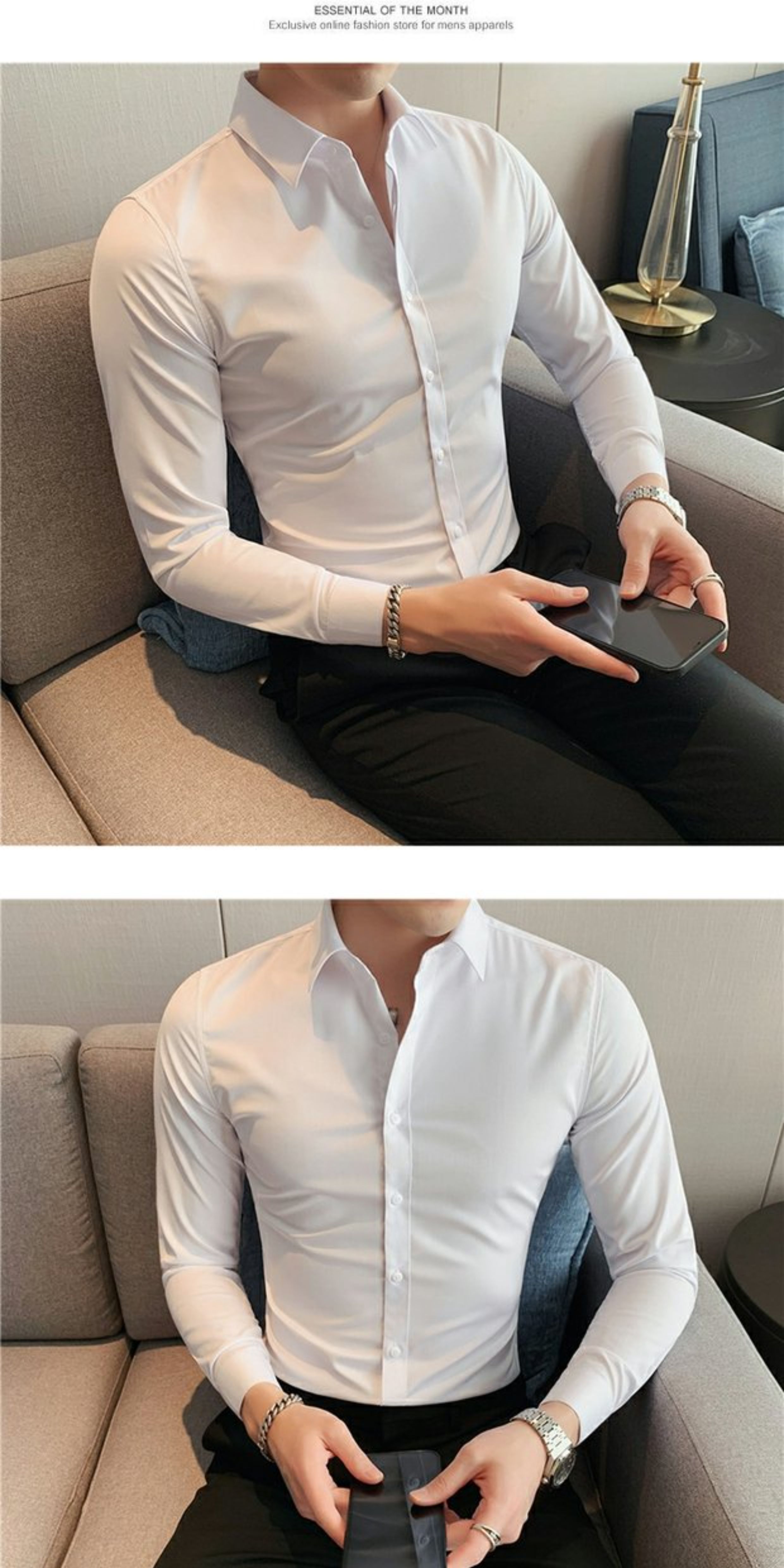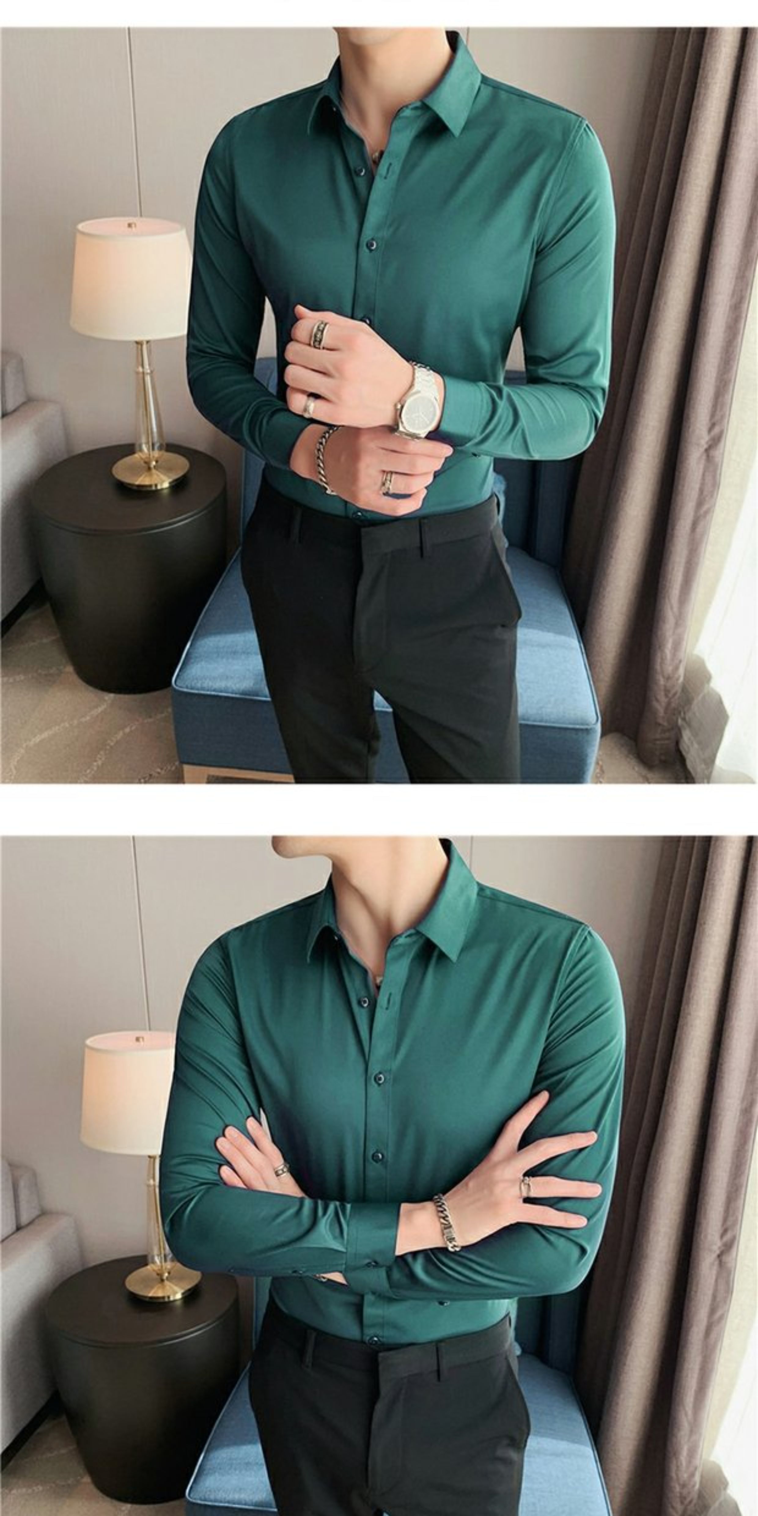 High-End, Cool Gray Long-Sleeved Suit Shirt for Men, Stretchy Inner Layer, Slim-Fit Business Style, Fleece-Lined Black Base Shirt