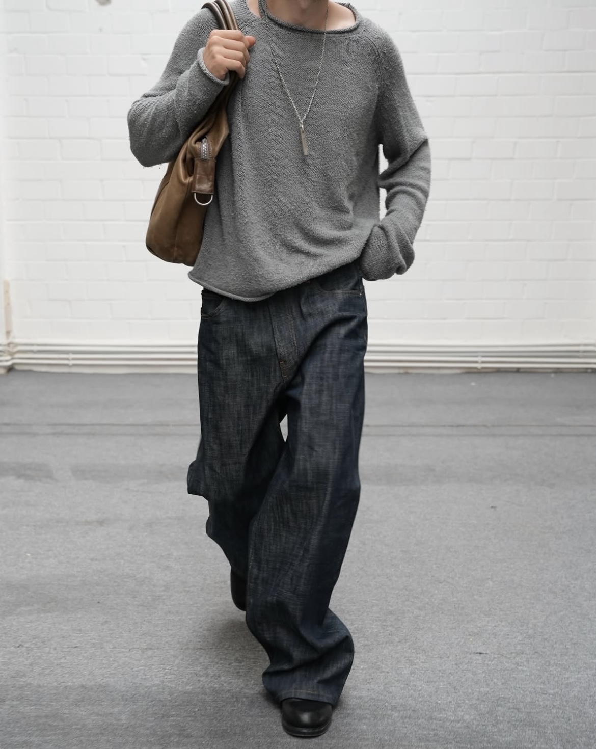American Retro Nofaith Japanese-Made Red-Edged Raw Denim Baggy Jeans with Button Placket