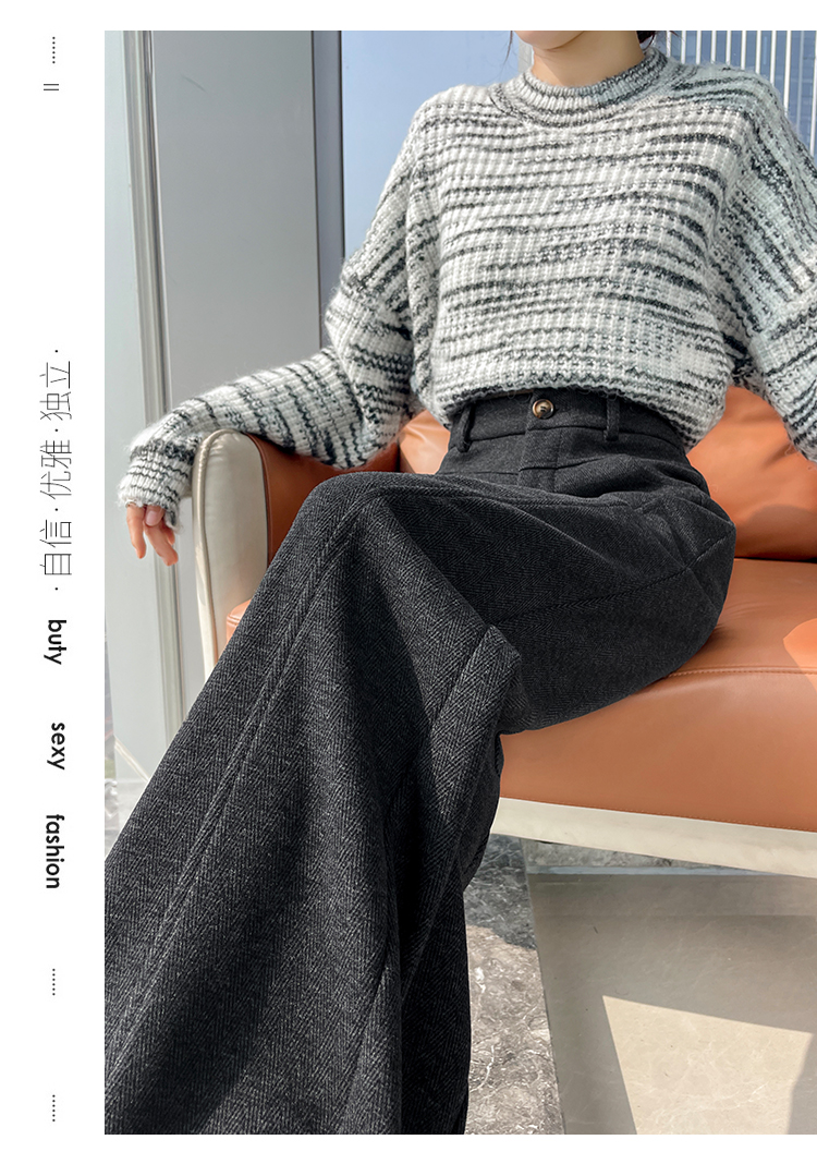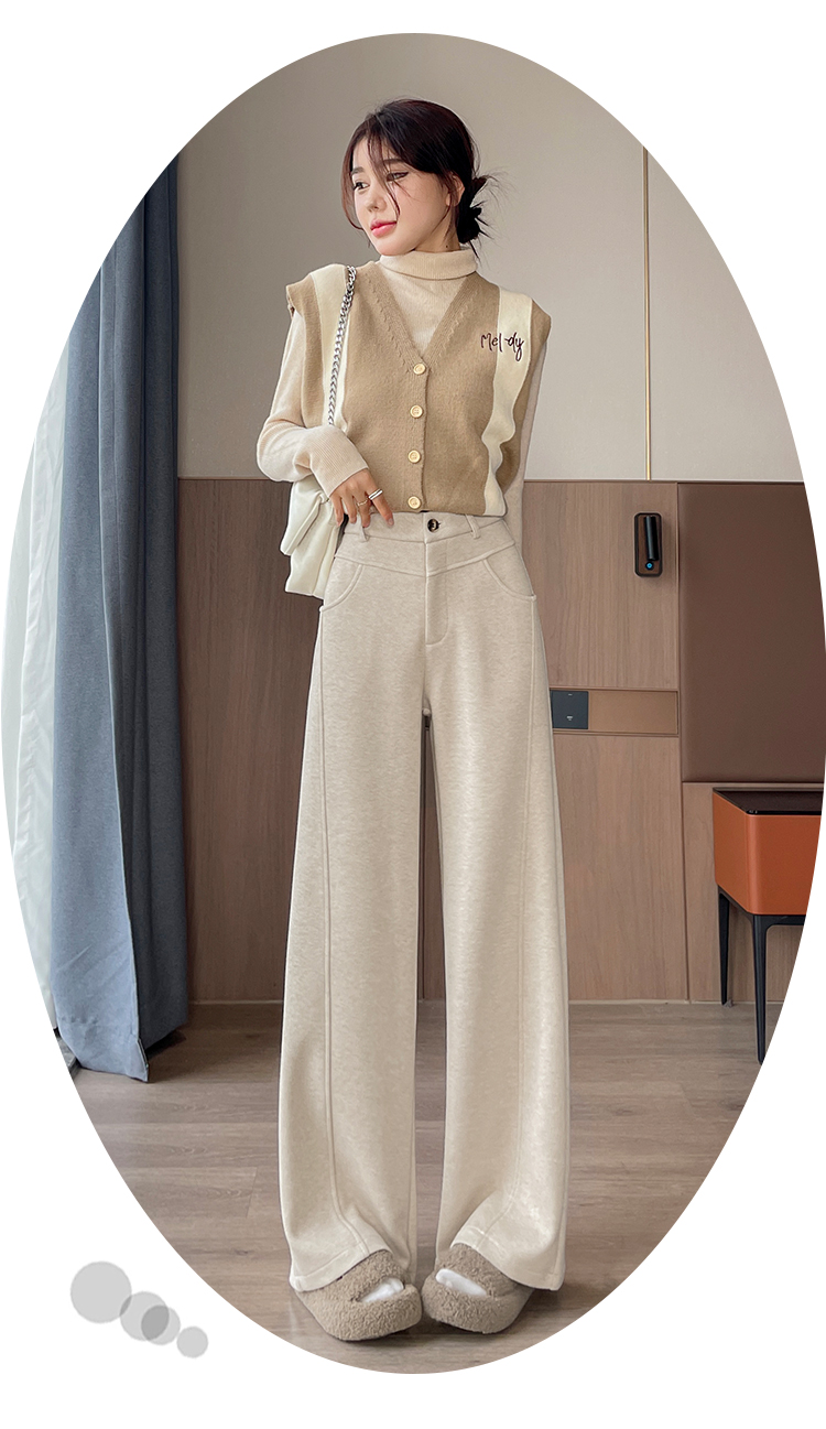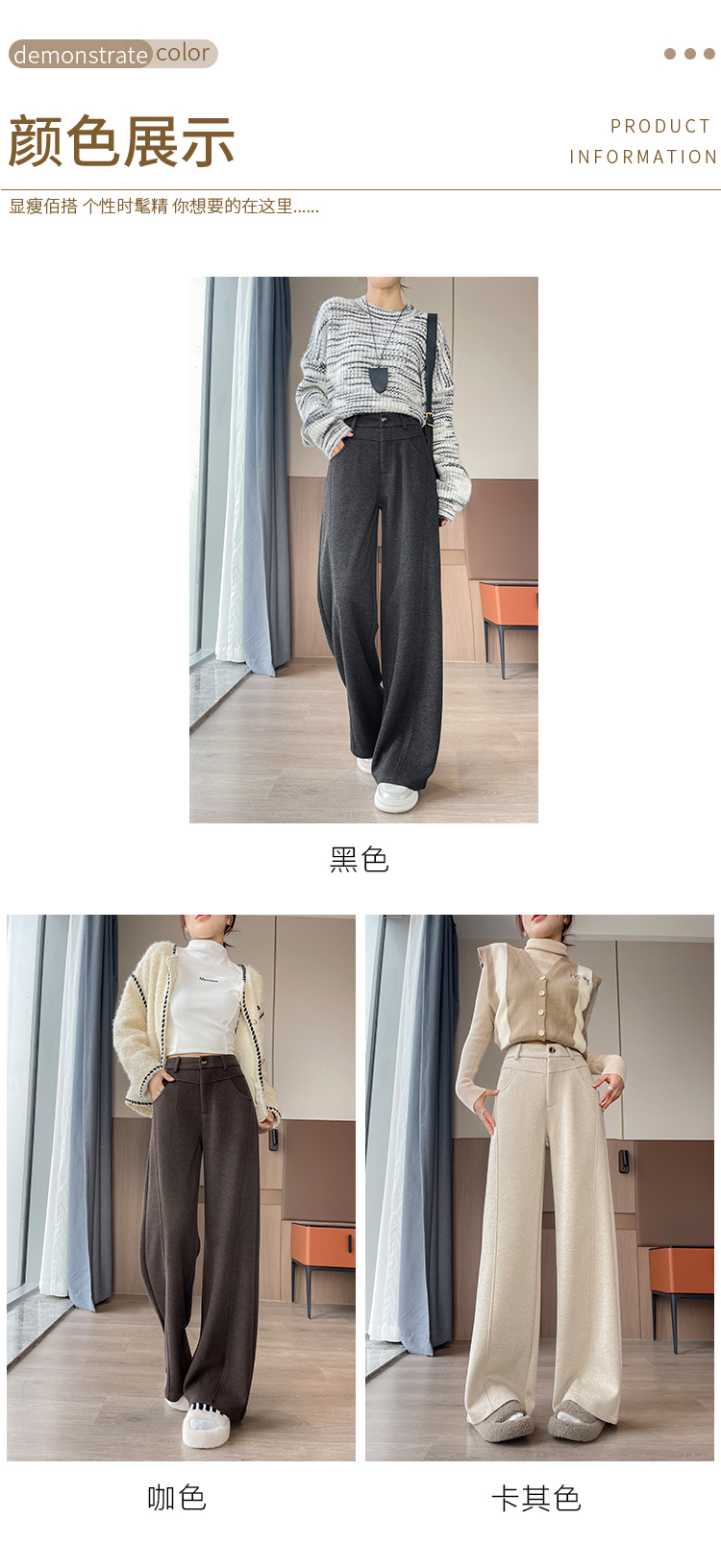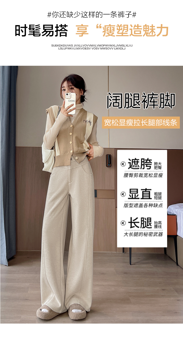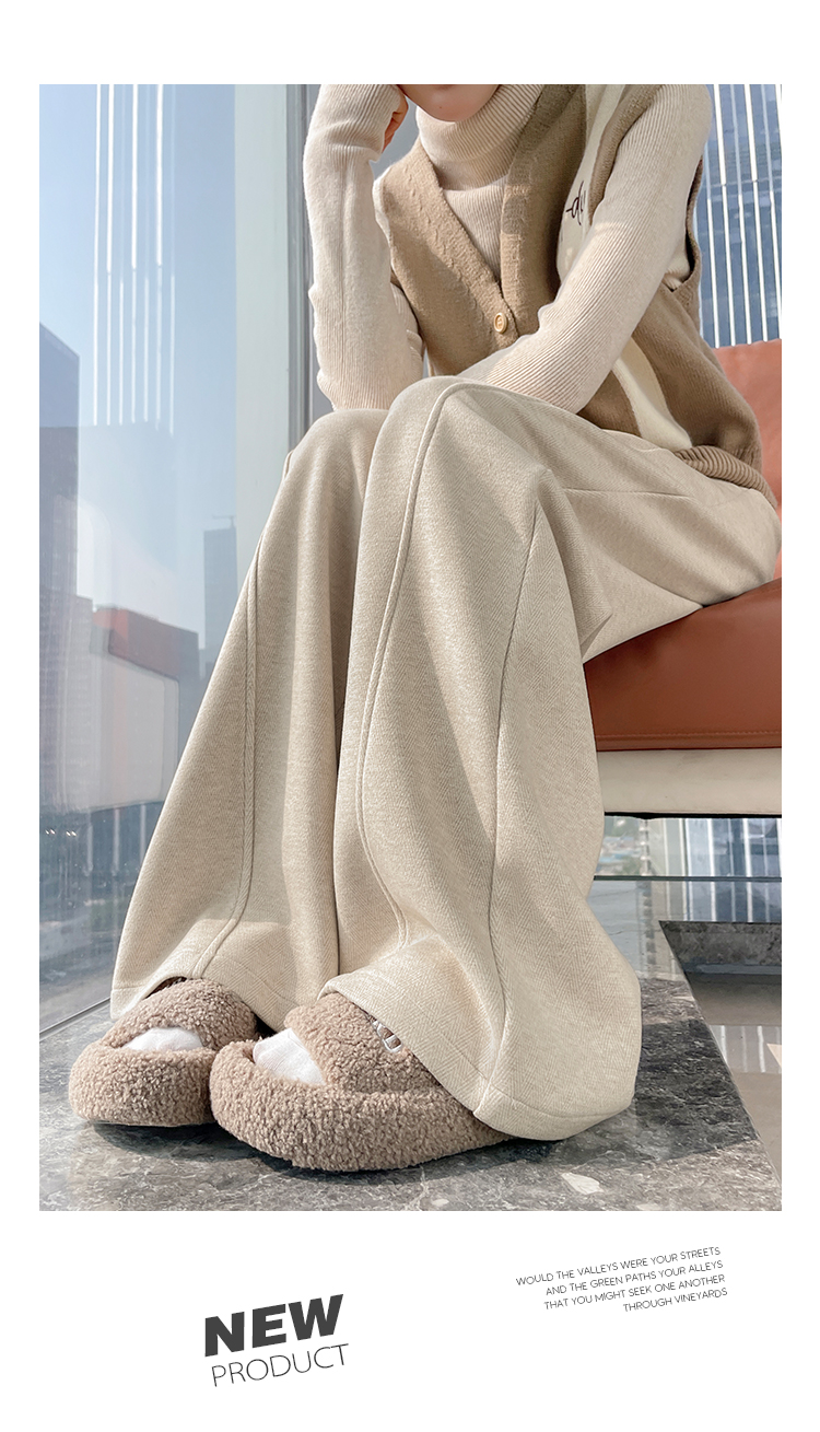 Tall Women's Extra-Long Apricot Cashmere Wool Suit Pants for Autumn and Winter, Fleece-Lined, High-Waisted, Slimming, Drapey, Extended Wide-Leg Pants