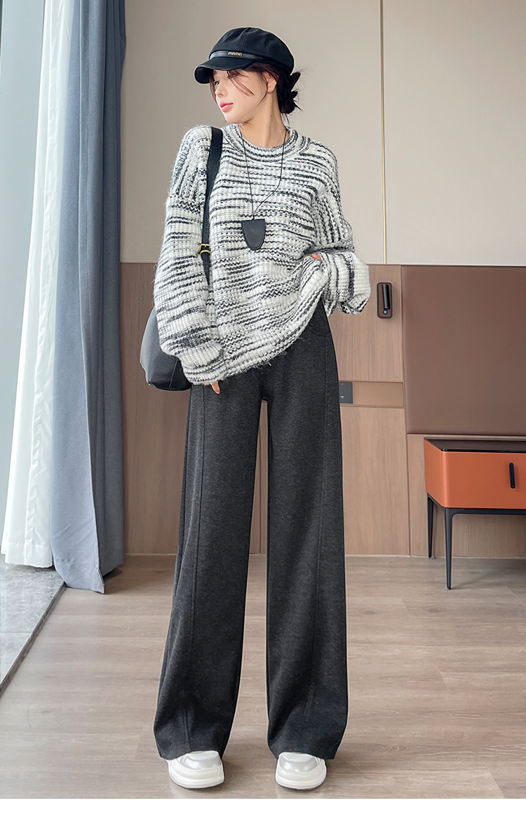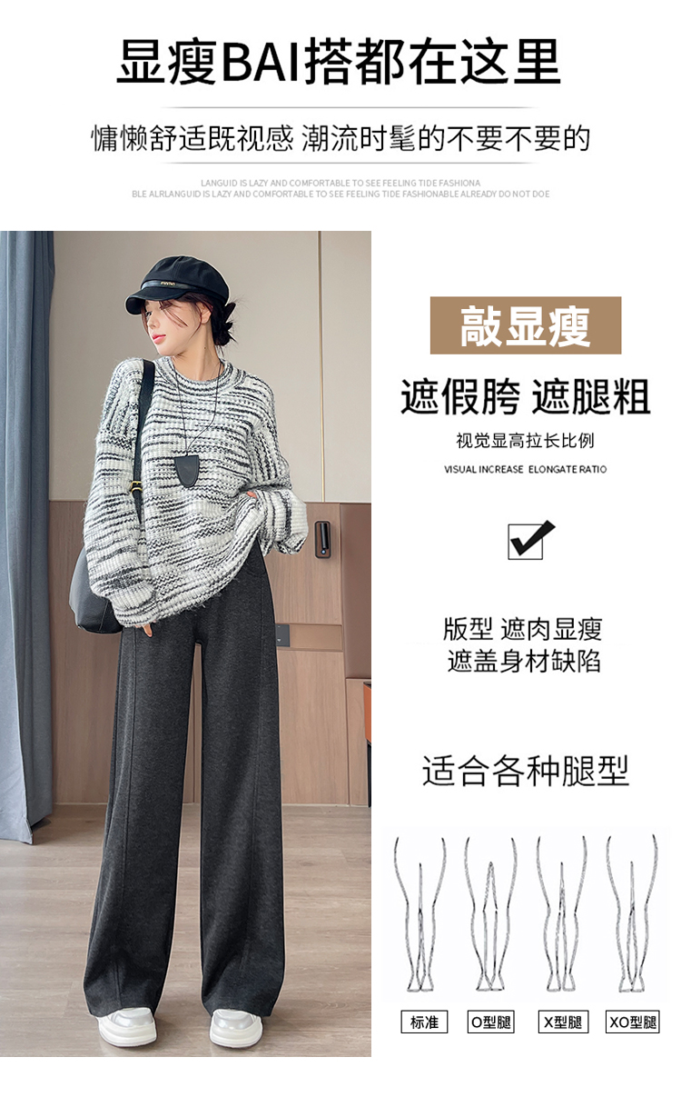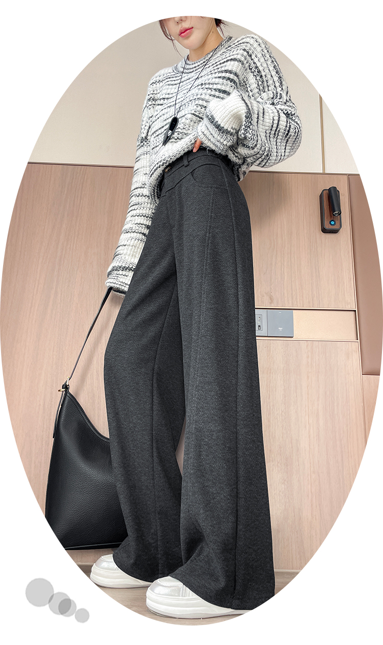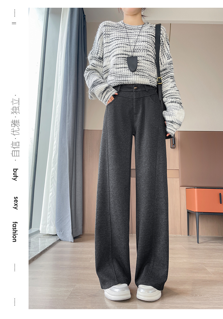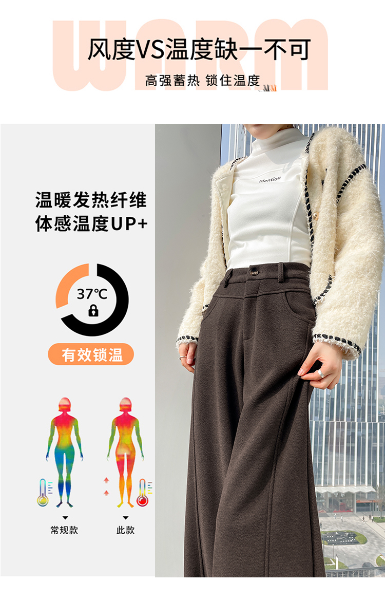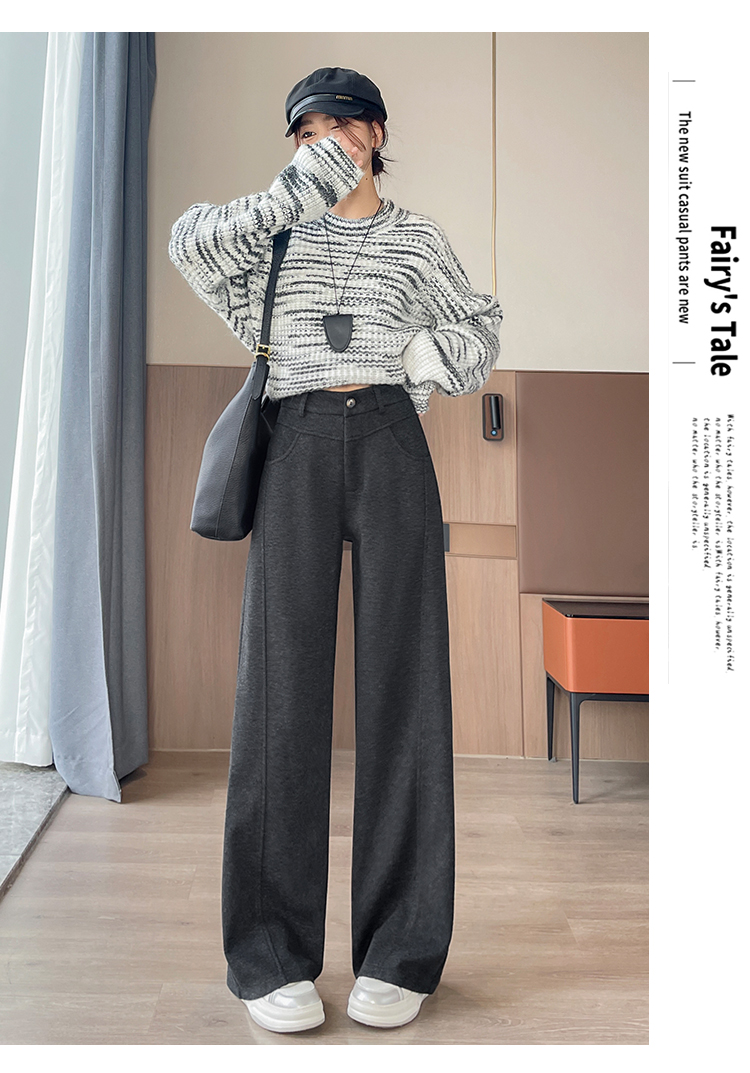 Tall Women's Extra-Long Apricot Cashmere Wool Suit Pants for Autumn and Winter, Fleece-Lined, High-Waisted, Slimming, Drapey, Extended Wide-Leg Pants