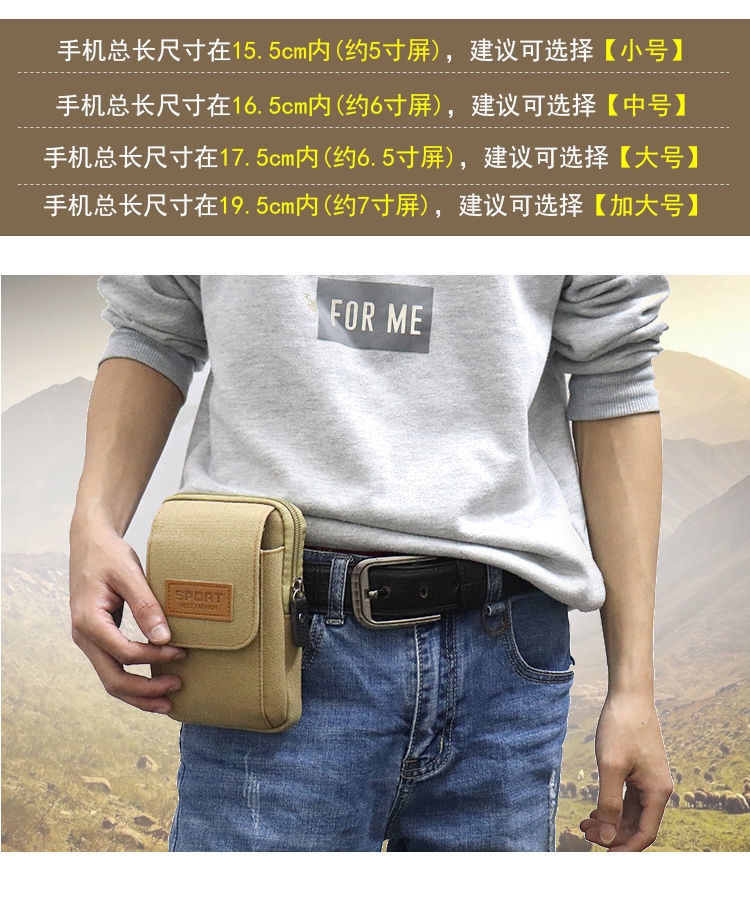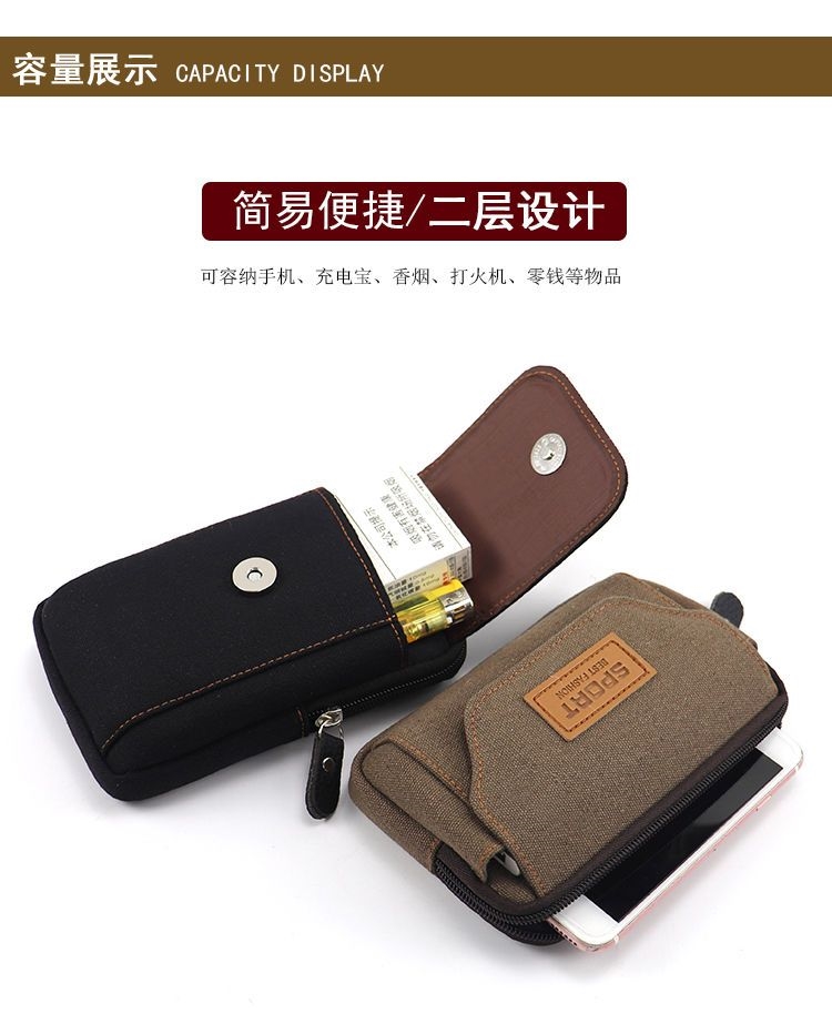 Canvas Mobile Phone Waist Bag for Men, Belt Phone Pouch, Multifunctional Phone Case, Belt Waist Bag, Men's Coin Purse
