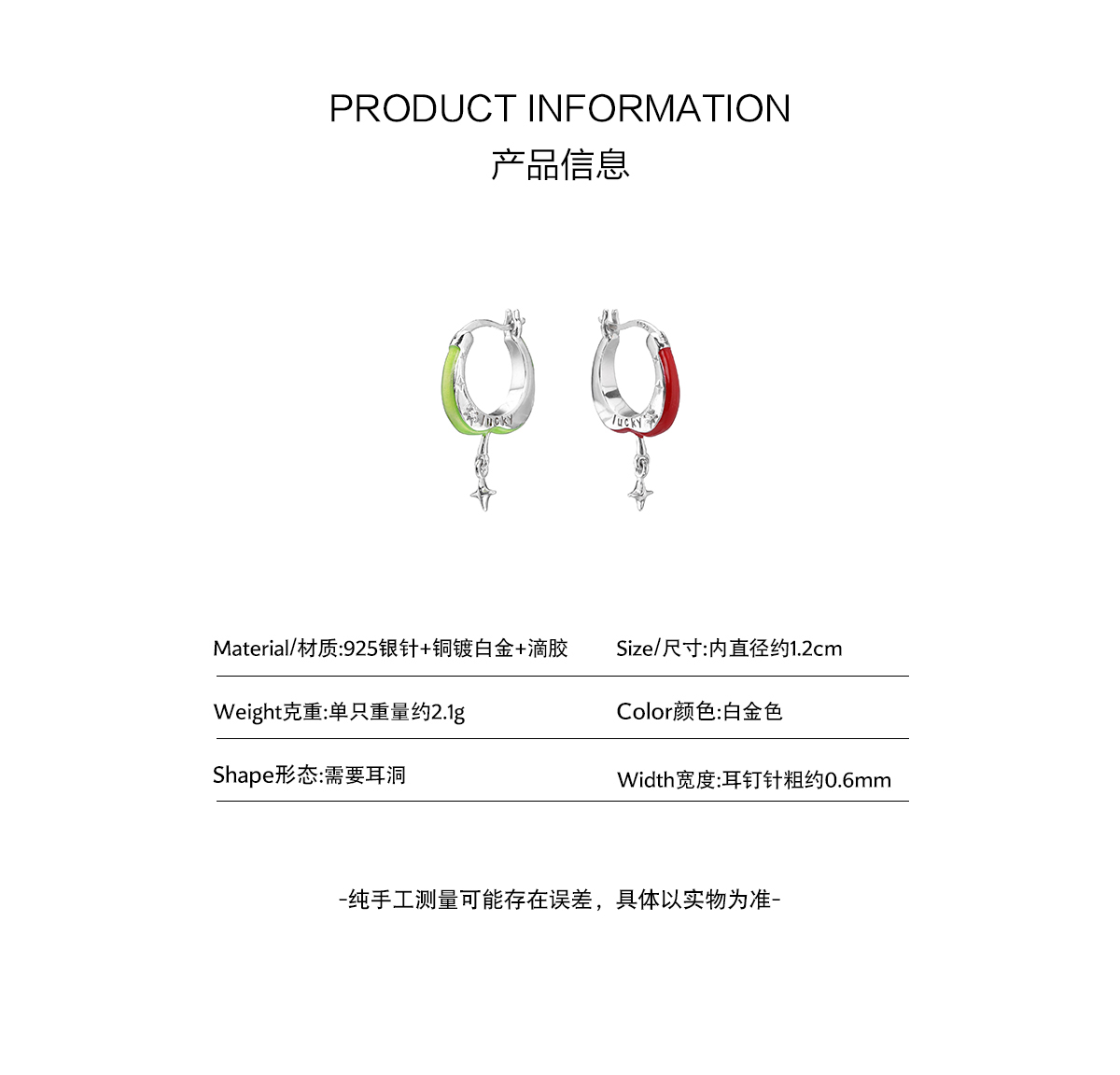 Original Lucky Apple Slice Earrings 925 Silver Needle Hoop Earrings Niche Green Apple High-End Sweet Cool New Style Ear Clips