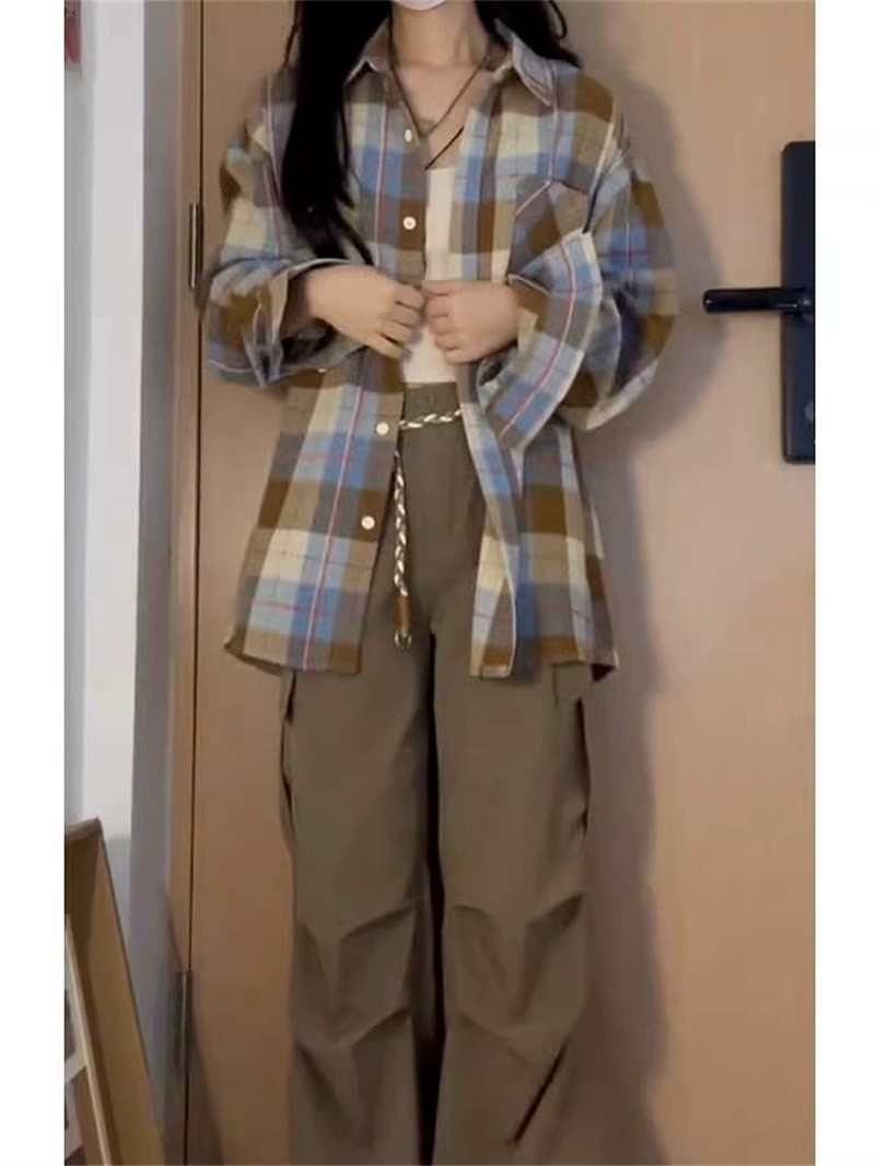 La Chapelle Hong Kong Style Retro Plaid Long-Sleeved Shirt for Women, Autumn and Winter 2025 New Style, Lazy Style, Loose and Slimming Top
