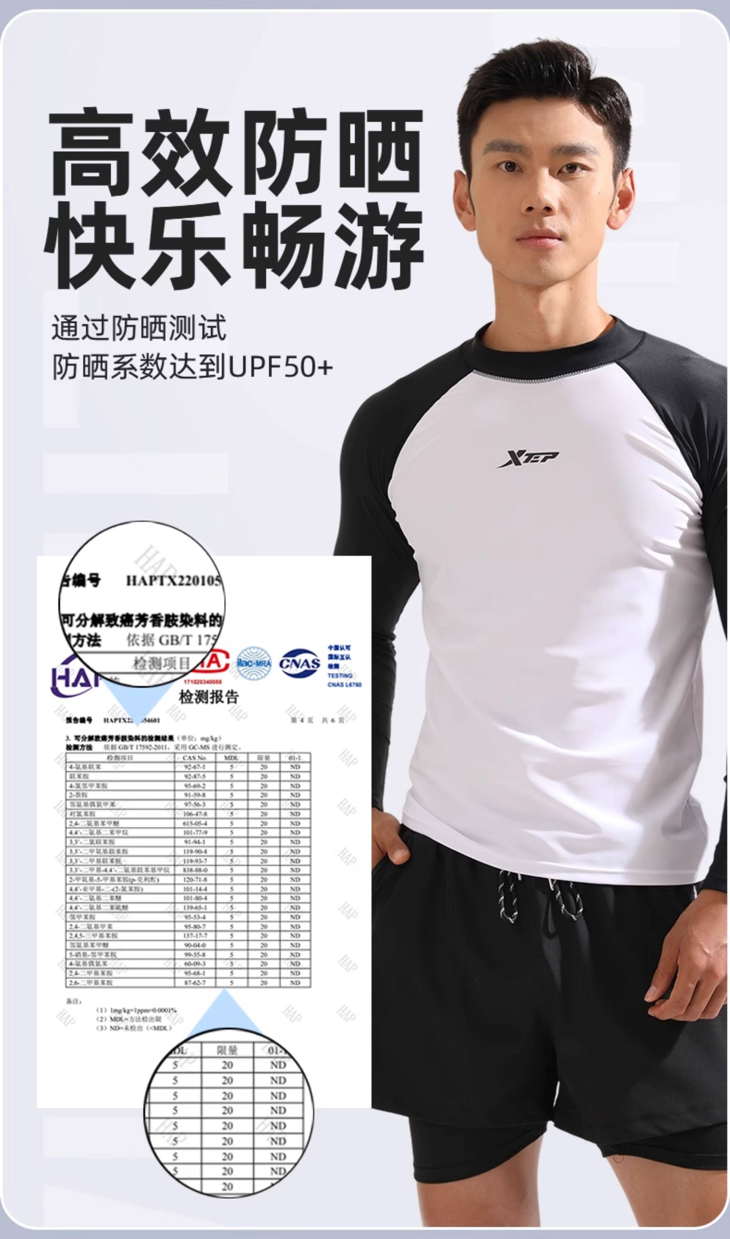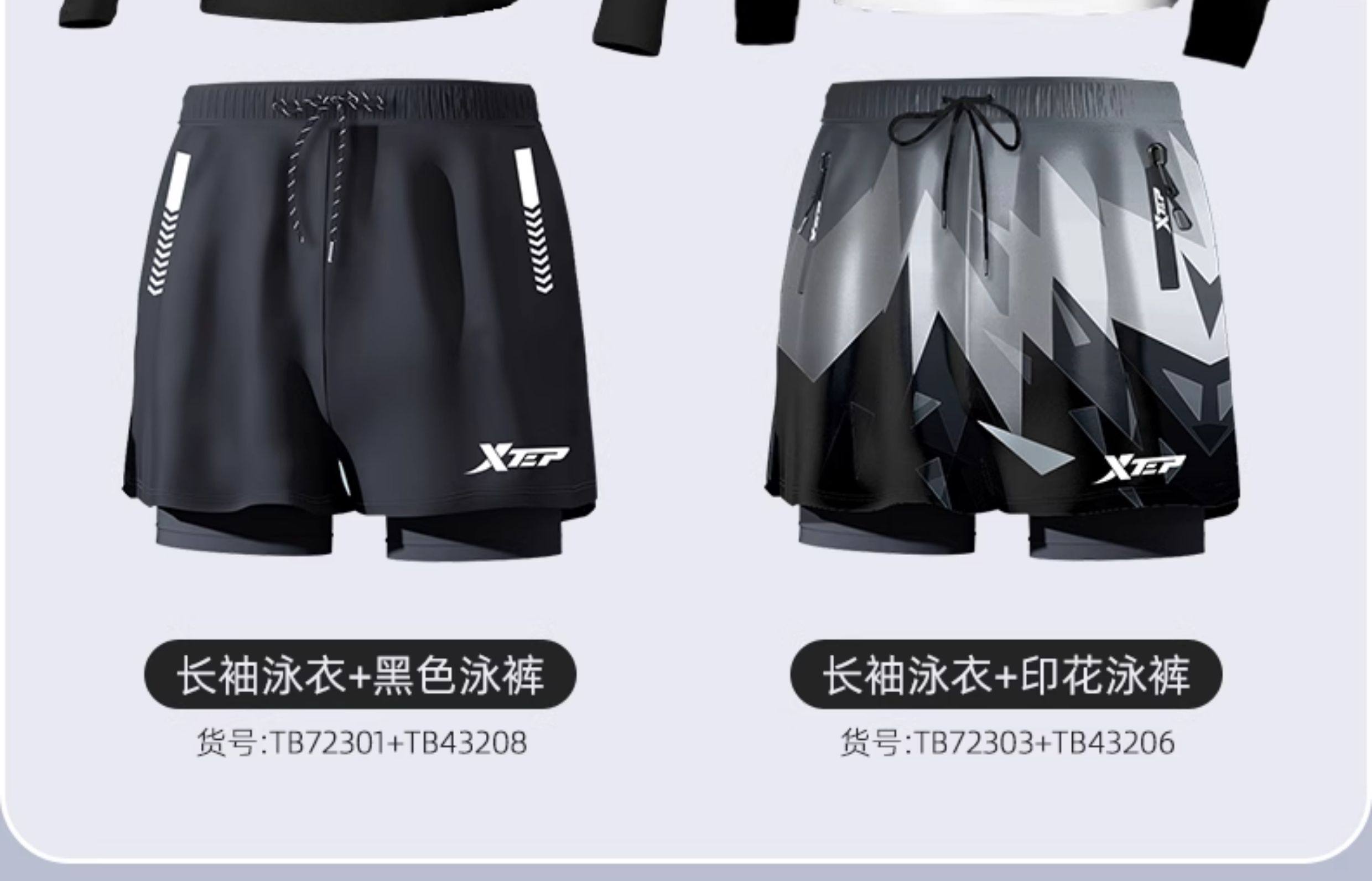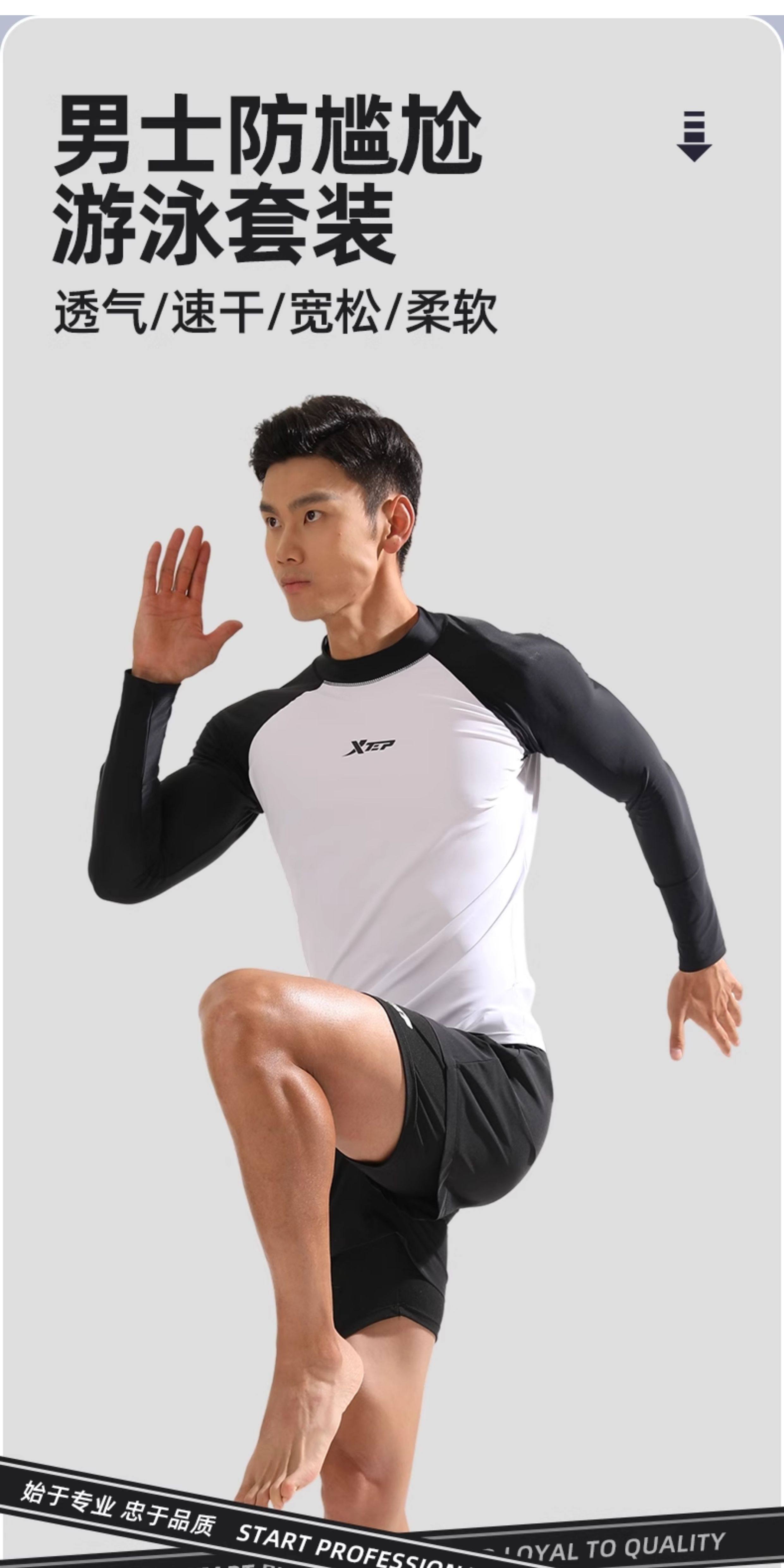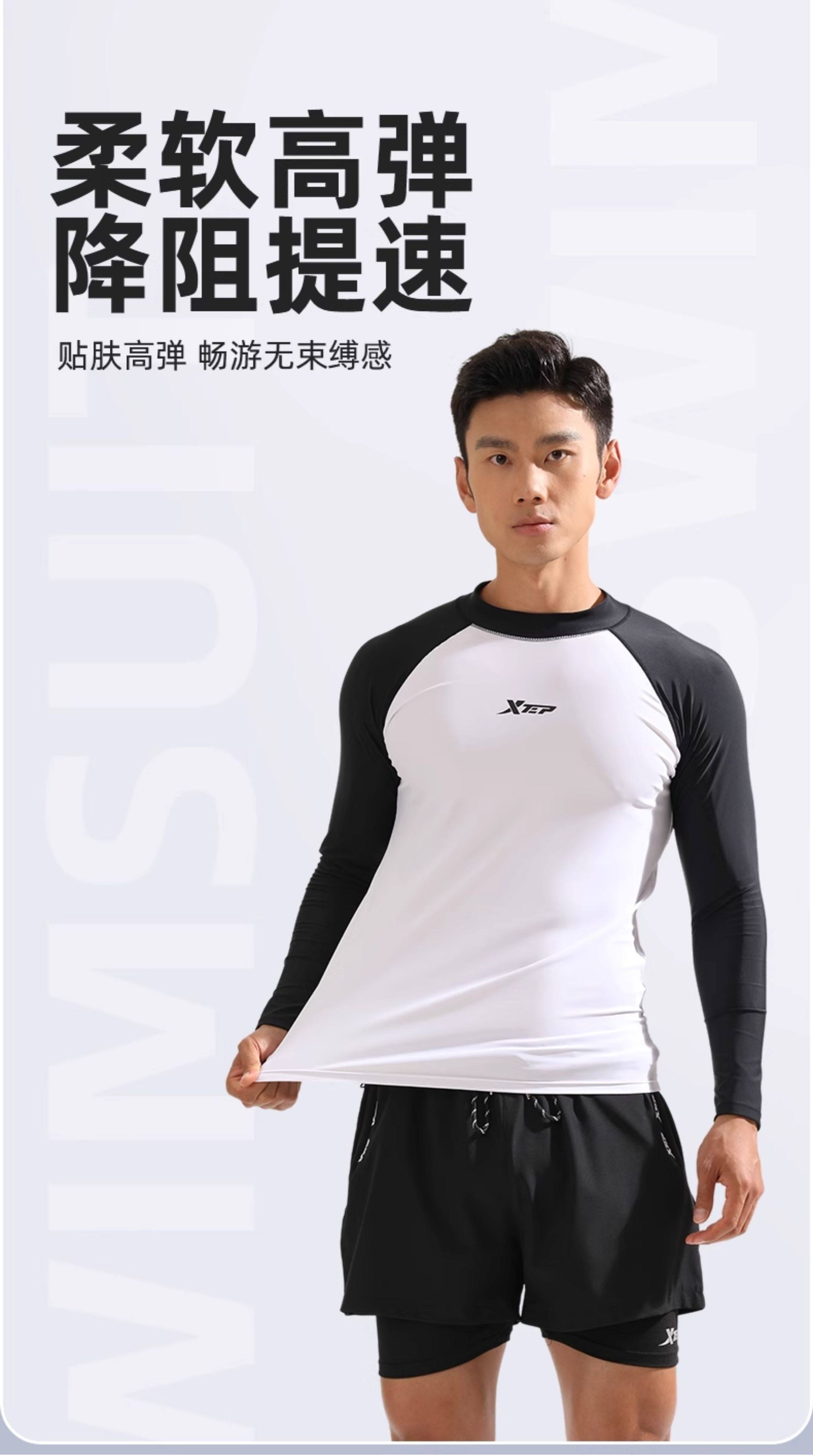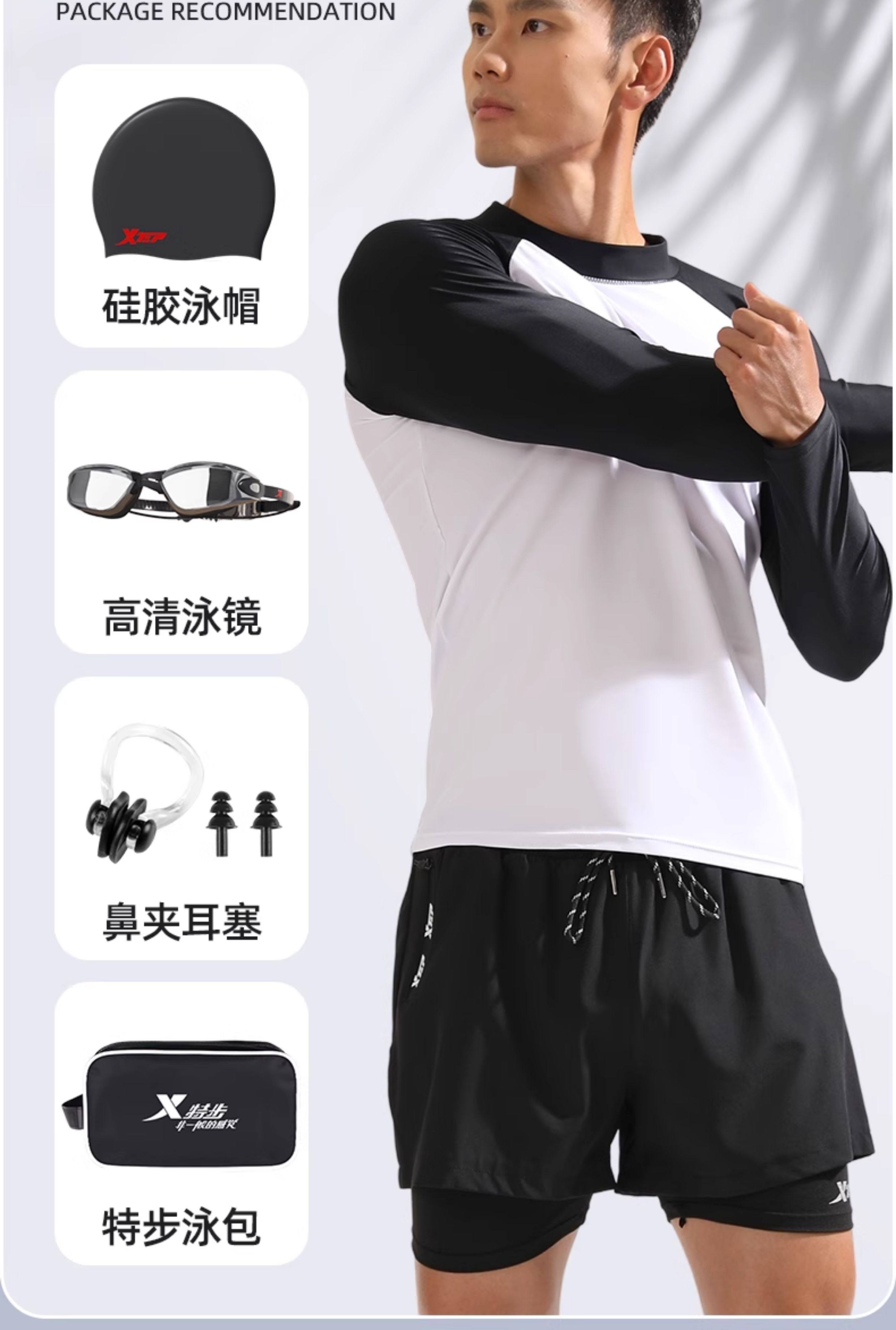 Xtep Men's Swimwear Sun Protection Long-Sleeve Top and Long Pants Swimming Trunks Adult Hot Spring Equipment Men's Swimwear Set