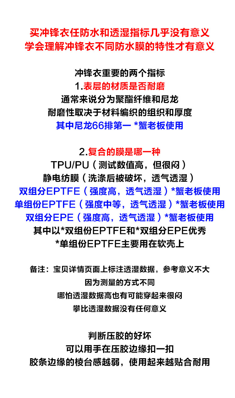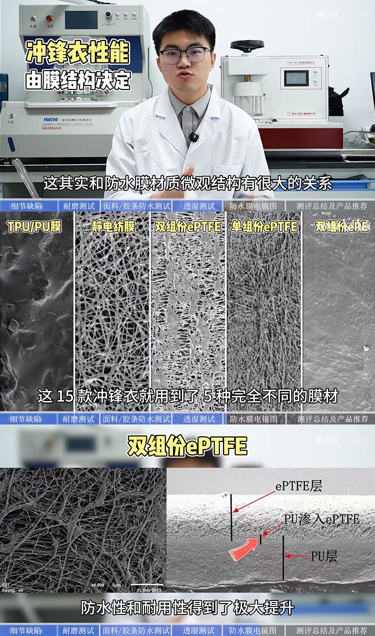 中间具有eptfe防水透气膜可以持久防止雨水进入
