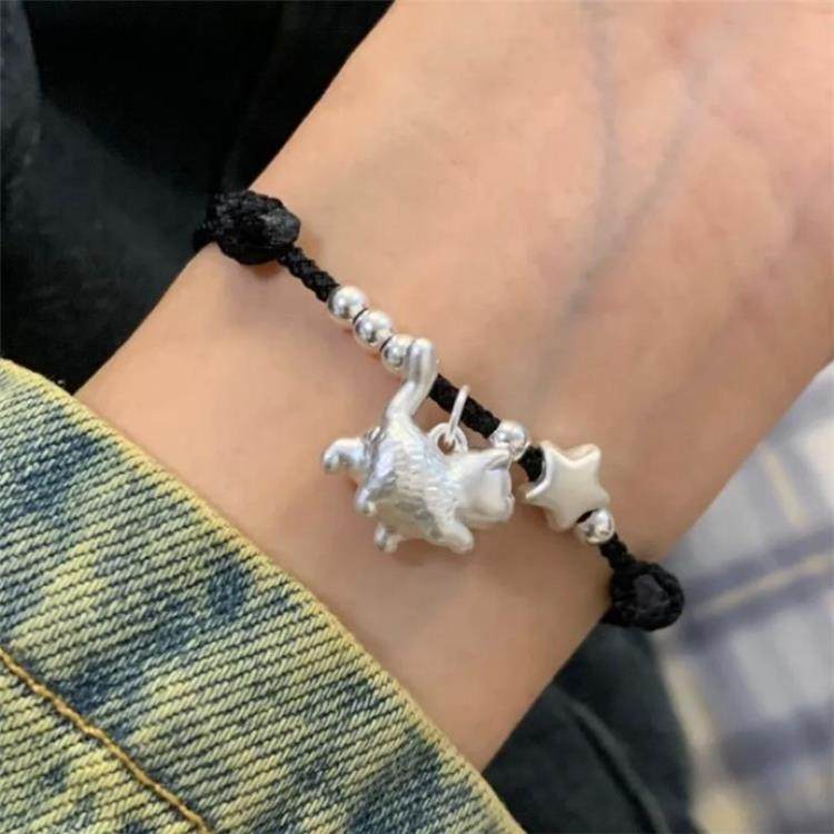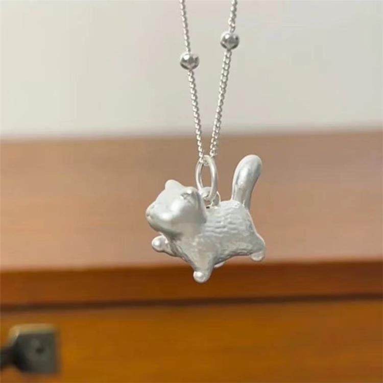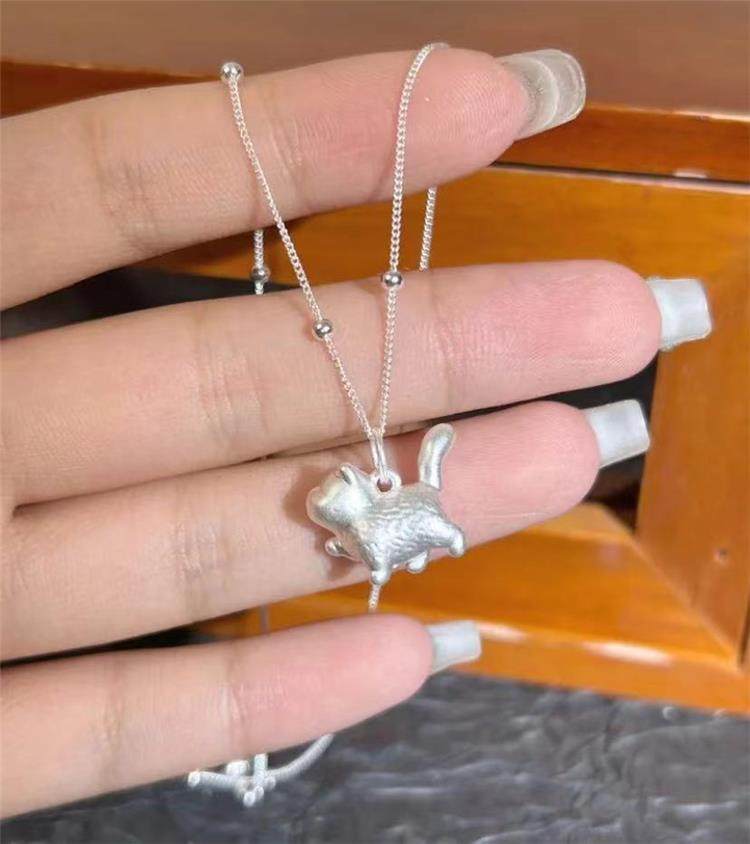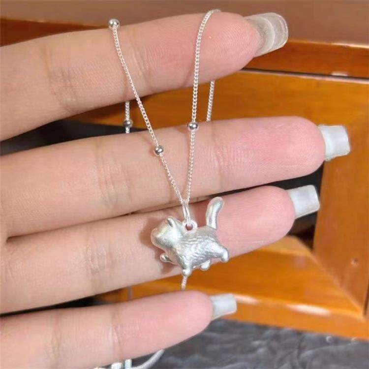 999 Pure Silver Tsundere Cat Pendant Necklace, Cute Cartoon Sterling Silver Kitten Clavicle Chain, Gift for Girlfriend's Birthday