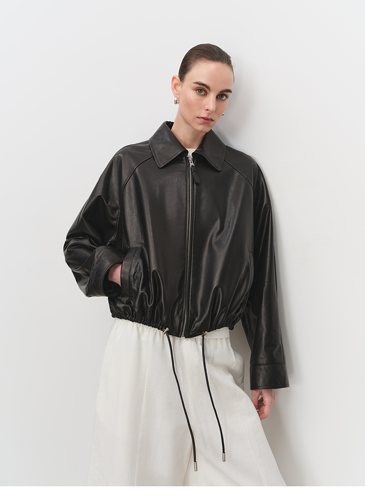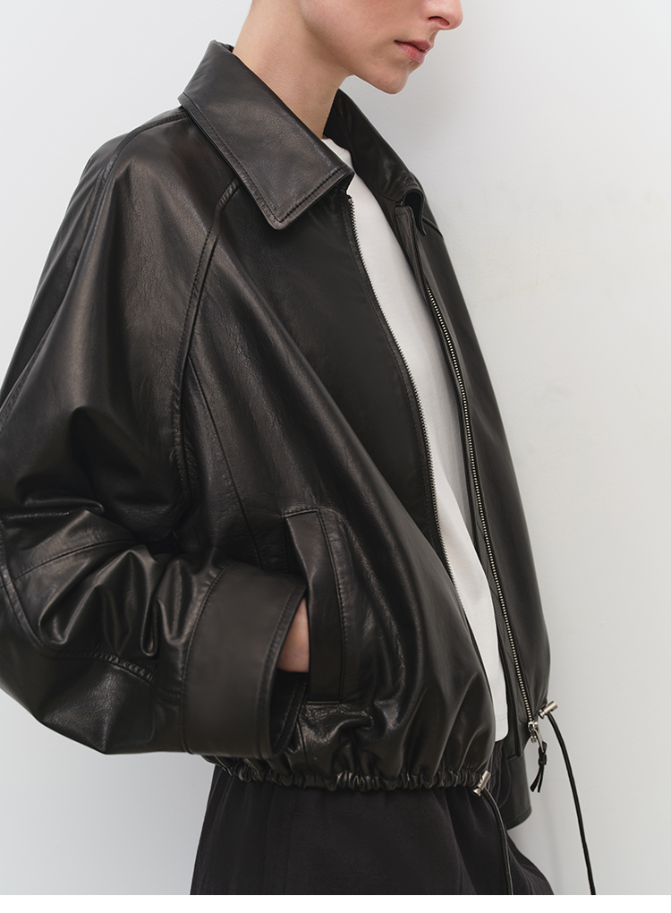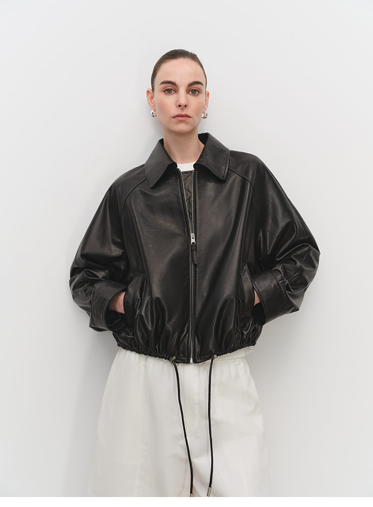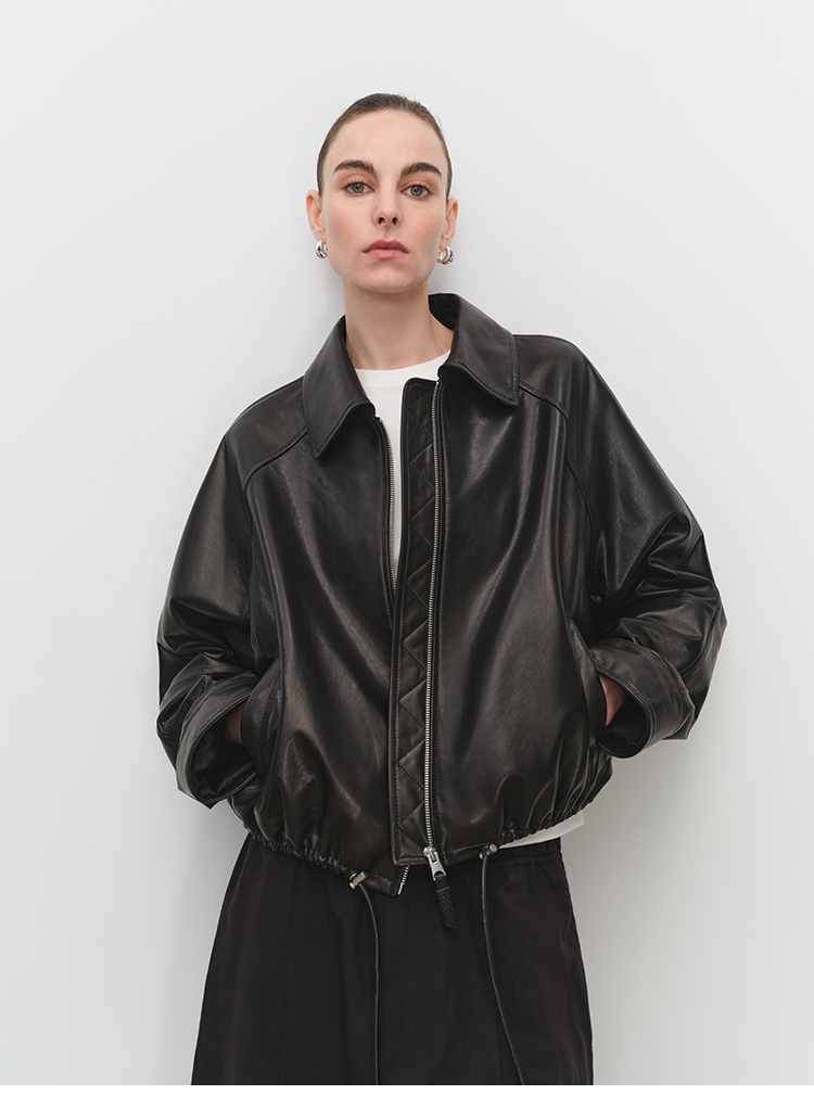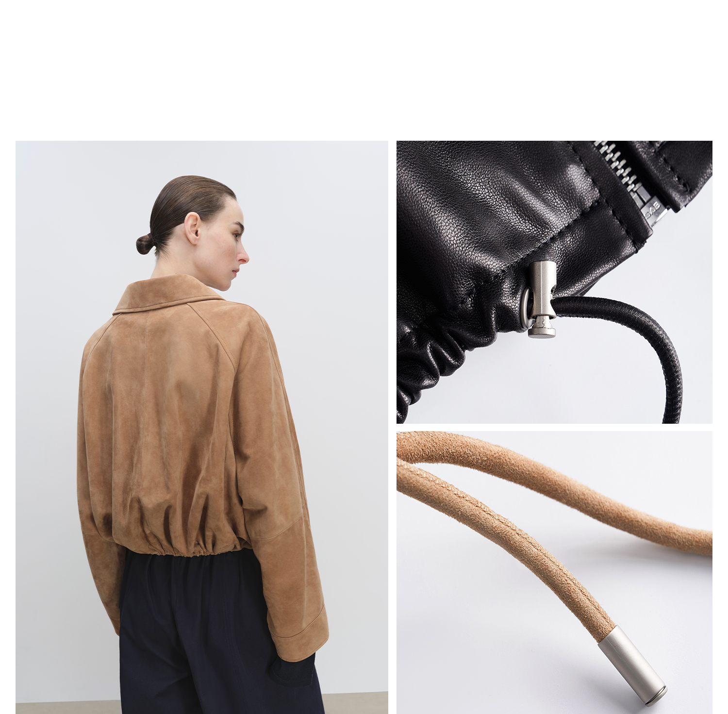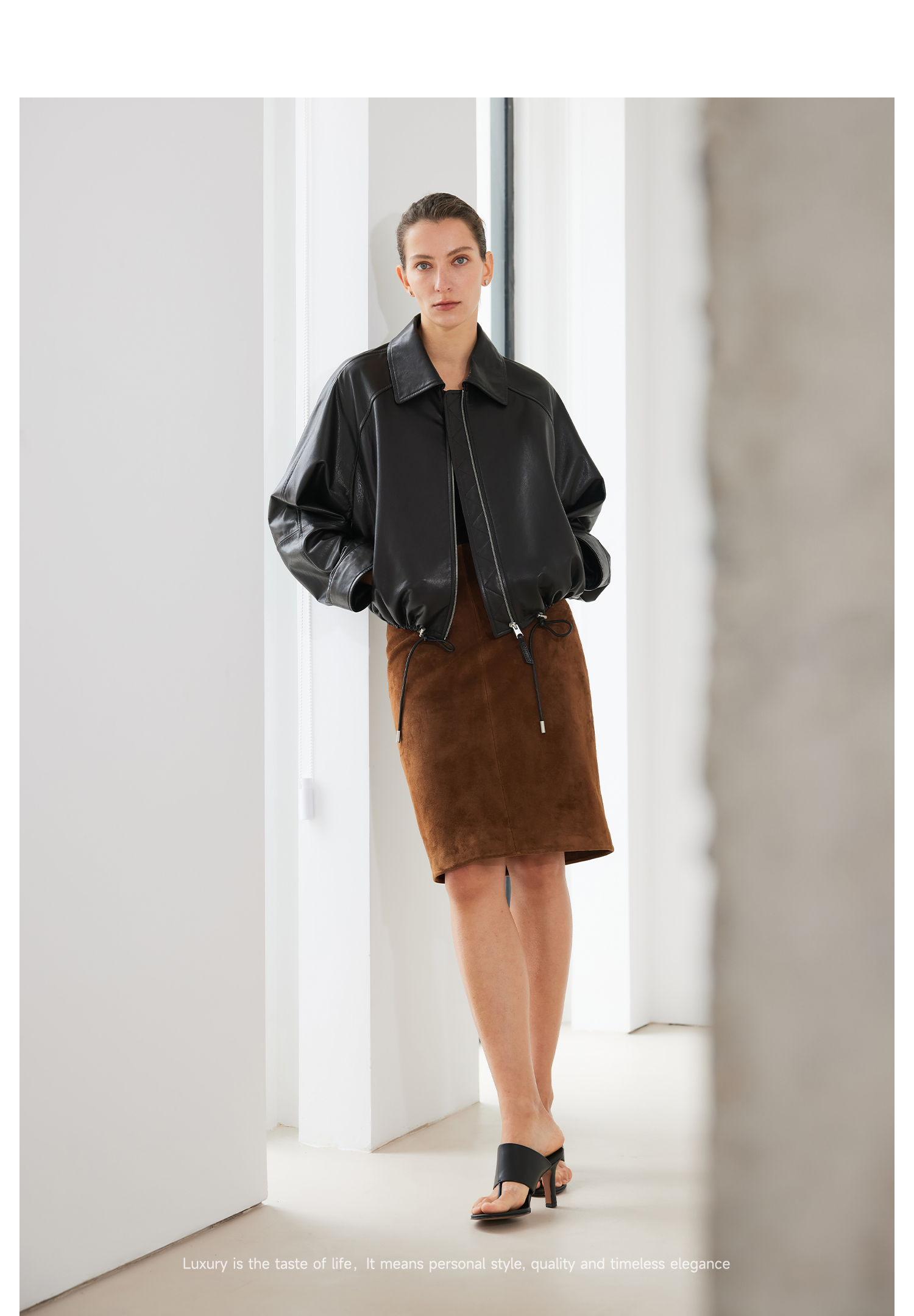 Msbeast Imported Dual-Version Sheepskin Lo*We Style Lapel Drawstring Silhouette Short Jacket Leather Jacket | Balloon Jacket
