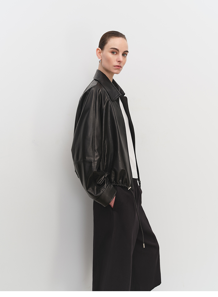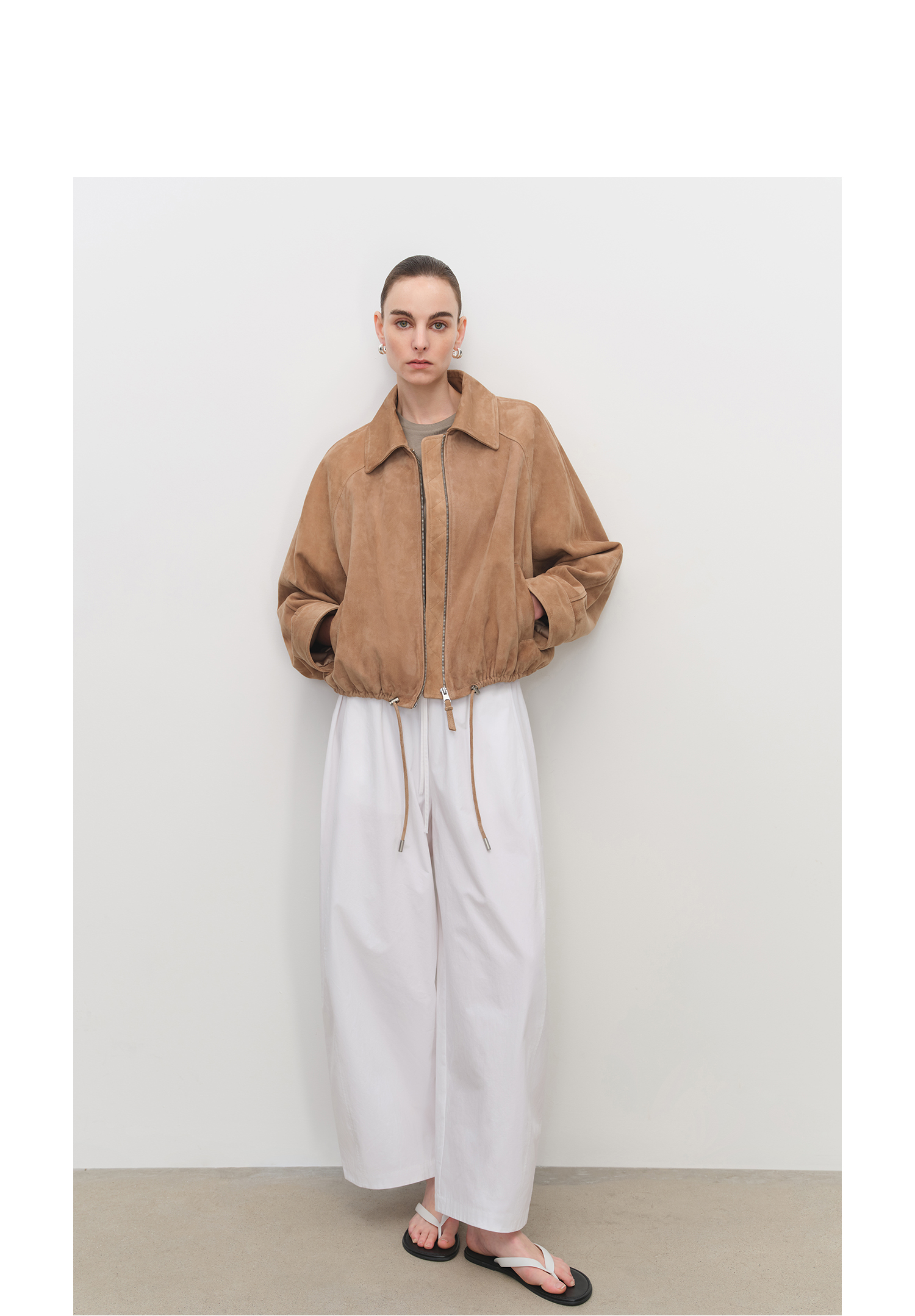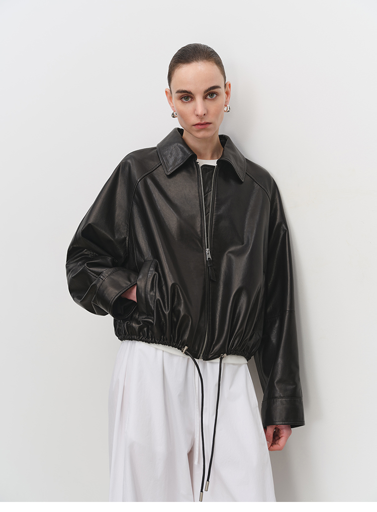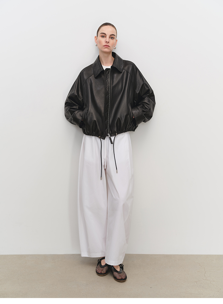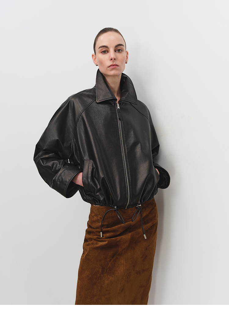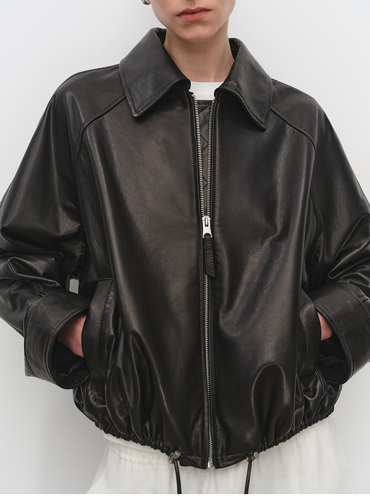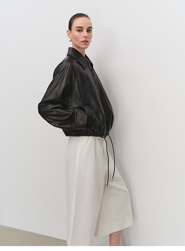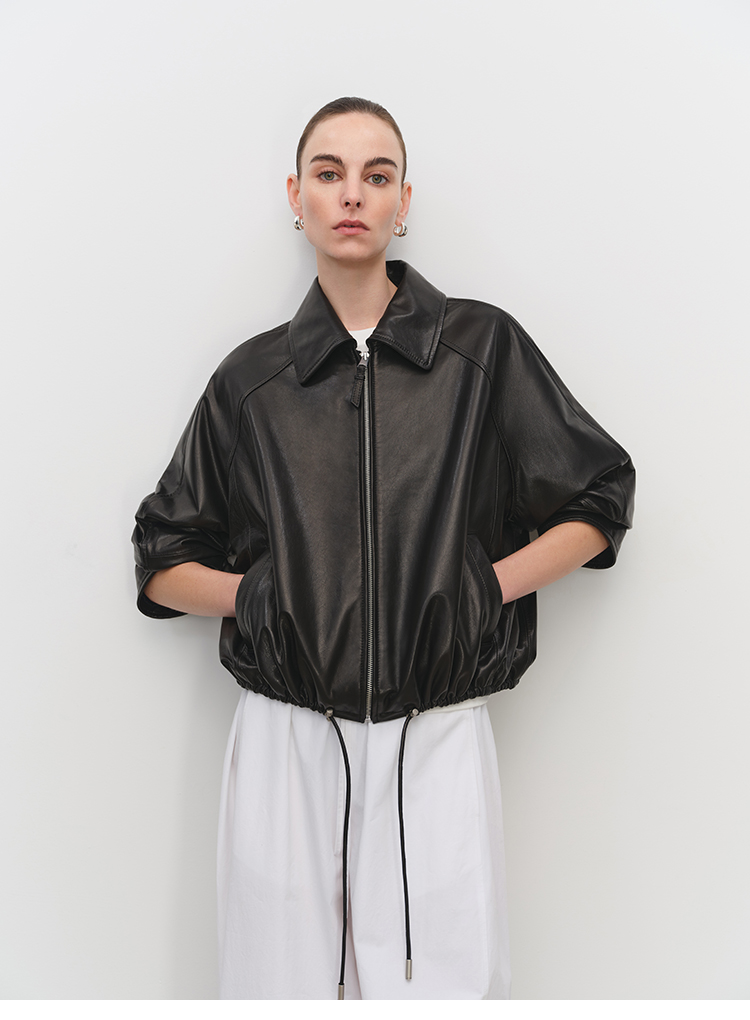 Msbeast Imported Dual-Version Sheepskin Lo*We Style Lapel Drawstring Silhouette Short Jacket Leather Jacket | Balloon Jacket